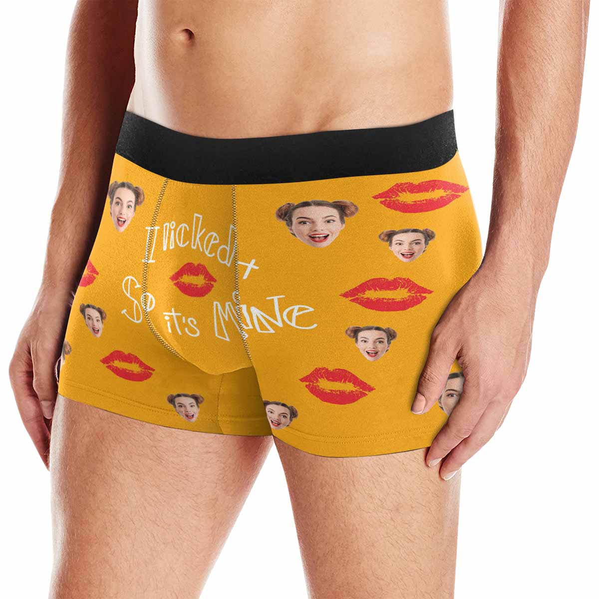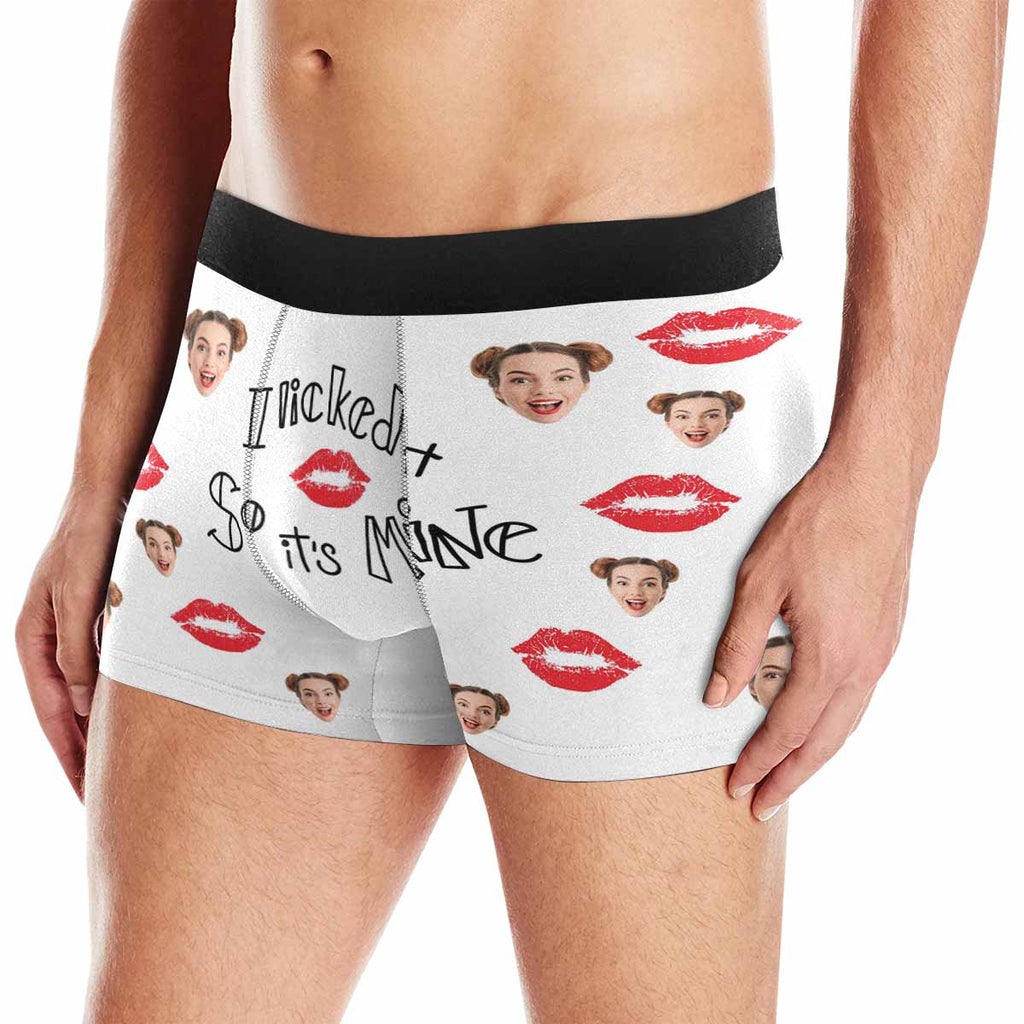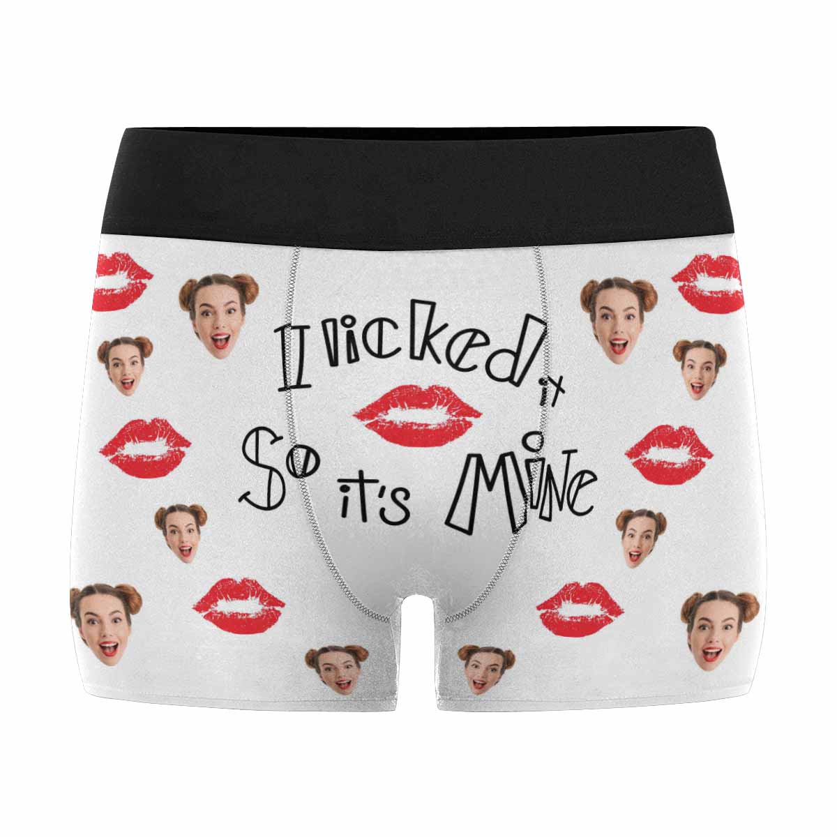 Personalized Mens Boxer Briefs with Funny GF Face Custom Novelty Underwear Lip I Licked It Gifts for Valentine for BF