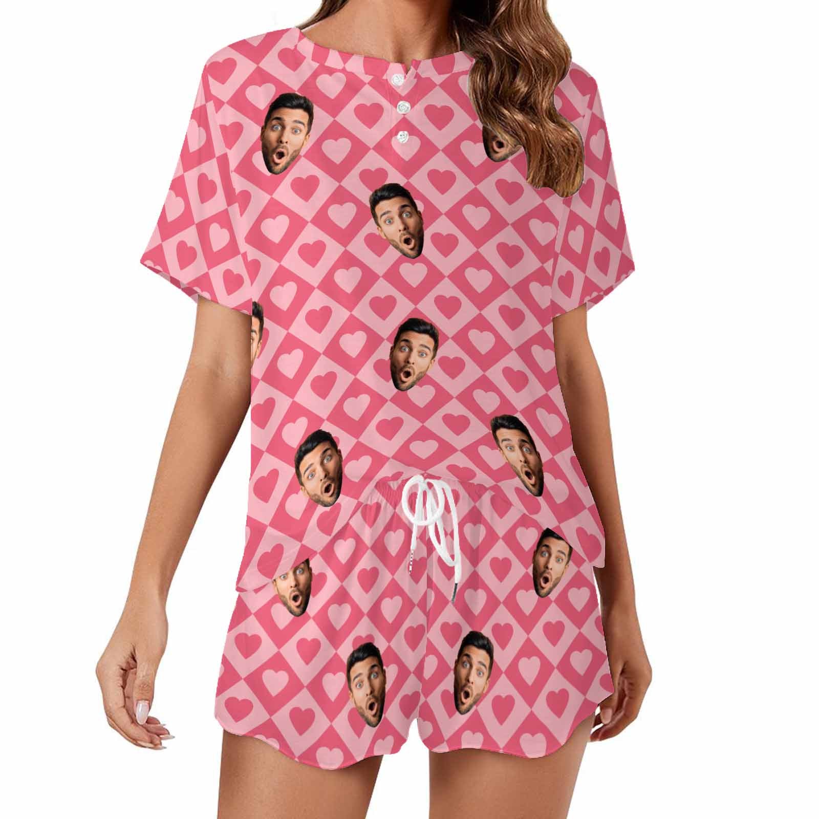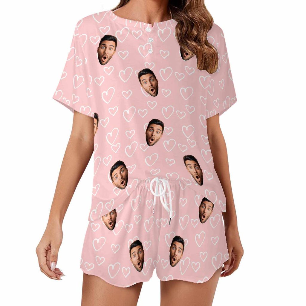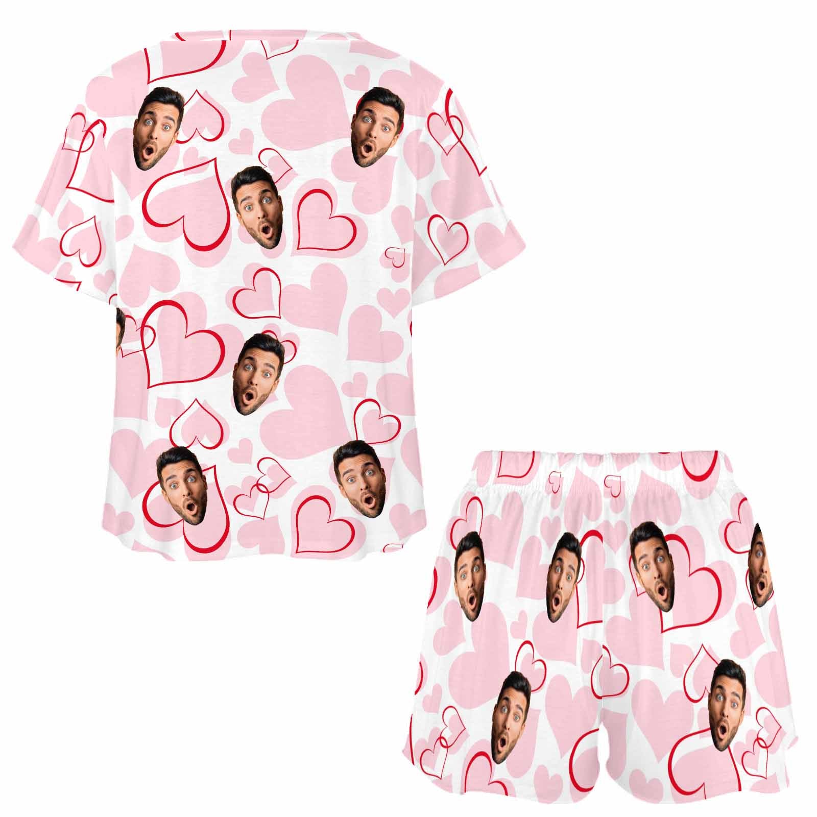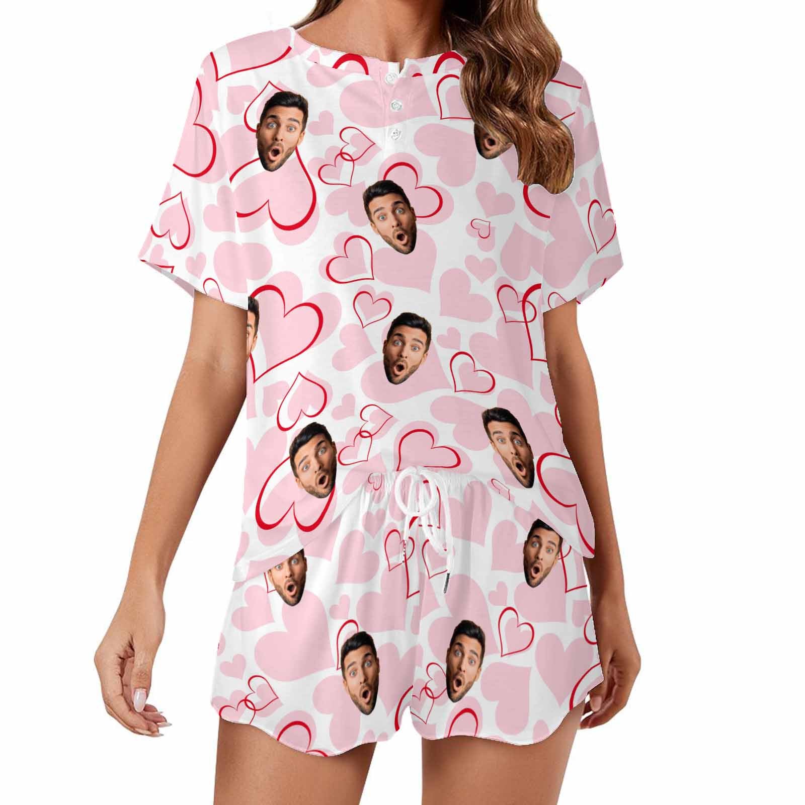 Custom Faces Women Short Pajama Set Personalized Photo Nightwear for GF Wife Valentine Gift for Her