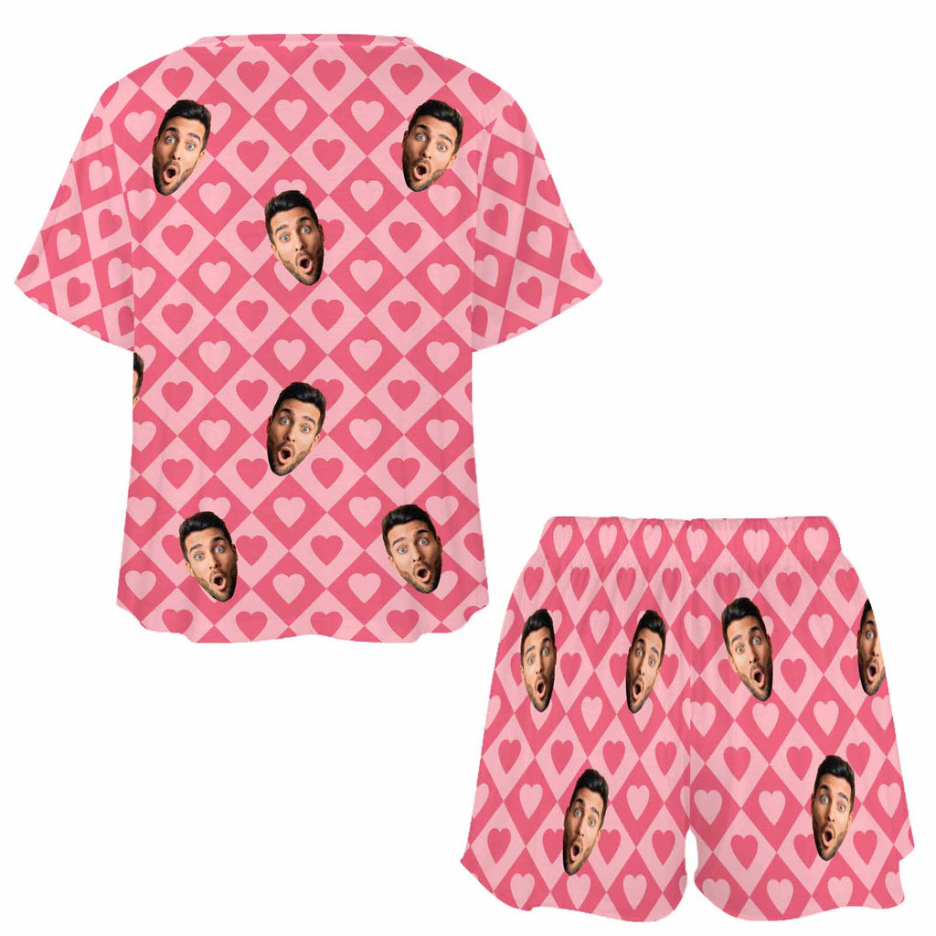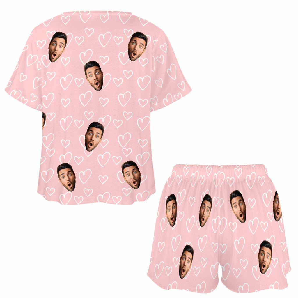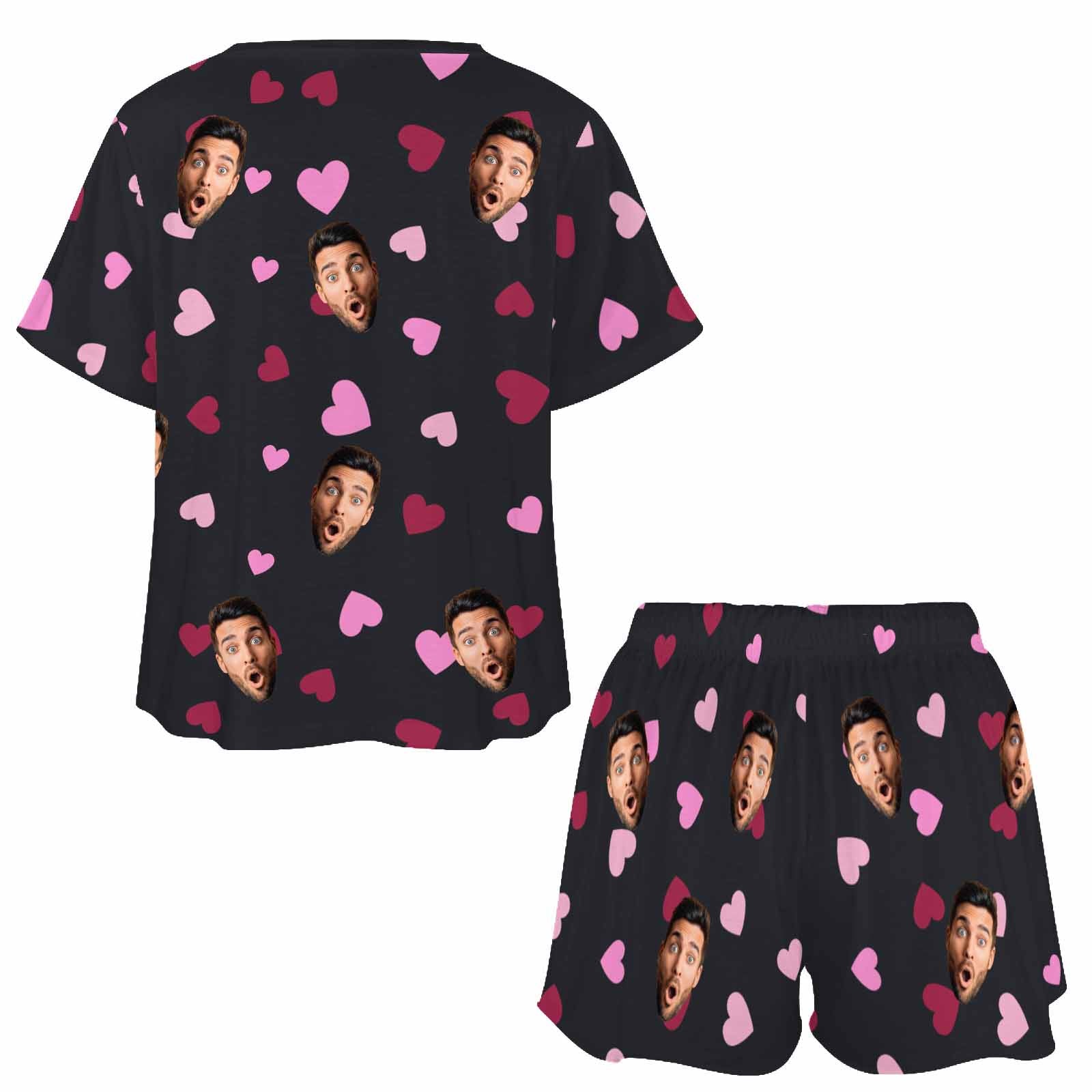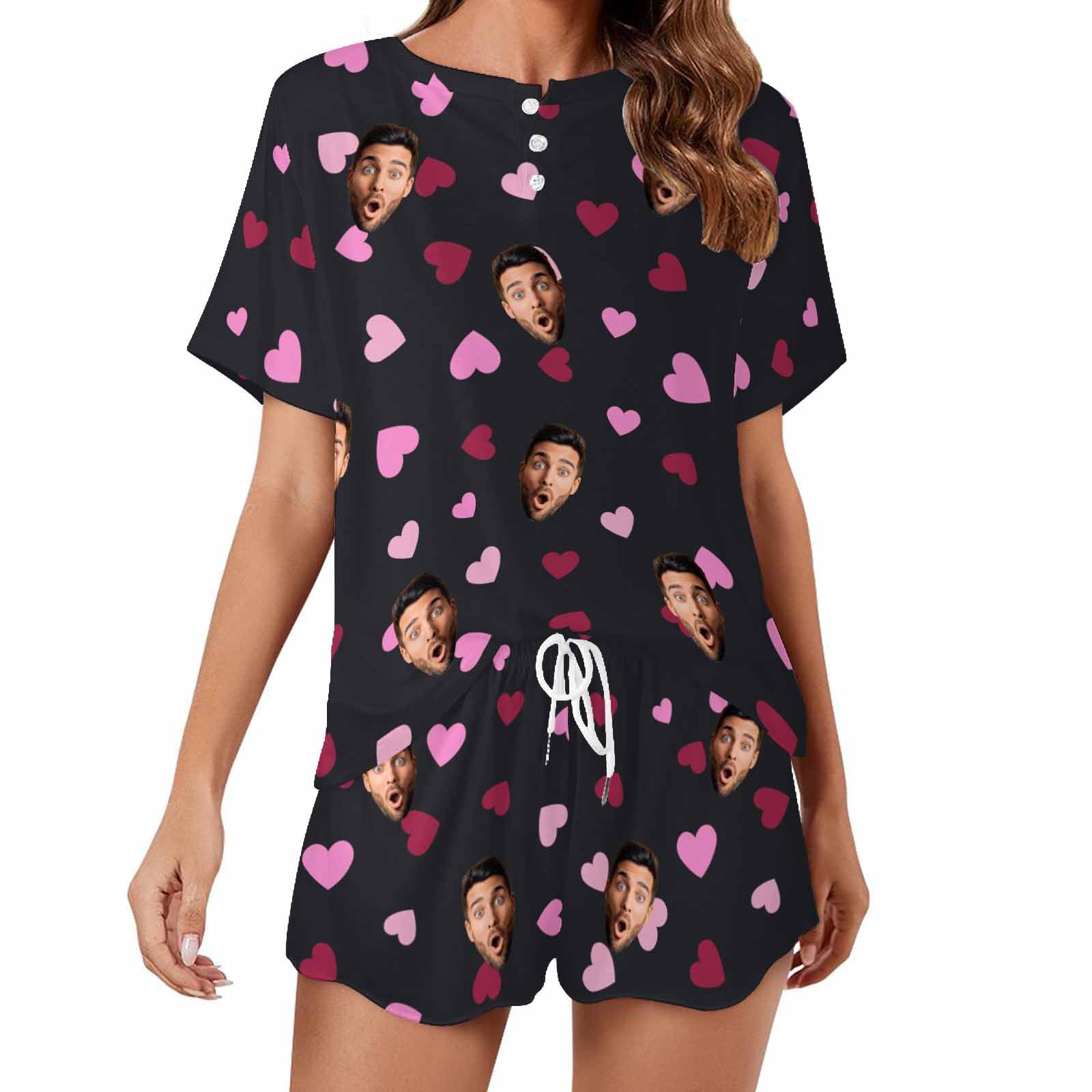 Custom Faces Women Short Pajama Set Personalized Photo Nightwear for GF Wife Valentine Gift for Her