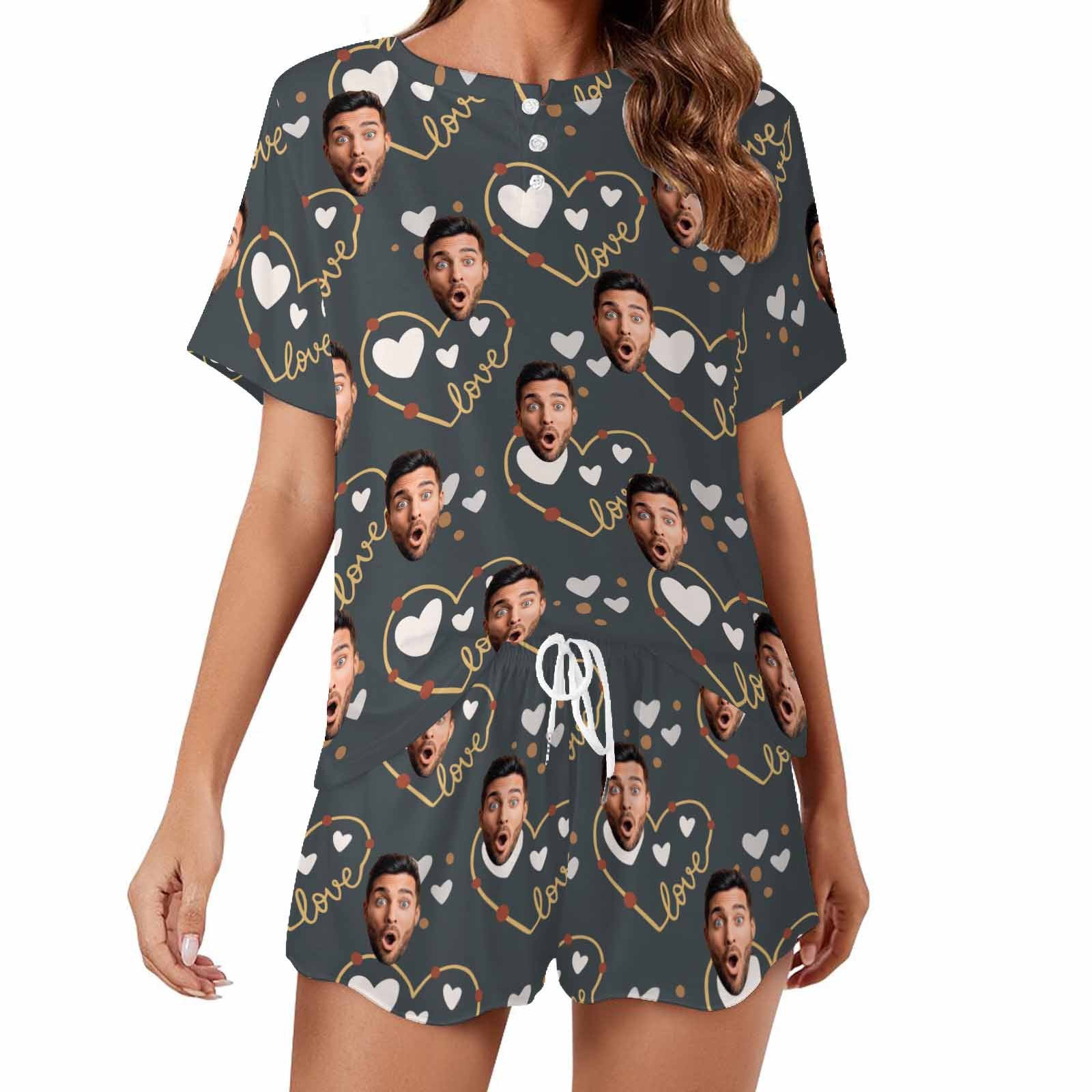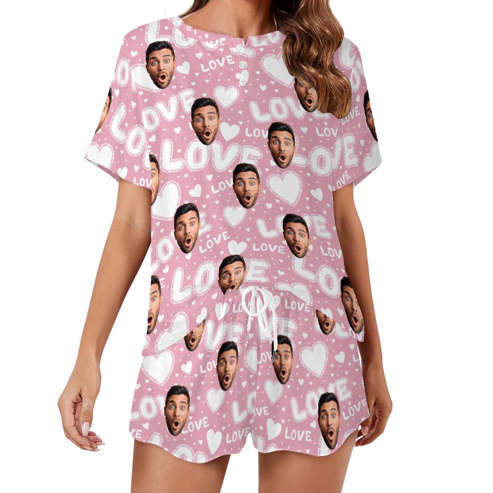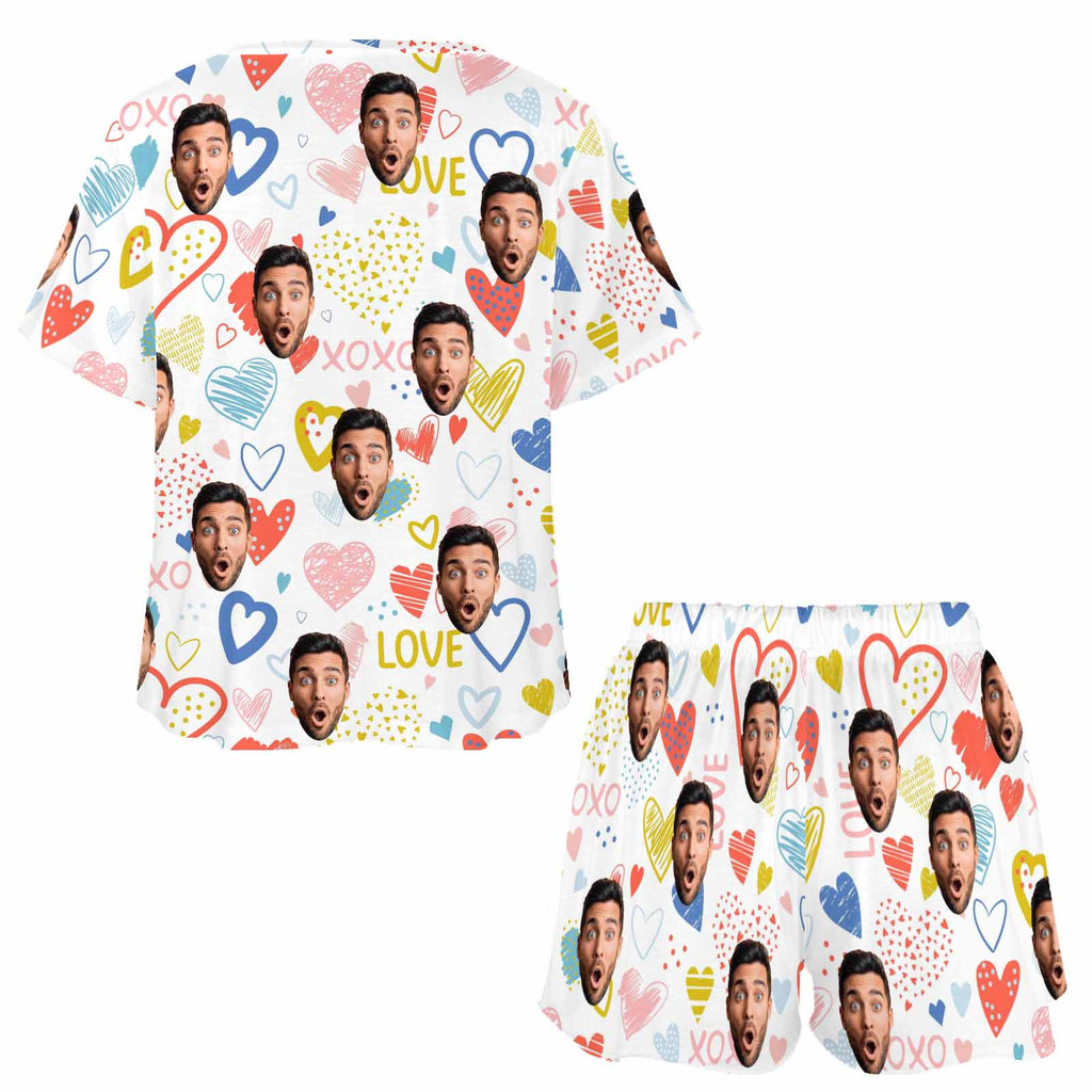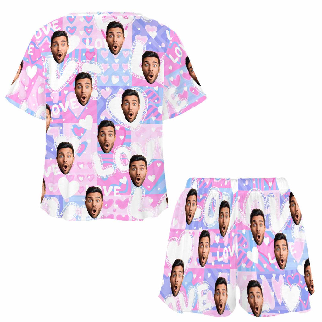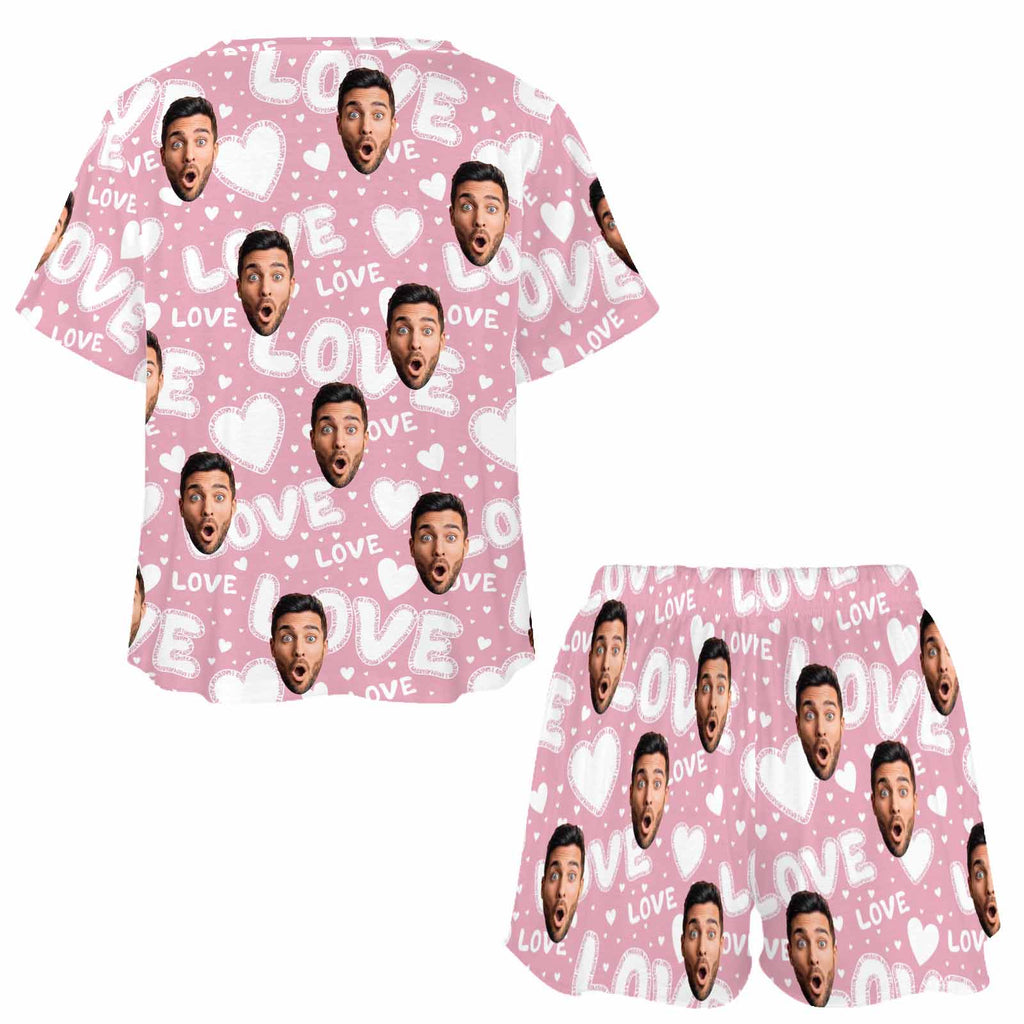 Custom Valentine Womens Short Pajama Set With Face Personalized Photo round neck Short Nightwear for GF Wife Gift