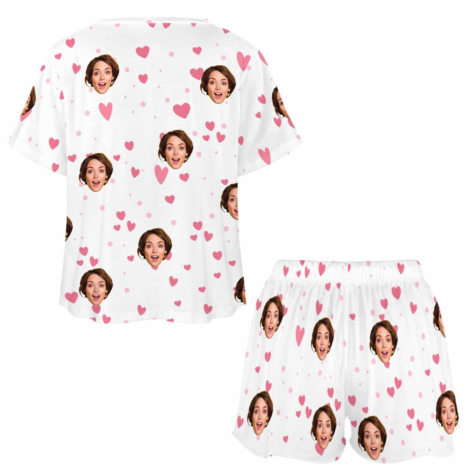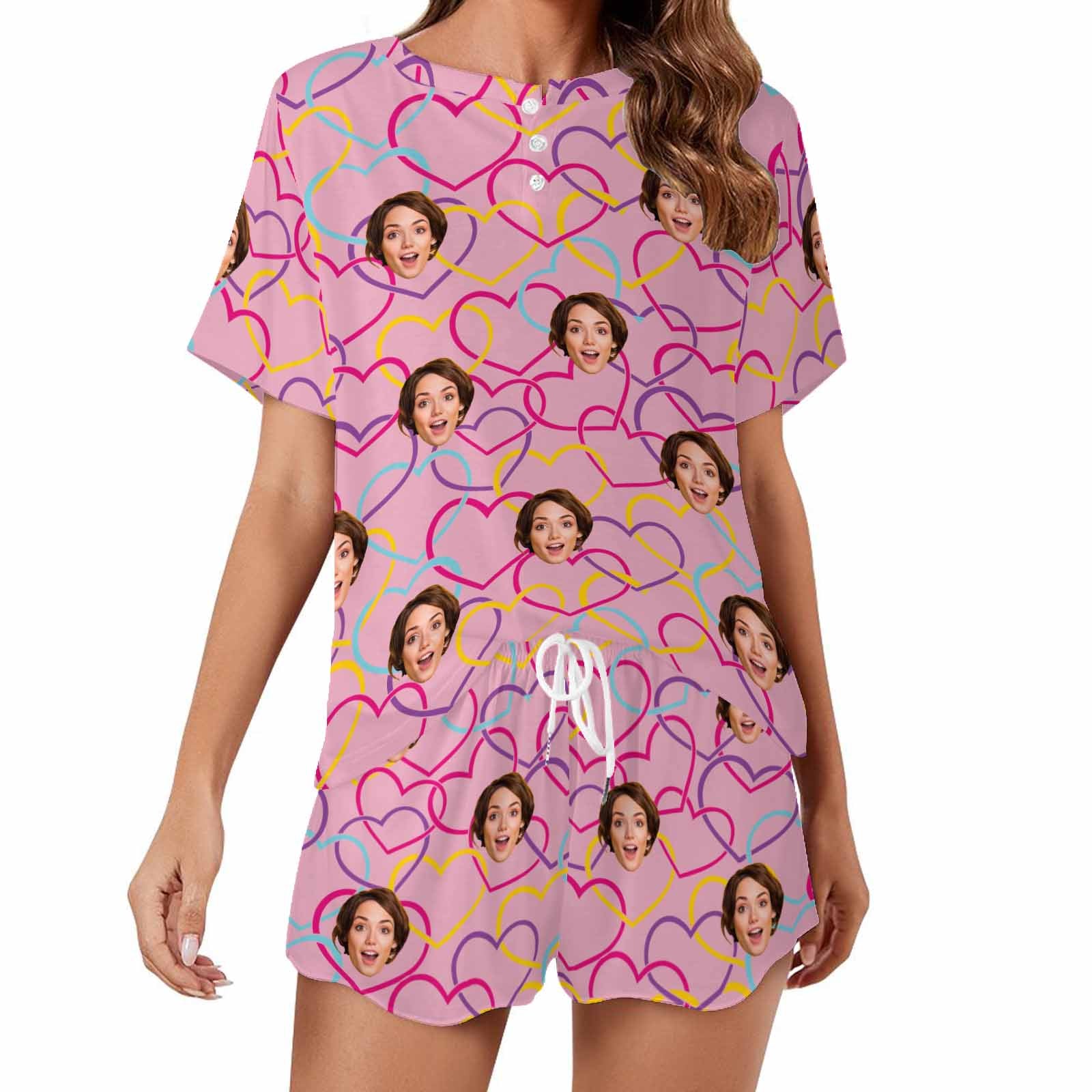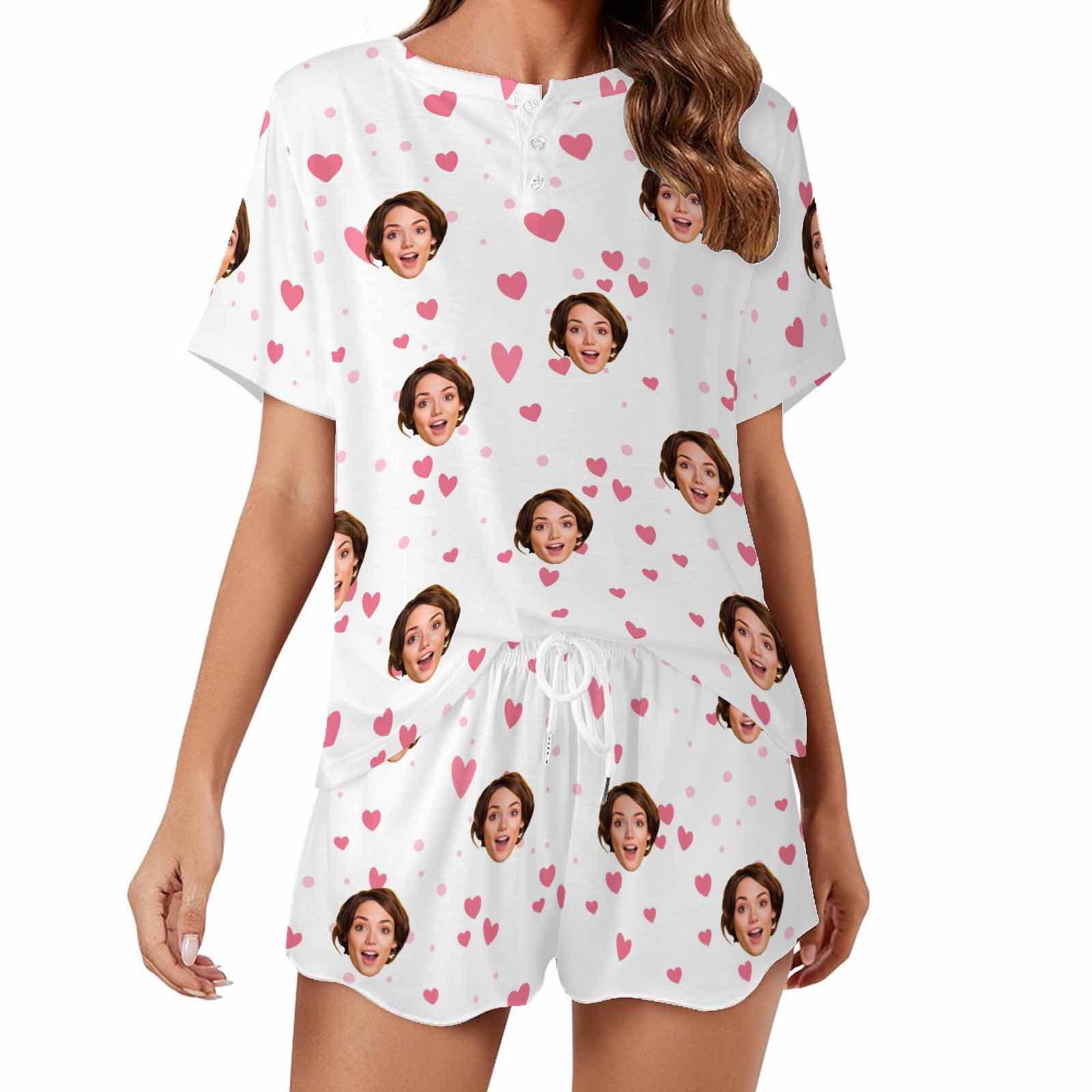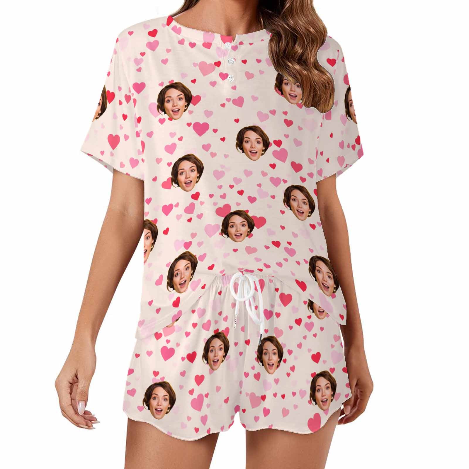 Custom Womens Short Pajama Set With Face Personalized Photo round neck Short Nightwear for GF Wife Valentine Gift