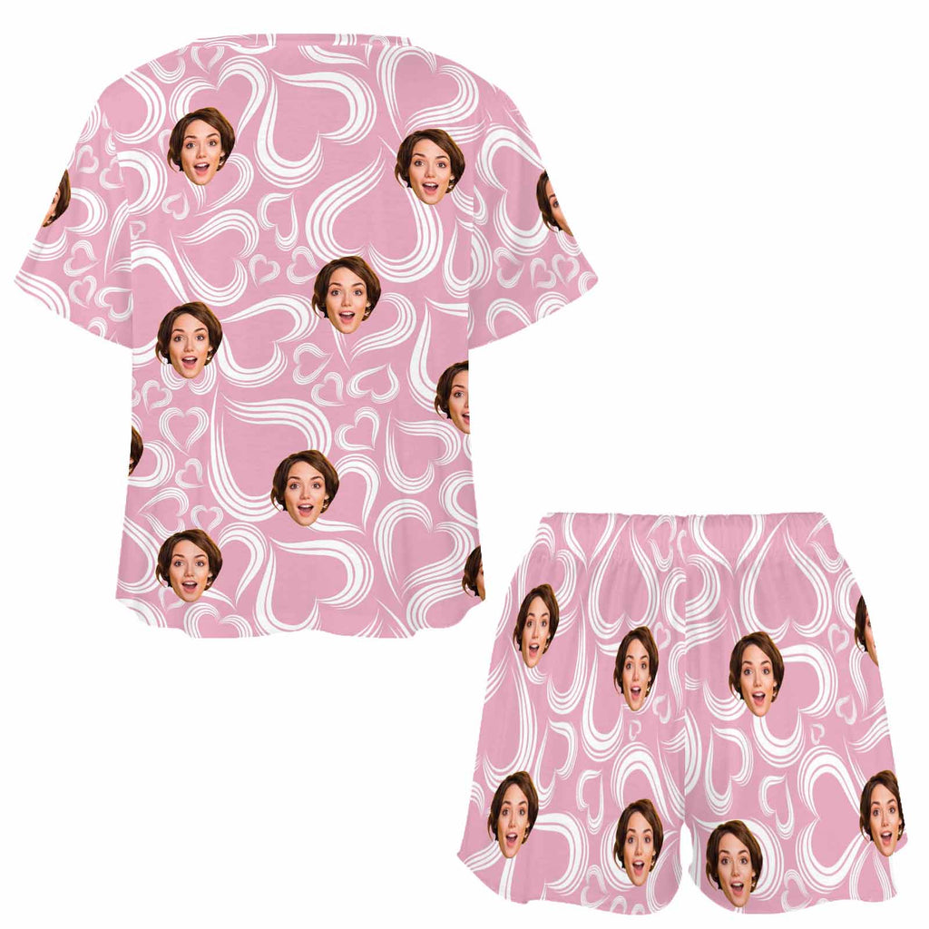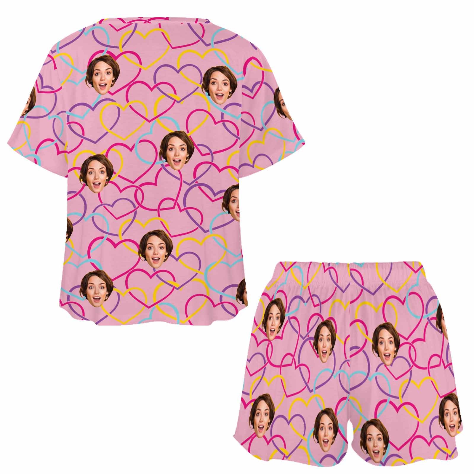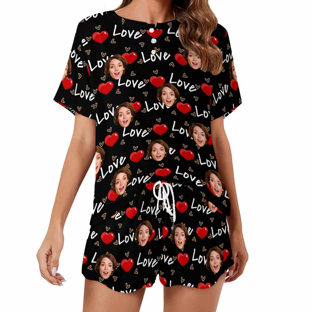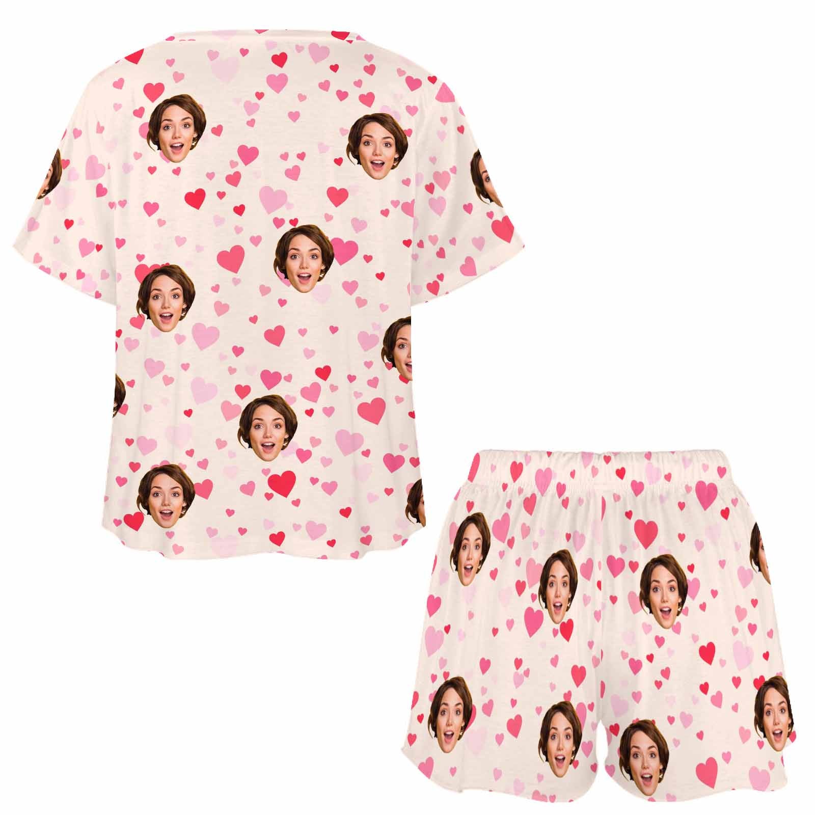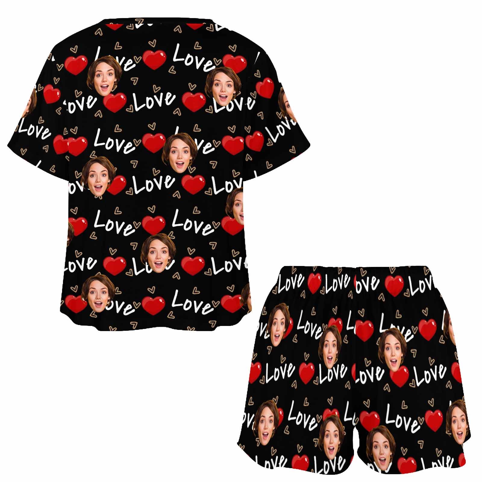 Custom Womens Short Pajama Set With Face Personalized Photo round neck Short Nightwear for GF Wife Valentine Gift