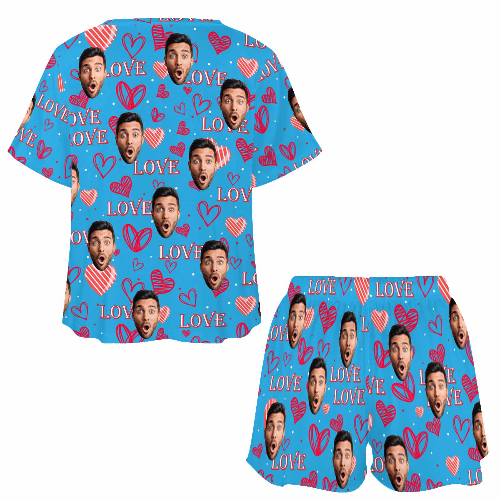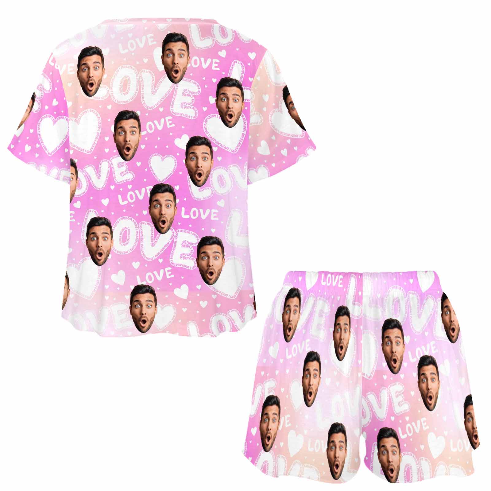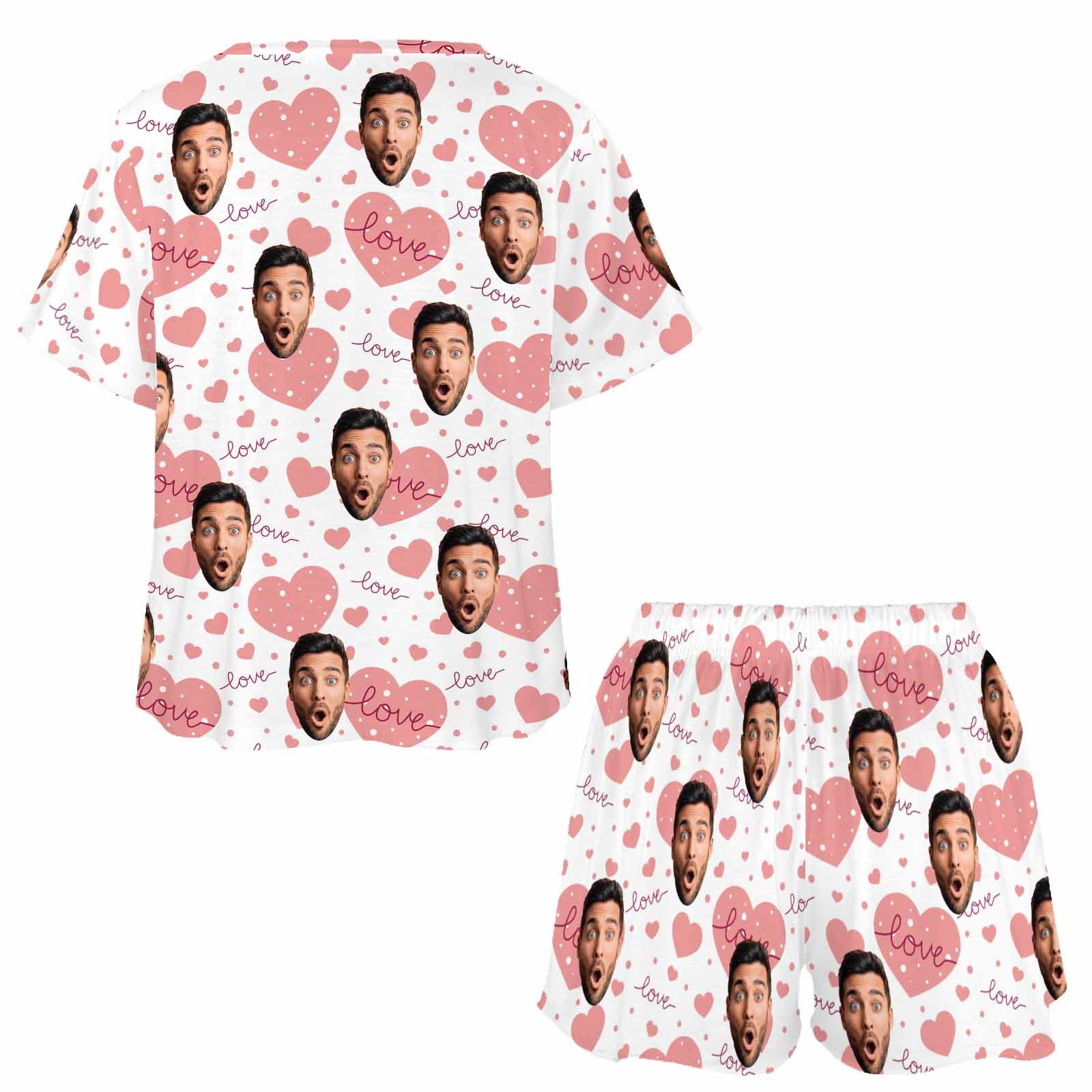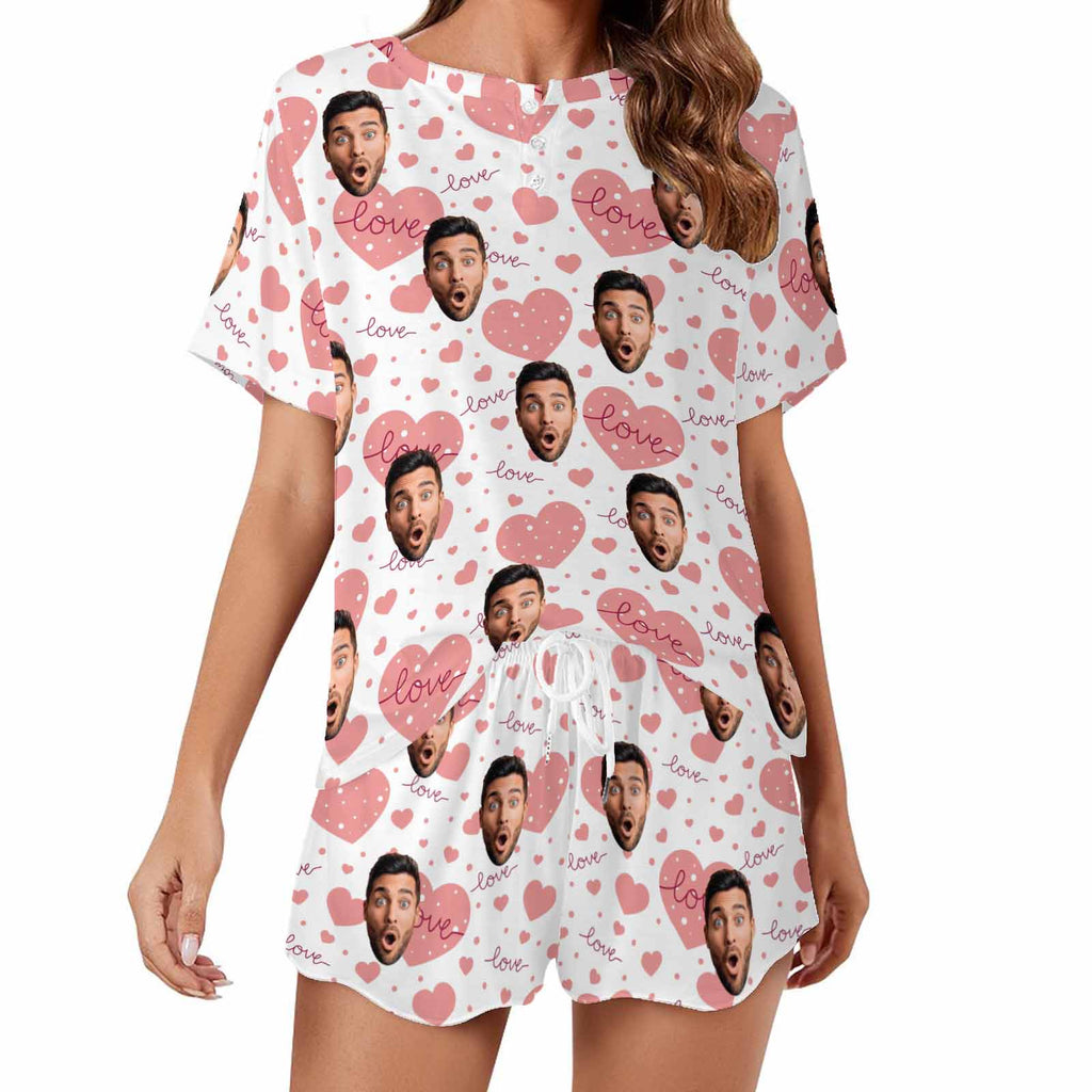 Personalized Valentine Womens Short Pajama Set With Face Custom Photo round neck Short Nightwear for GF Wife Gift