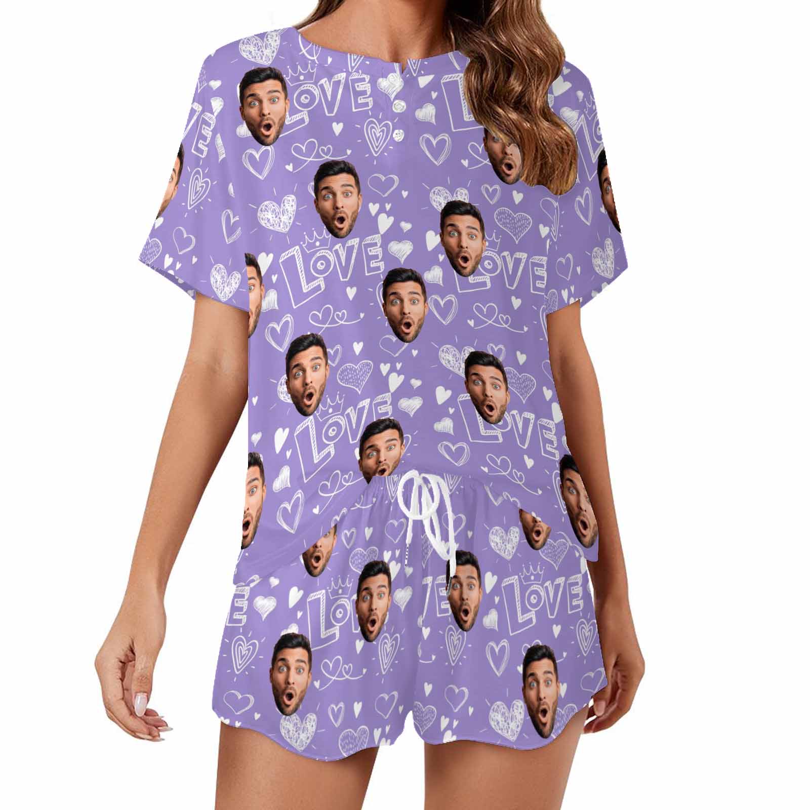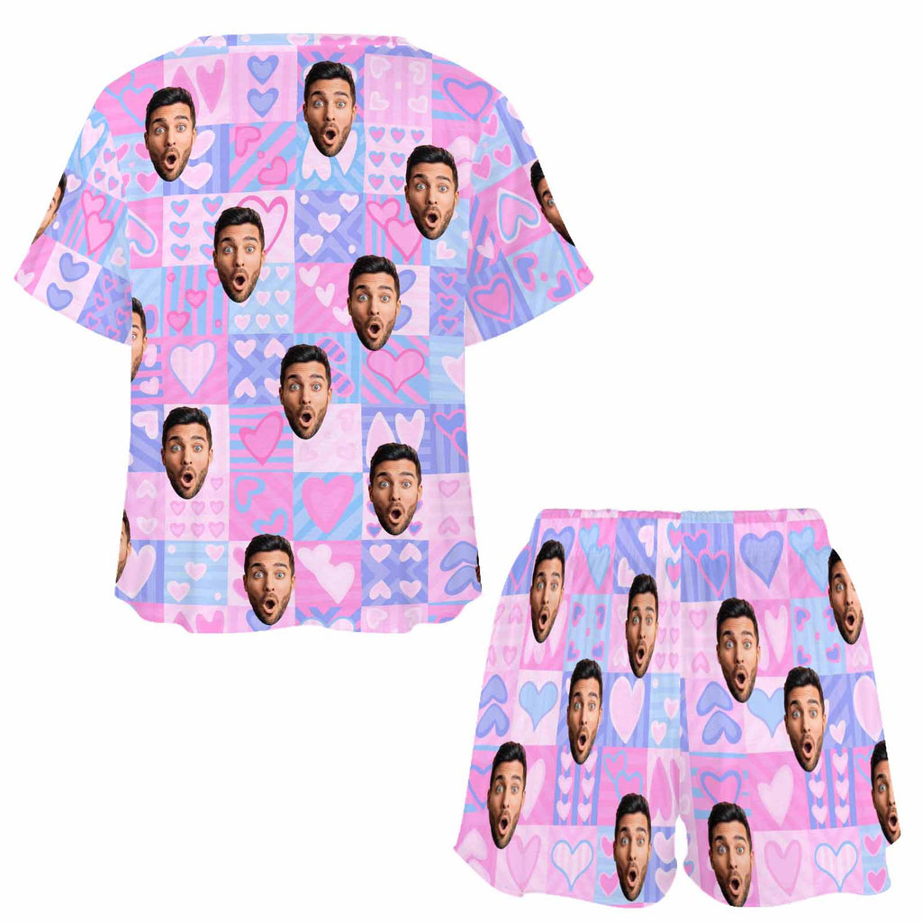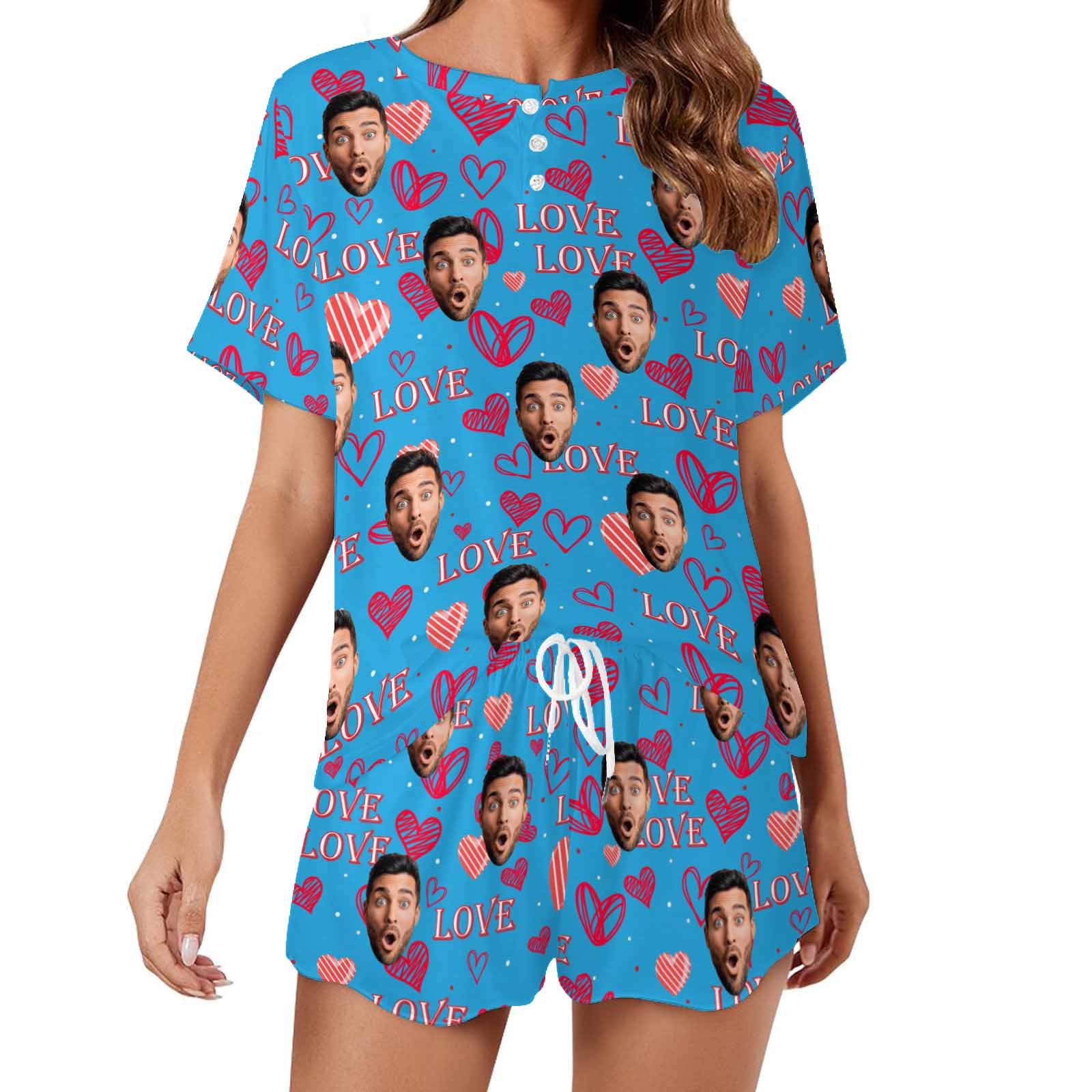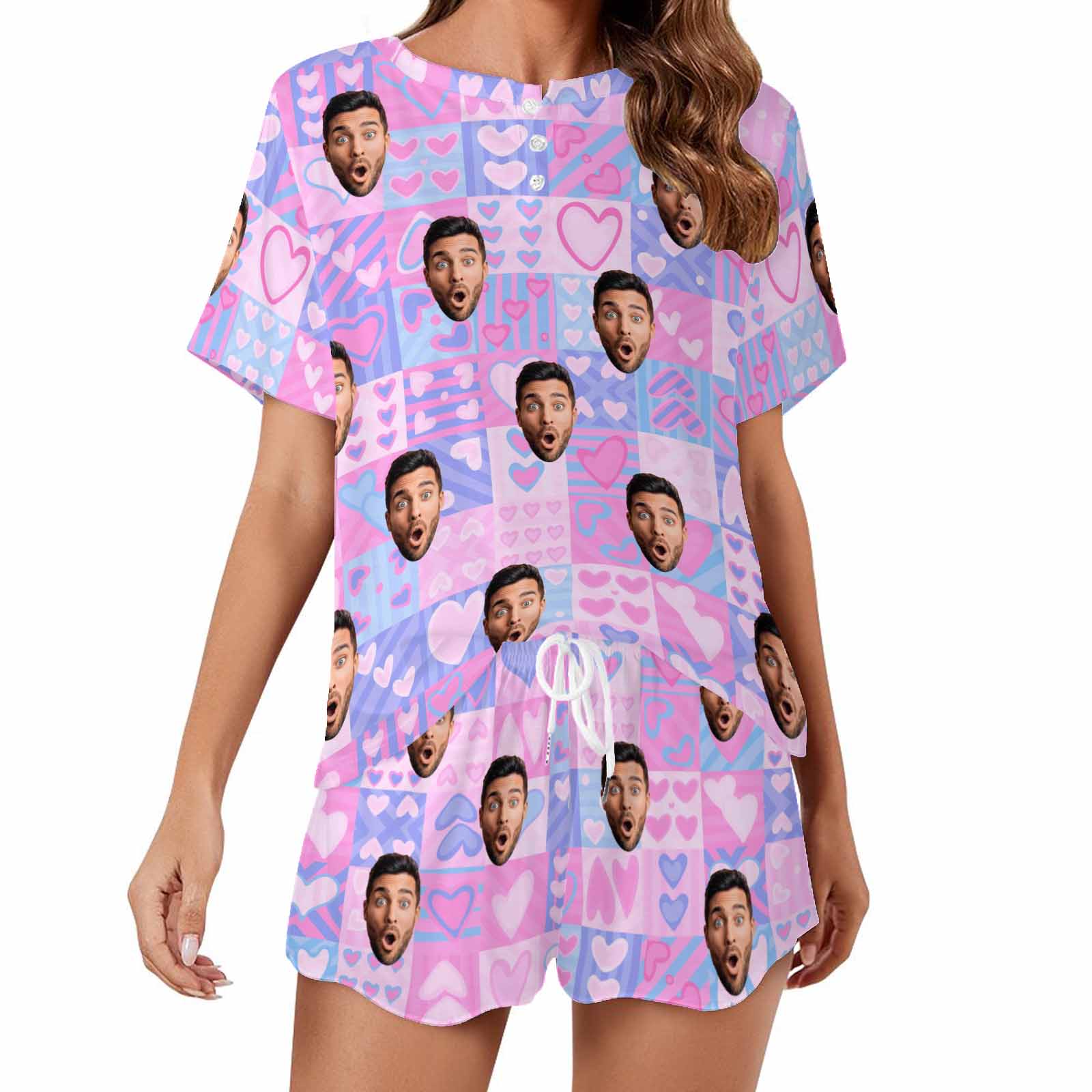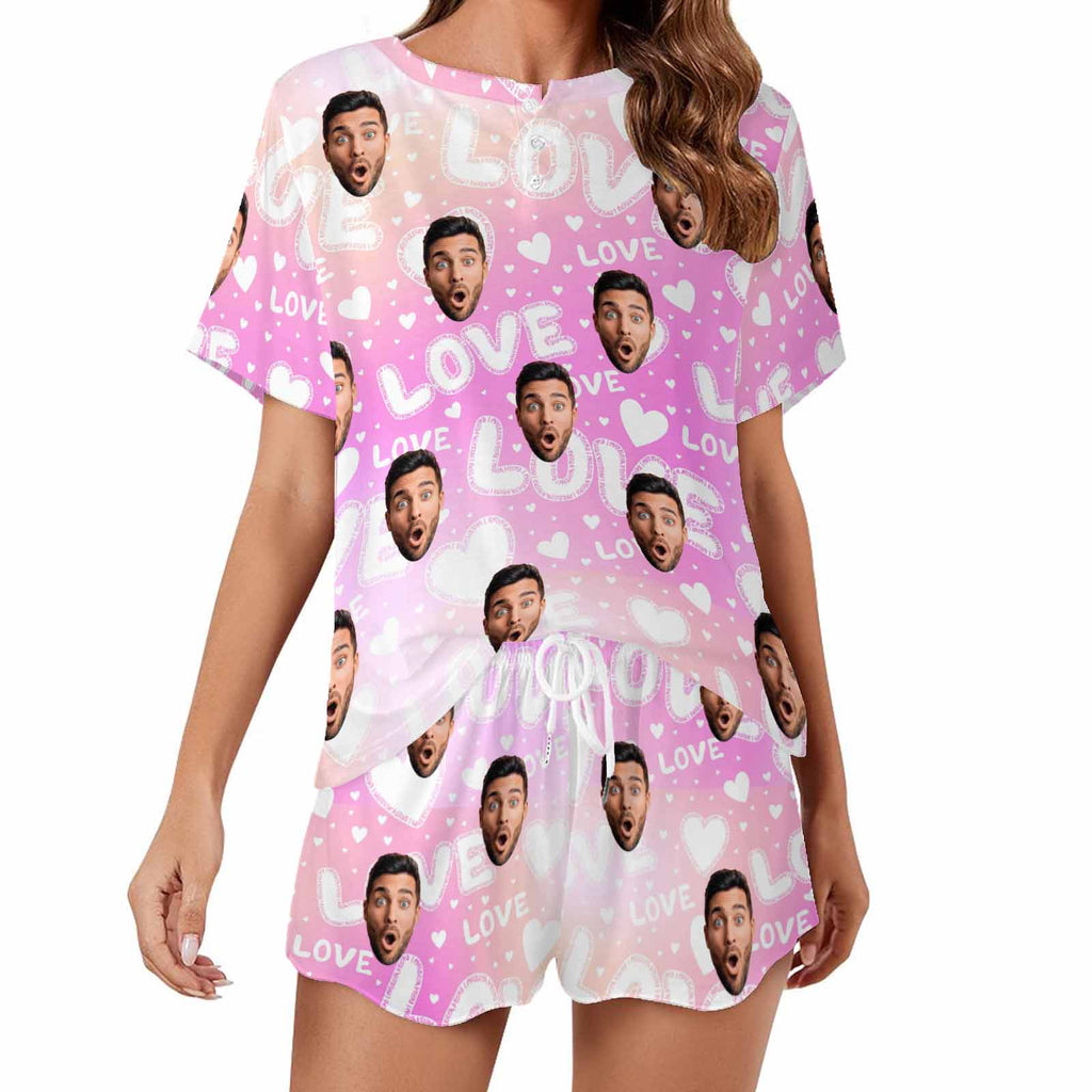 Personalized Valentine Womens Short Pajama Set With Face Custom Photo round neck Short Nightwear for GF Wife Gift