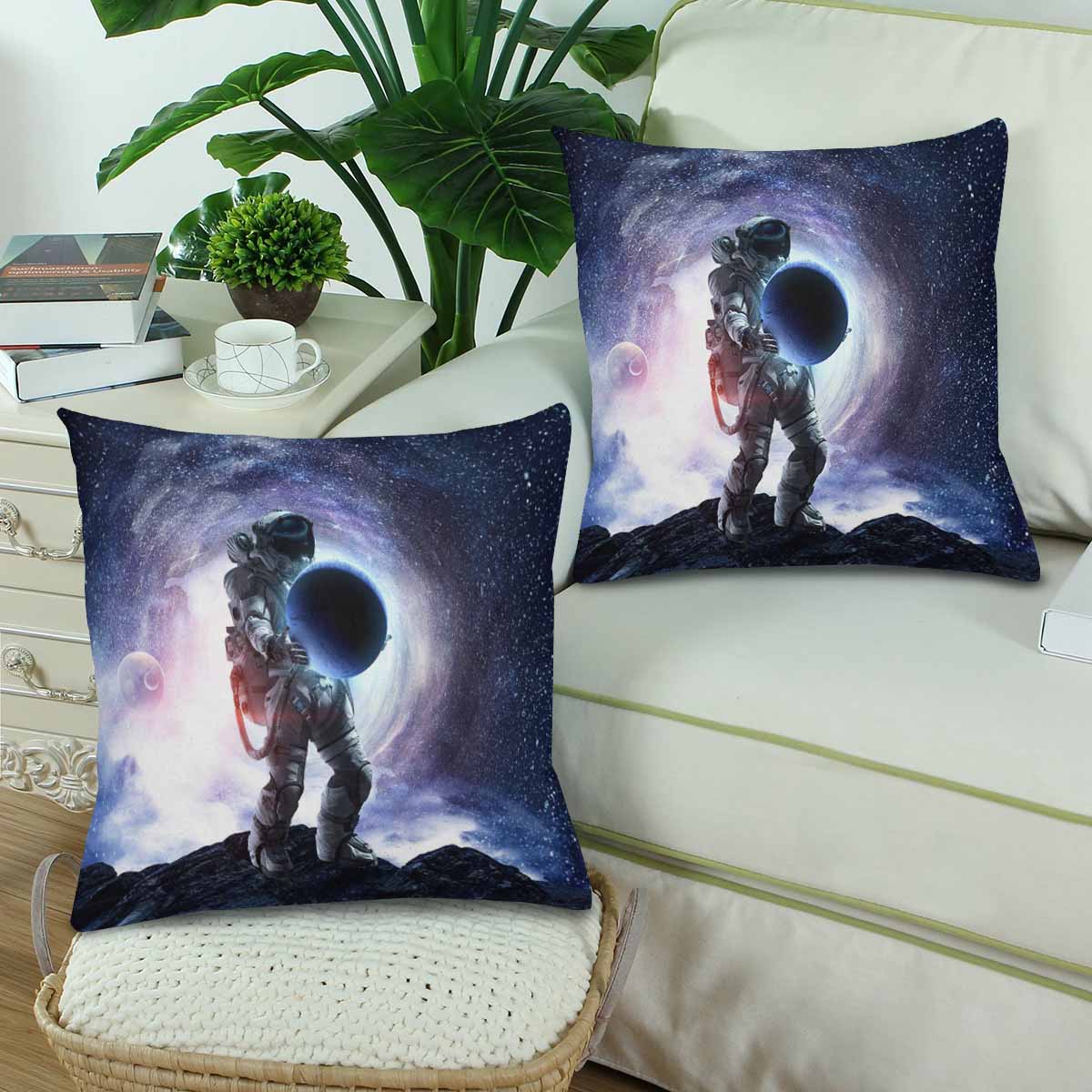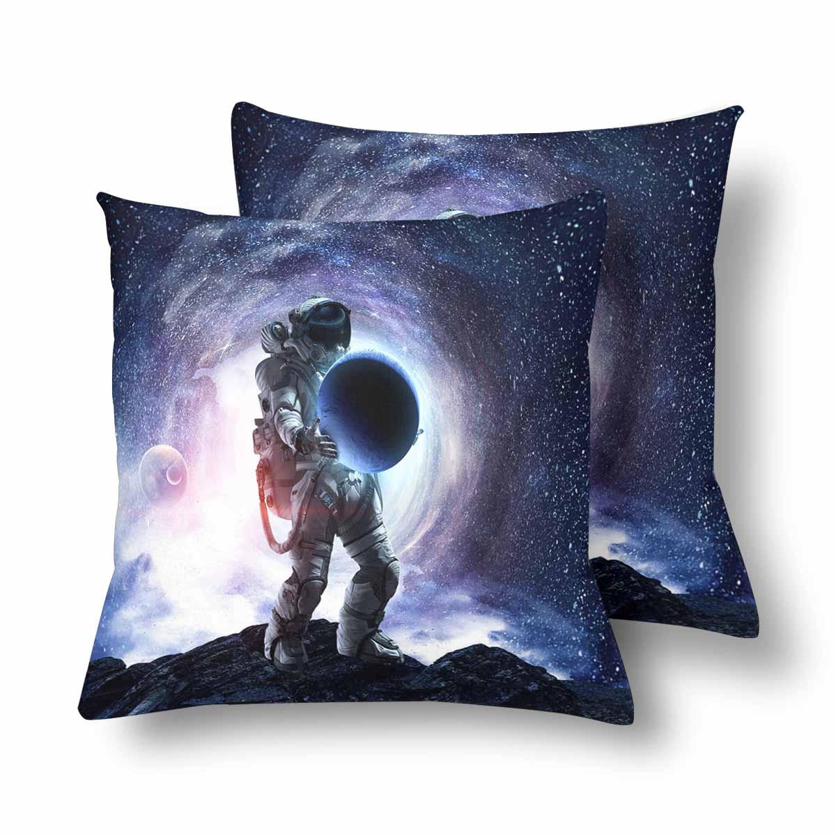 Galaxy themed Pillow Cases printed with astronaut holding in hands mars planet spaceman carring his mission