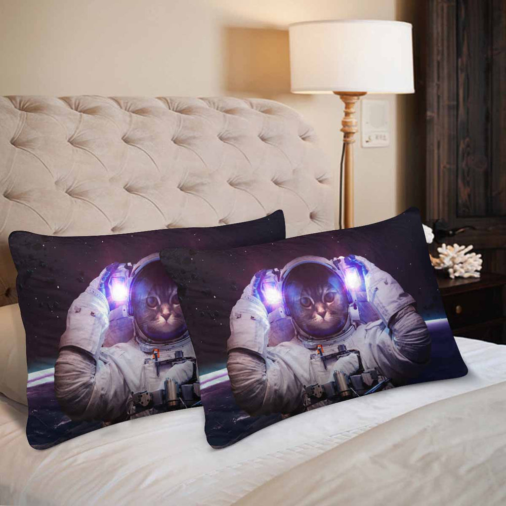 Galaxy themed Rectangle Pillow Cases printed Beautiful cat in outer space