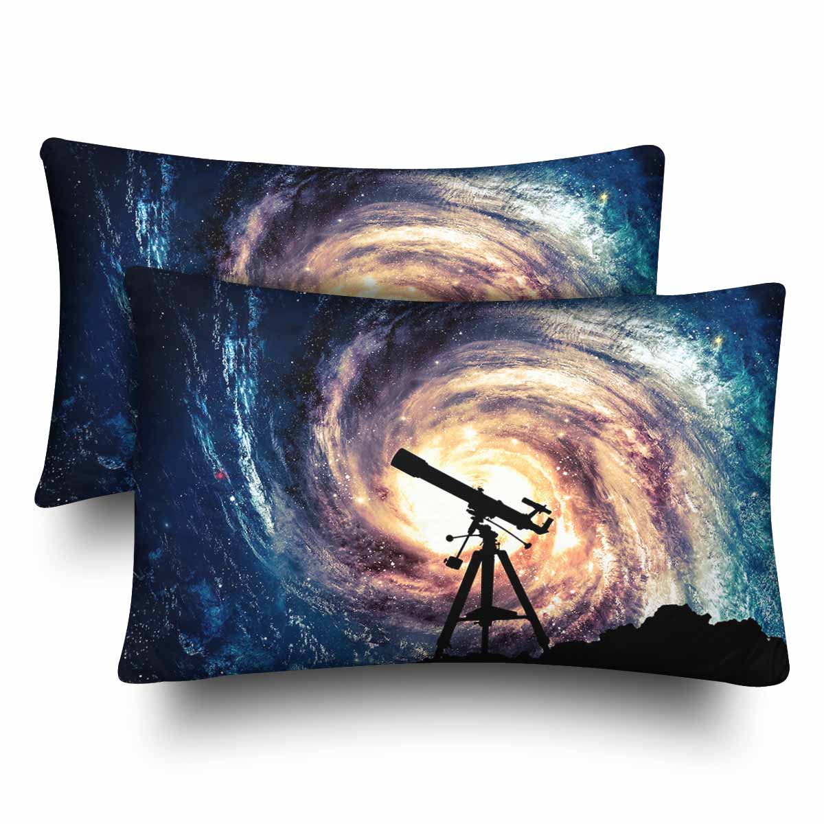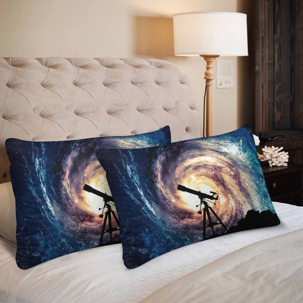 Galaxy themed Rectangle Pillow Cases printed Silhouette of Telescope