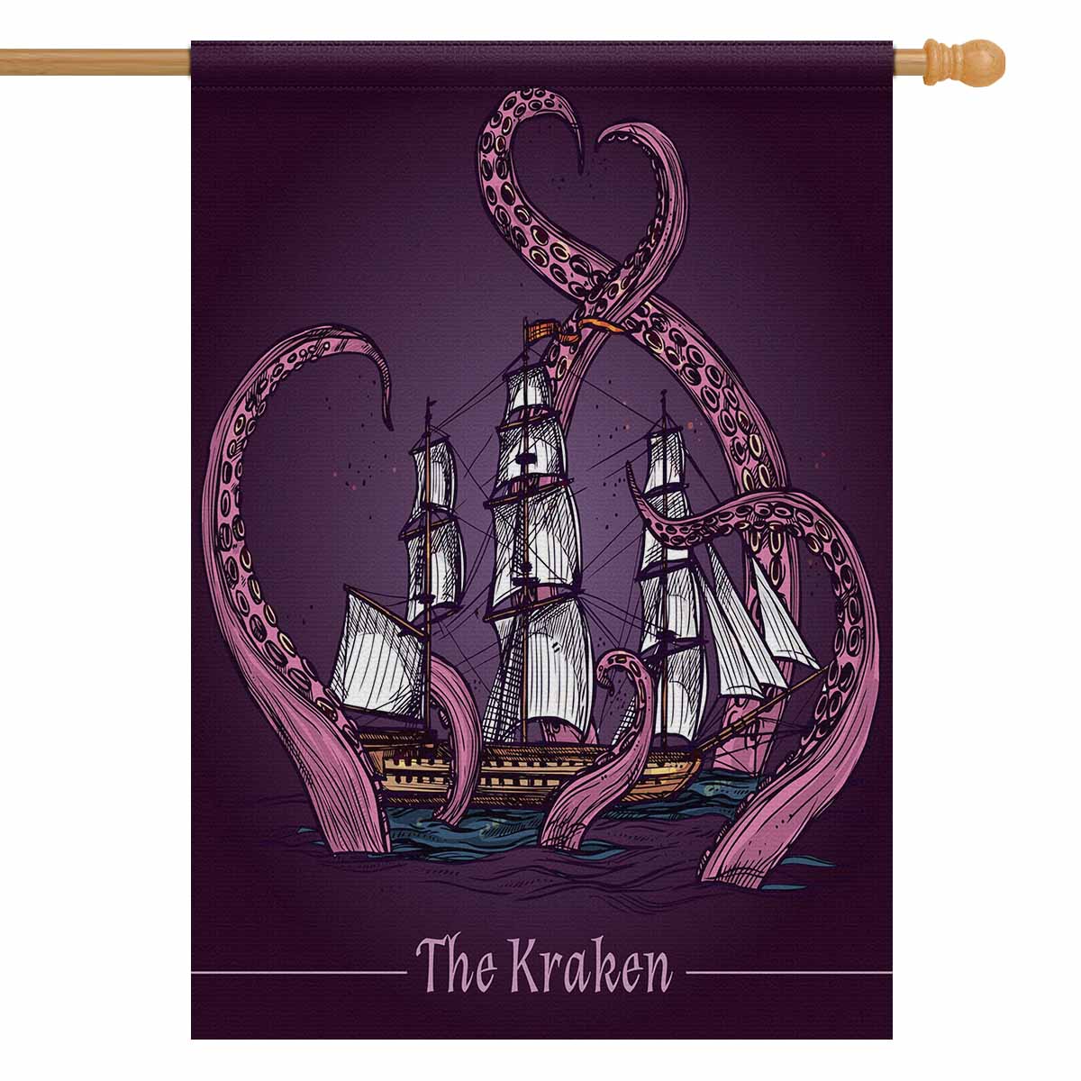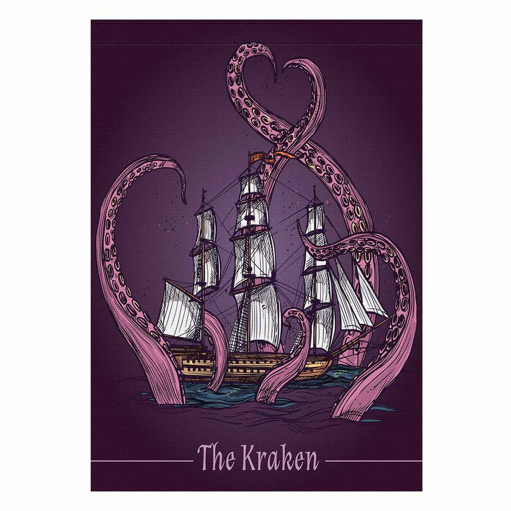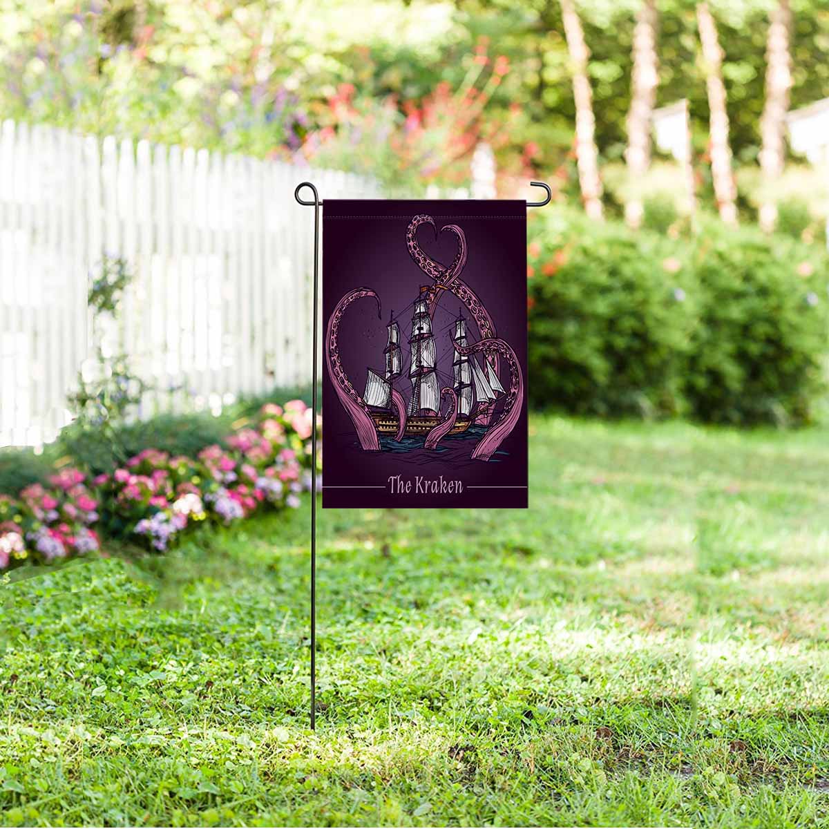 Garden Flags printed animals themed with Kraken decorative emblem with sail ship in giant monster tentacles