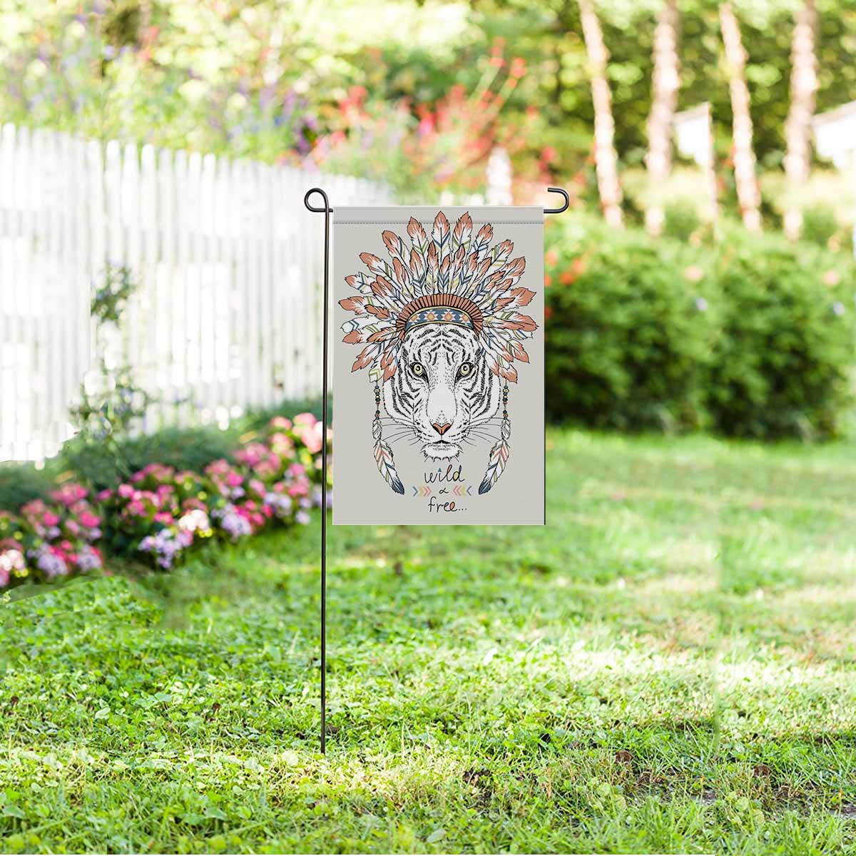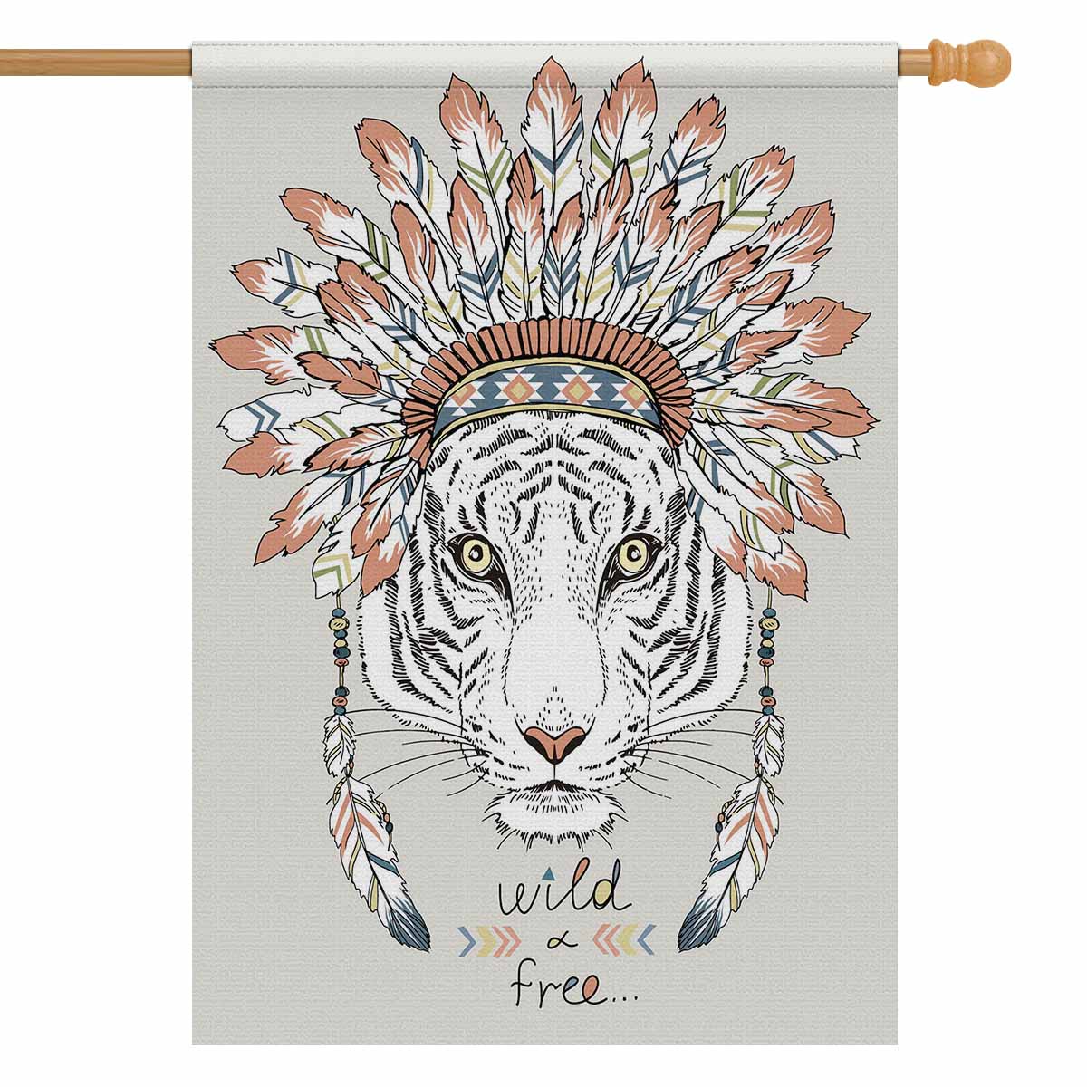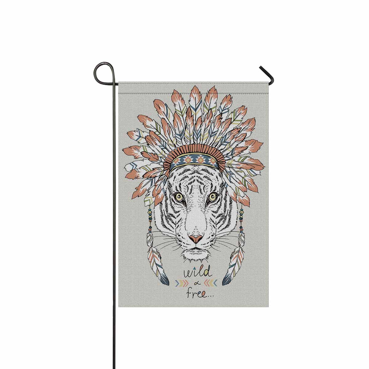Garden Flags printed animals themed with Native american tiger in war bonnet