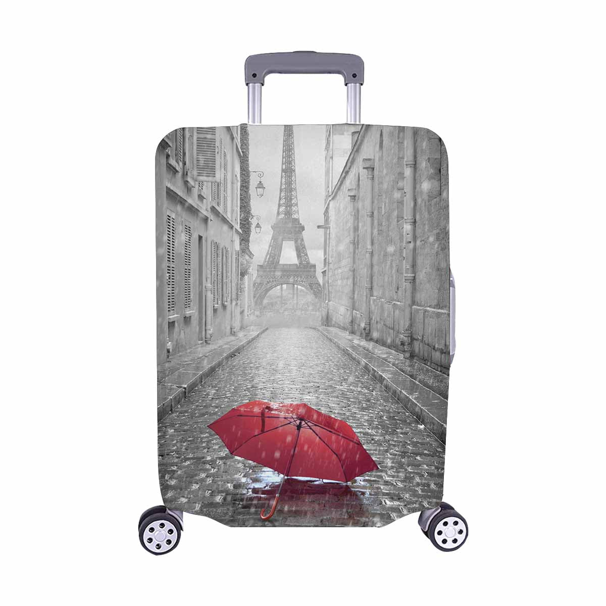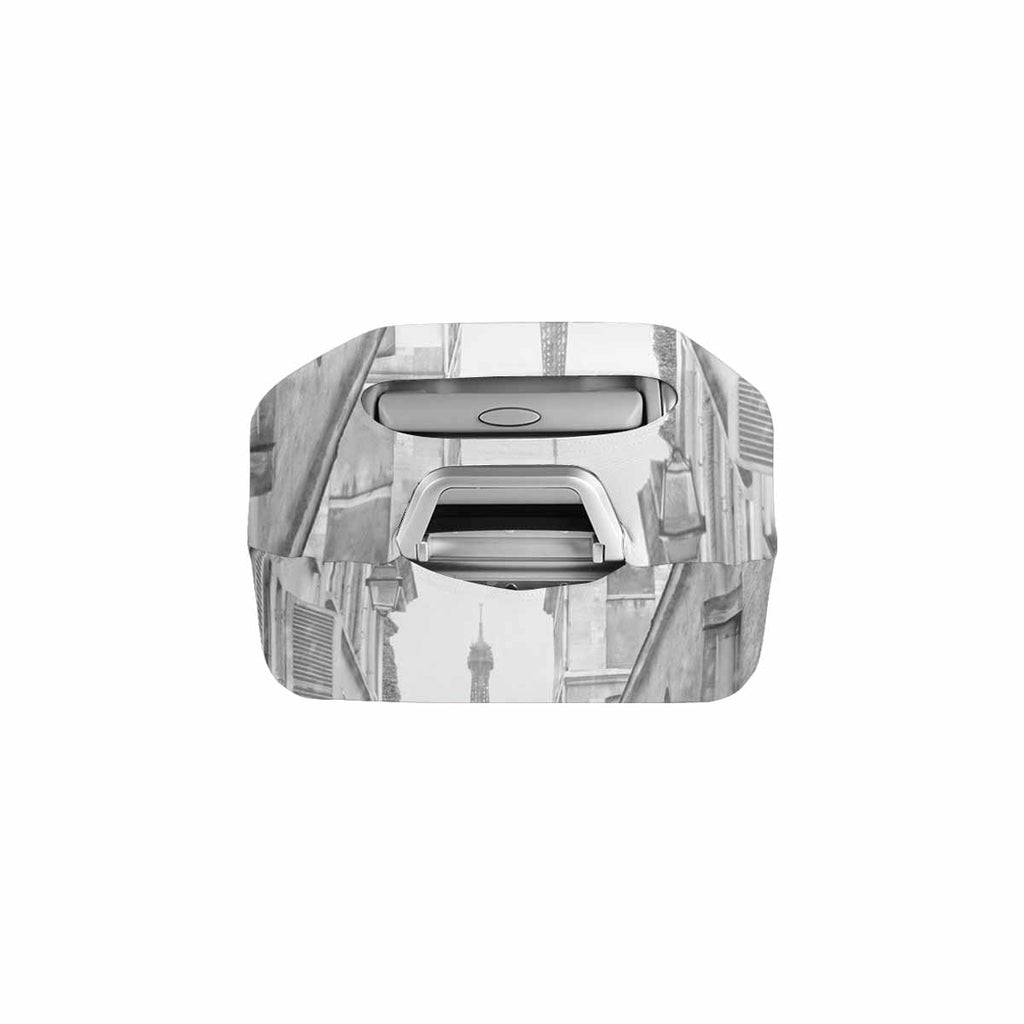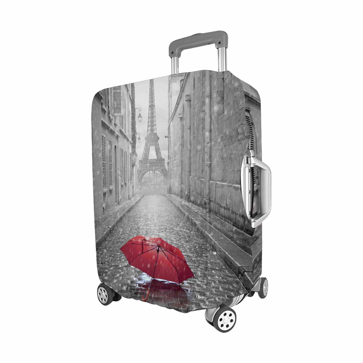 Coutry themed Cover for Luggage suitcase printed Eiffel tower view from the street of Paris. Black and white photo with red umbrella.