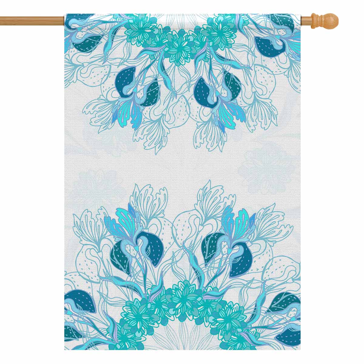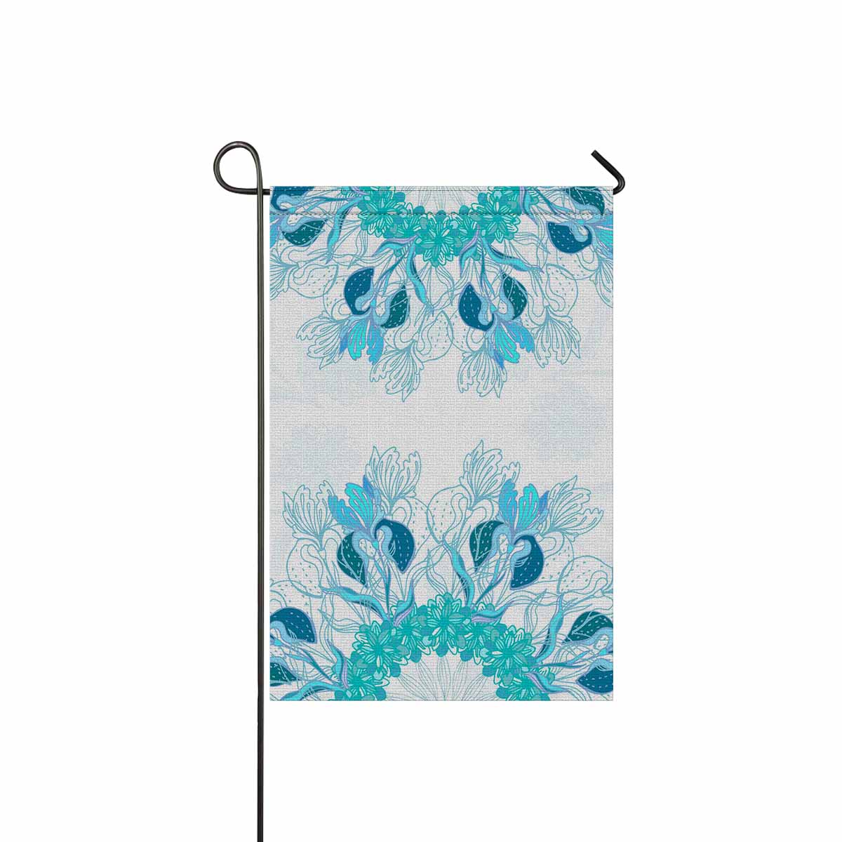 Garden Flags printed Mandala themed with Blue floral ornament mandala background with doodles iris