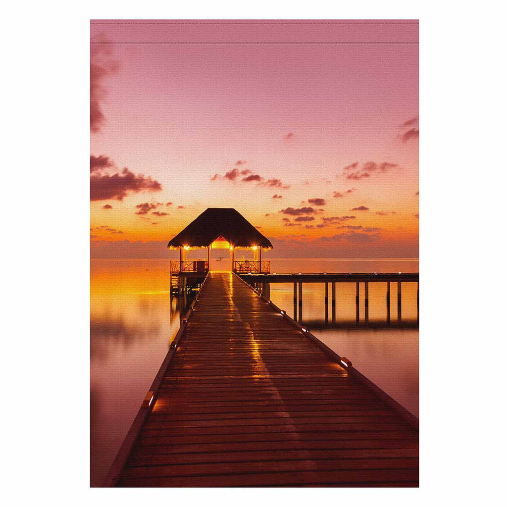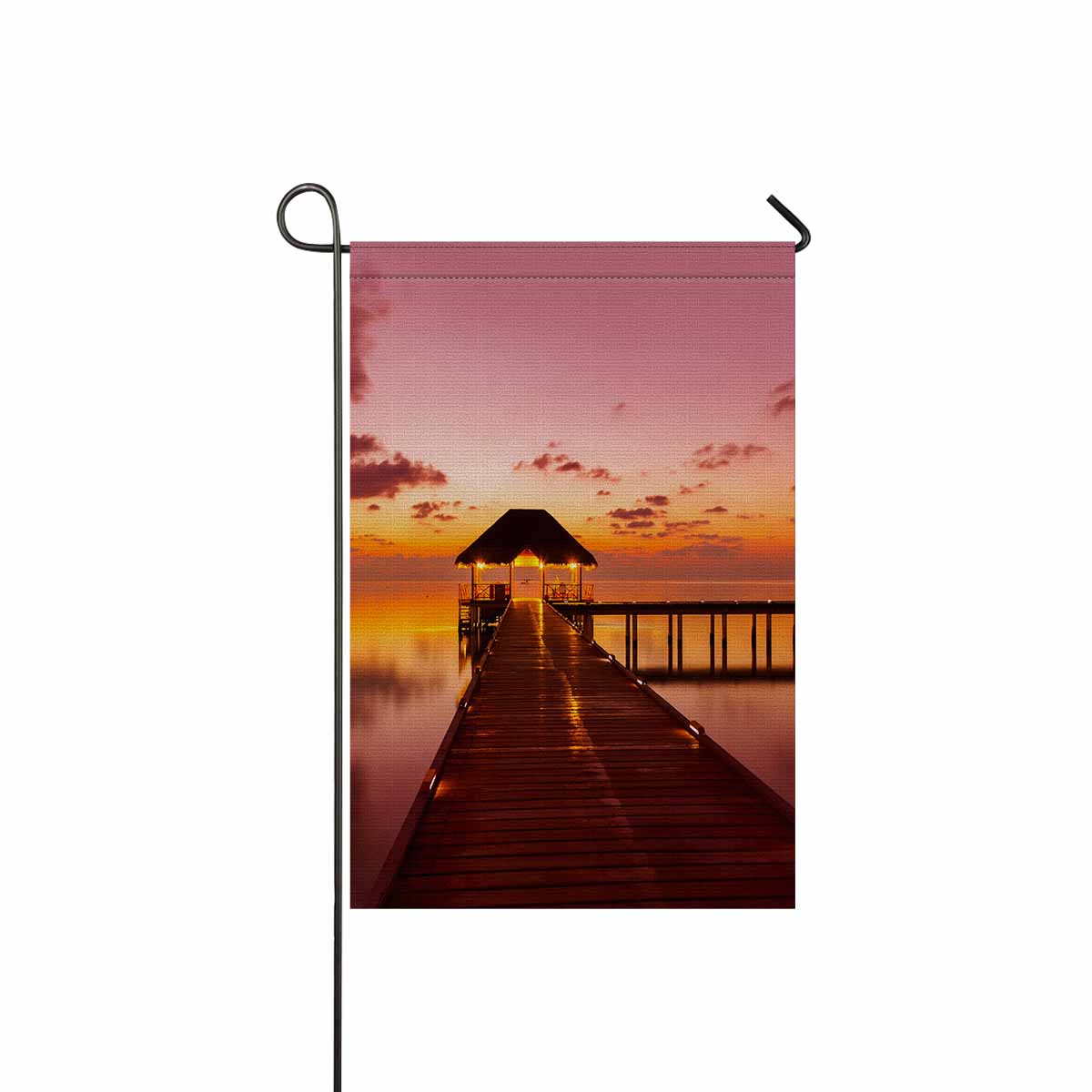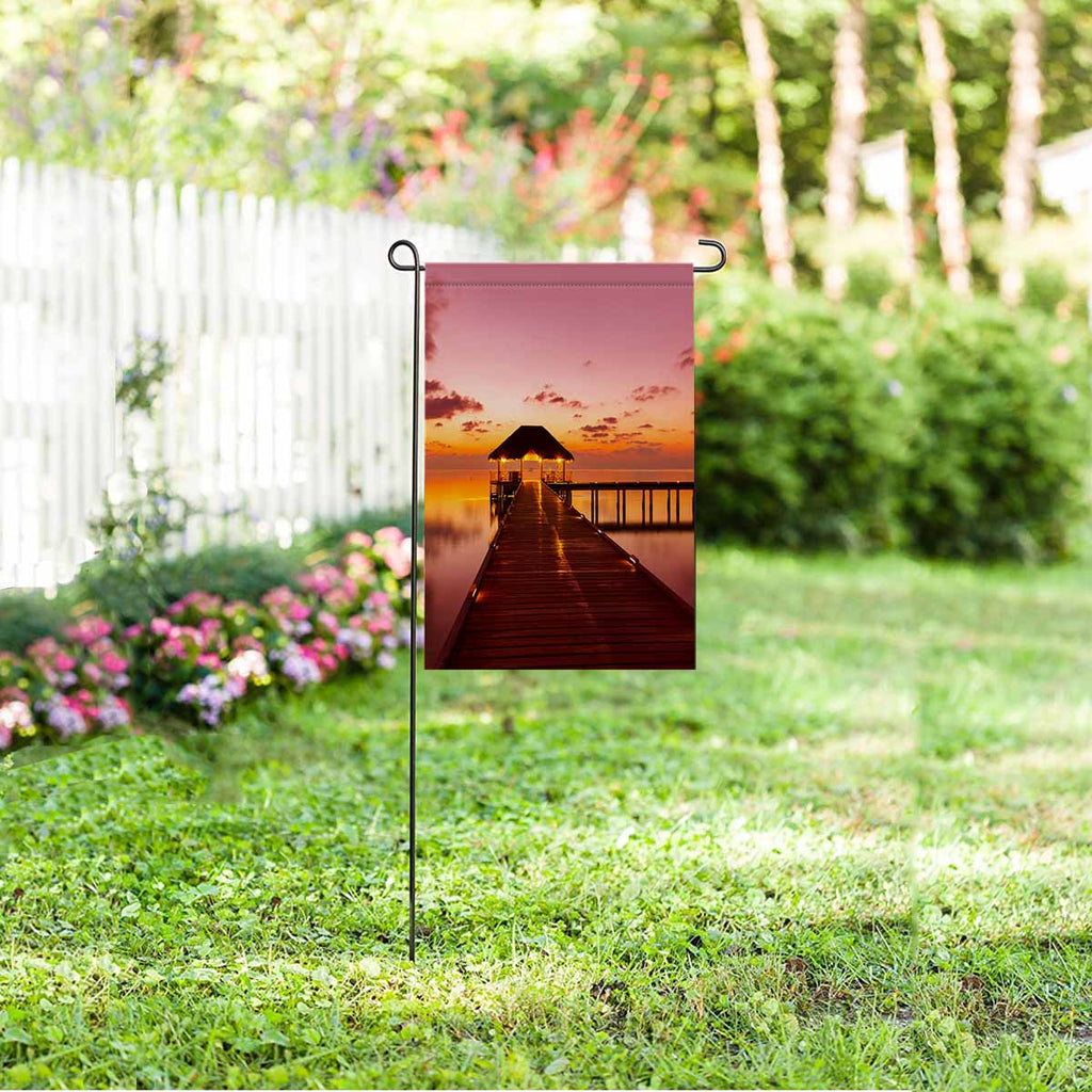Garden Flags printed Nature Landscape themed with Water cafe at sunset