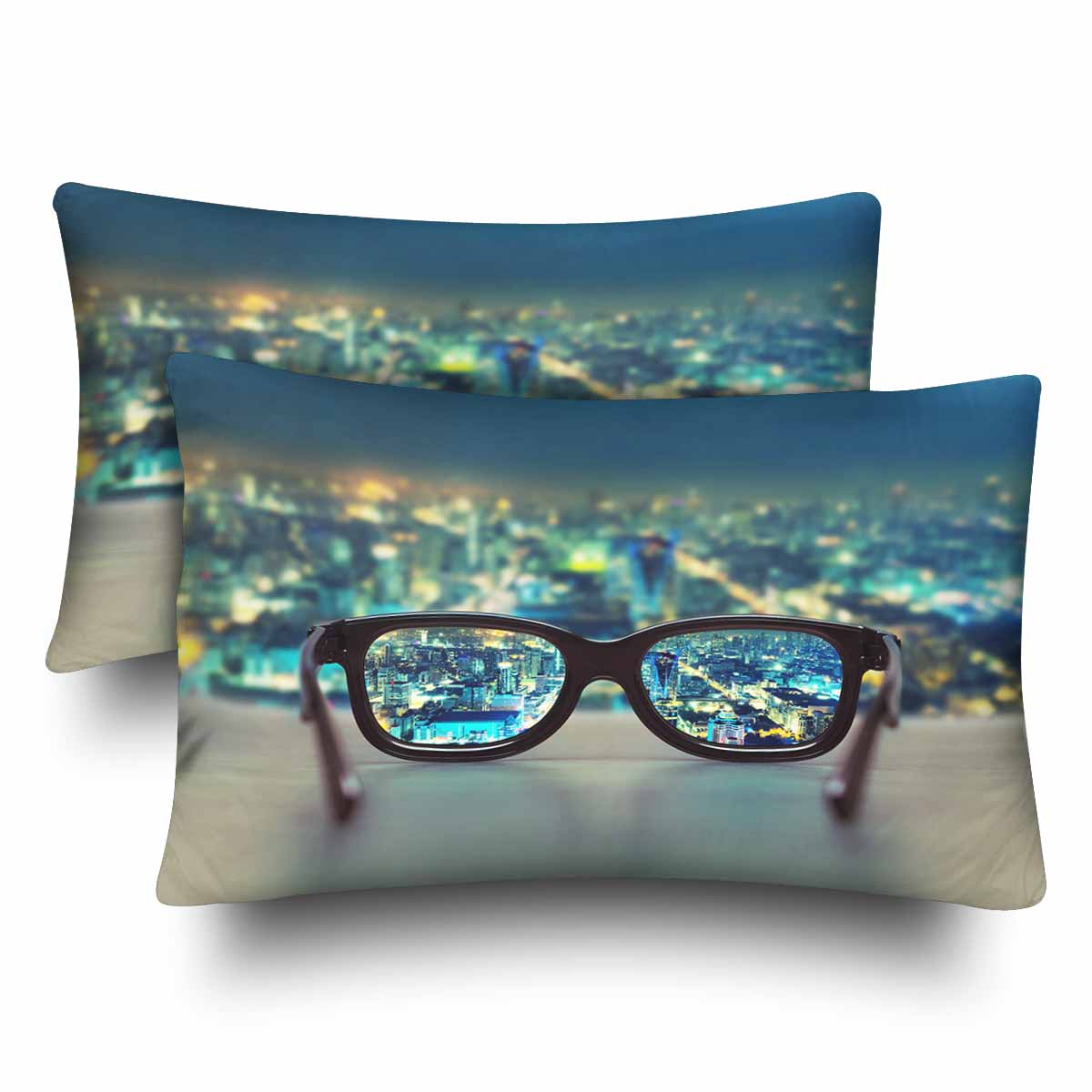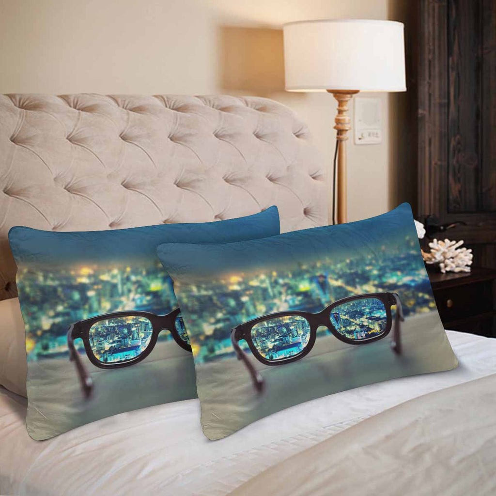 Nature Landscape themed Rectangle Pillow Cases printed Night cityscape focused in glasses lenses