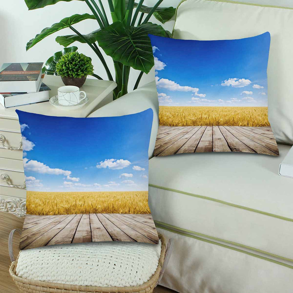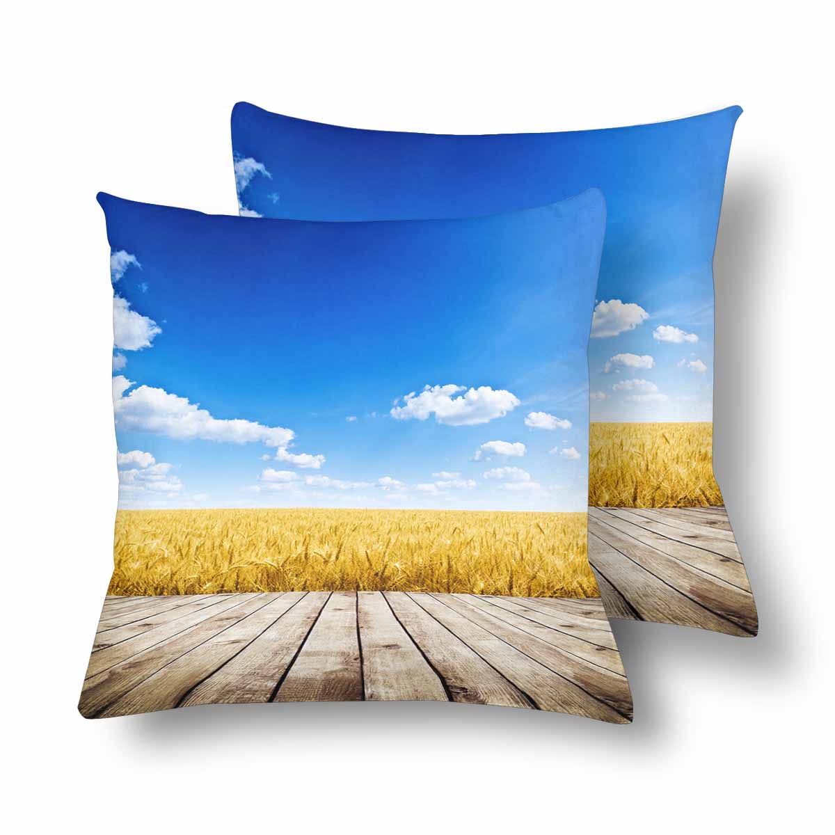 Pillow Cases printed with Wood floor over yellow wheat field under sunset cloud sky