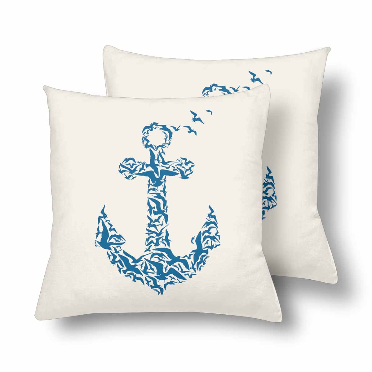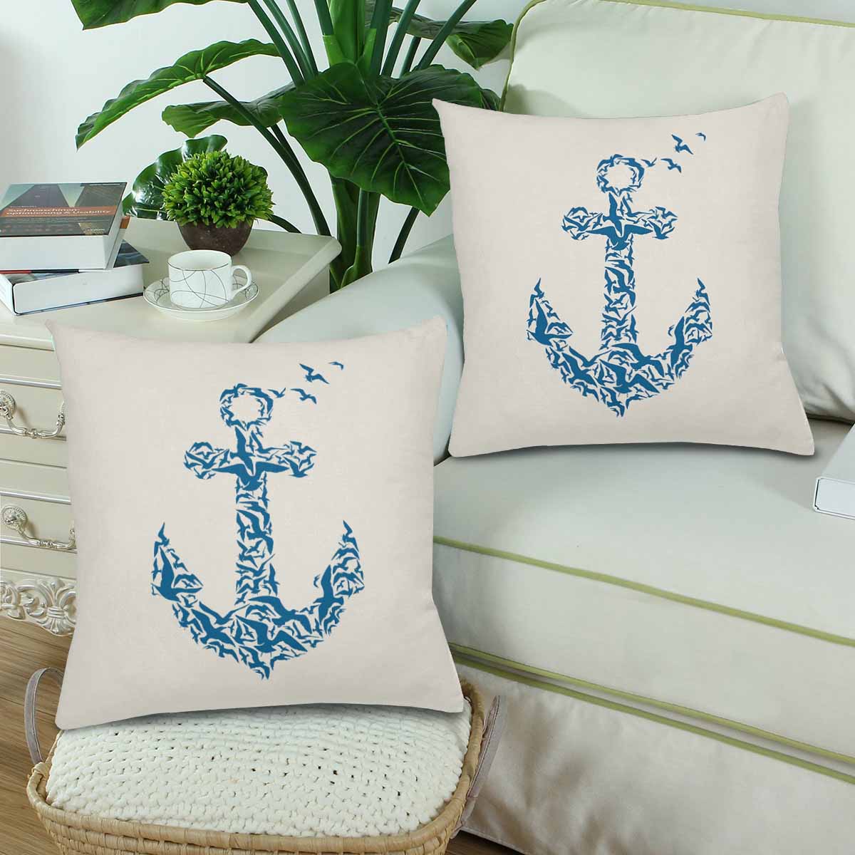 Nautical and Mermaid themed Pillow Cases printed with Anchor vector with bird