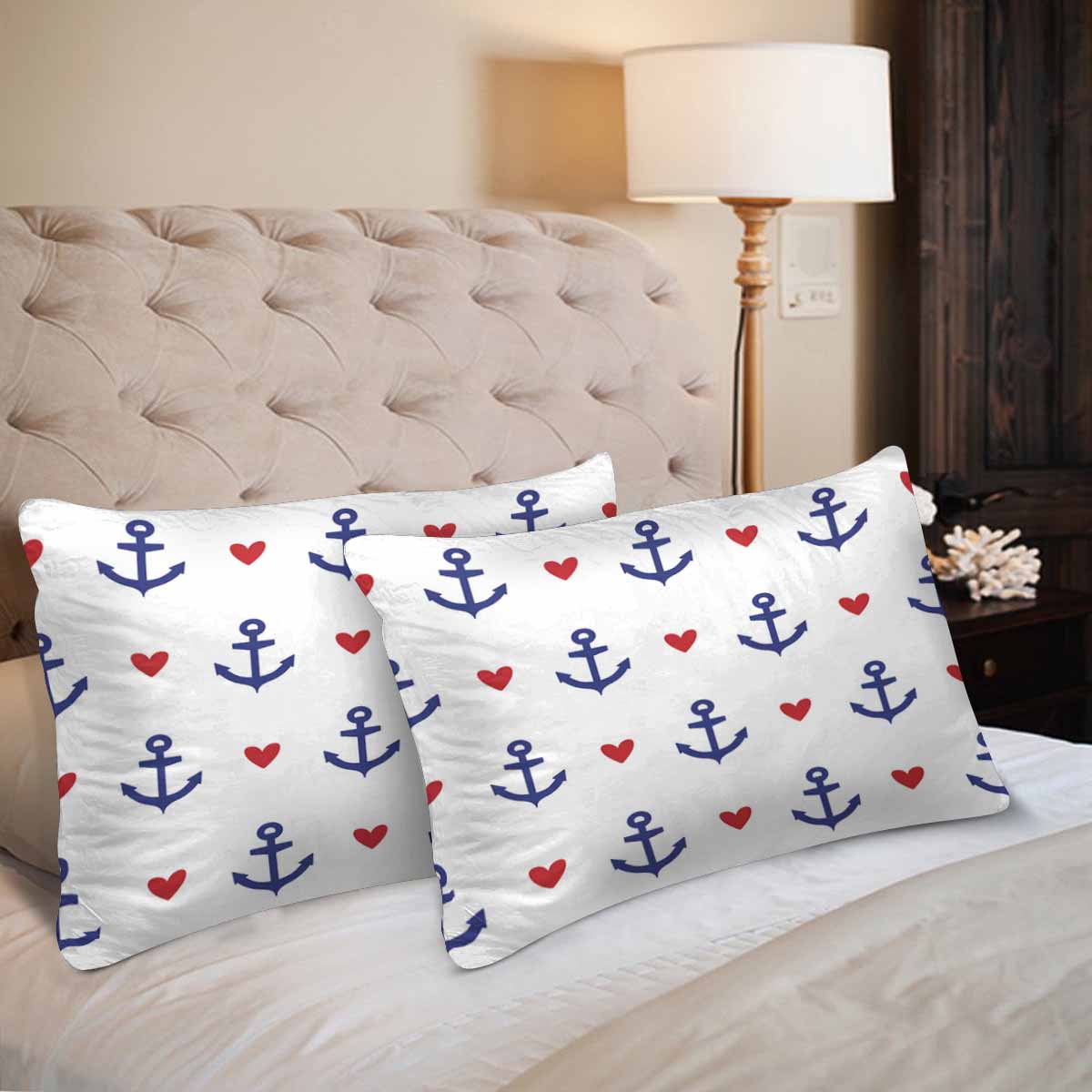 Nautical and Mermaid themed Rectangle Pillow Cases printed Pattern with hearts and anchors