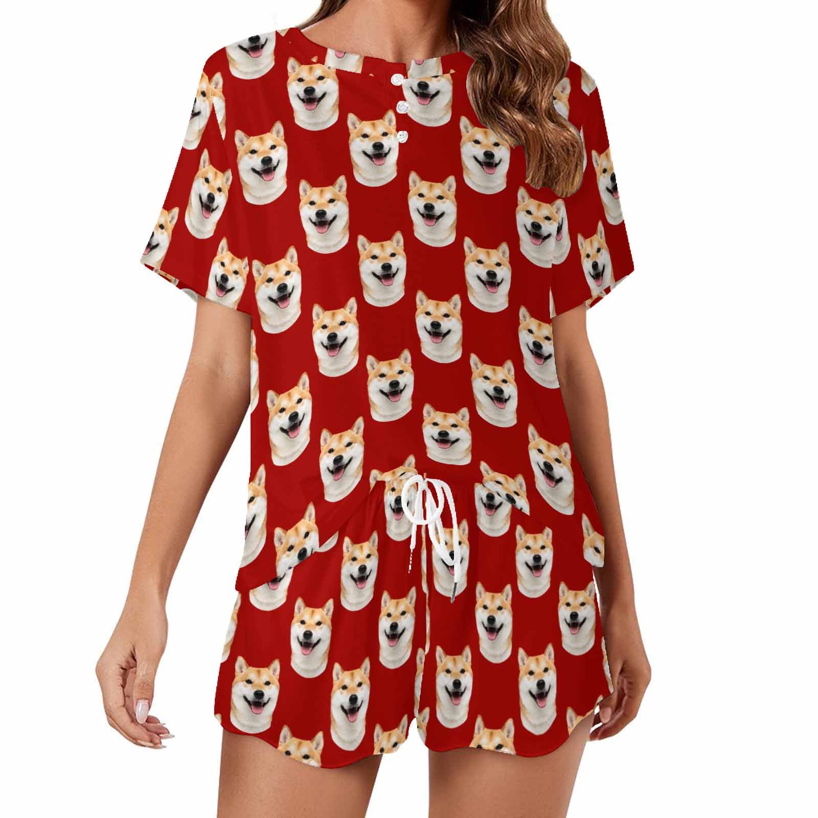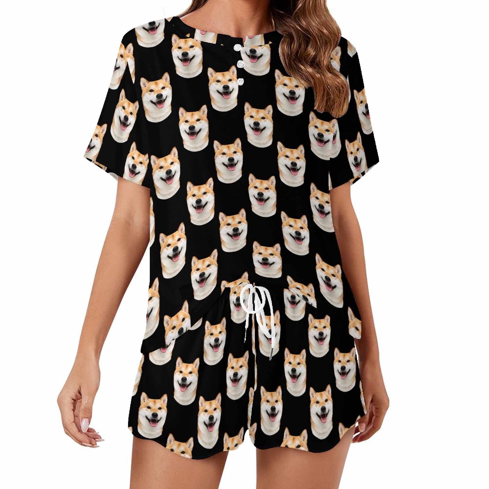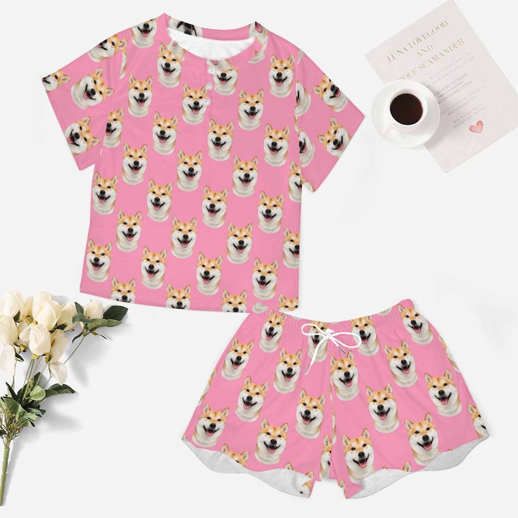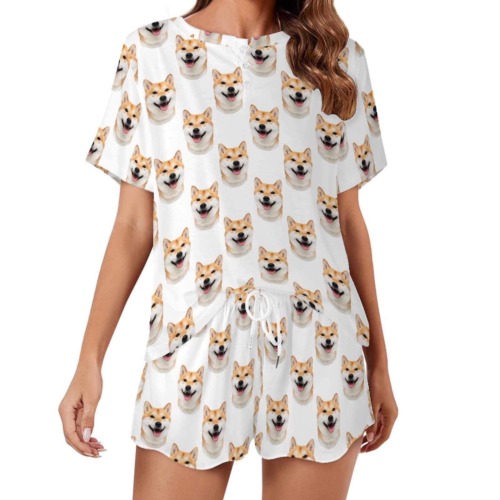 Custom Dog Faces Women Short Pajama Set Personalized Picture Short Nightwear for GF Wife Valentine Gift for Her