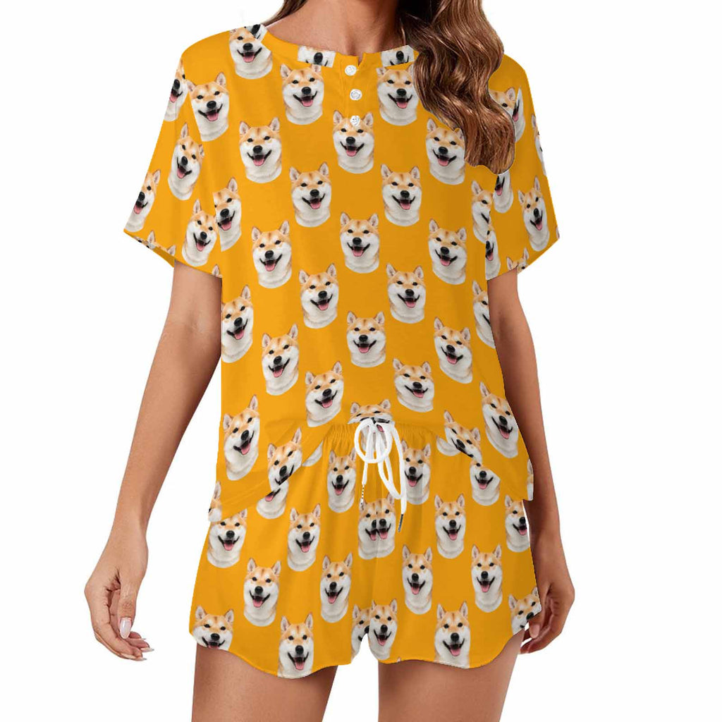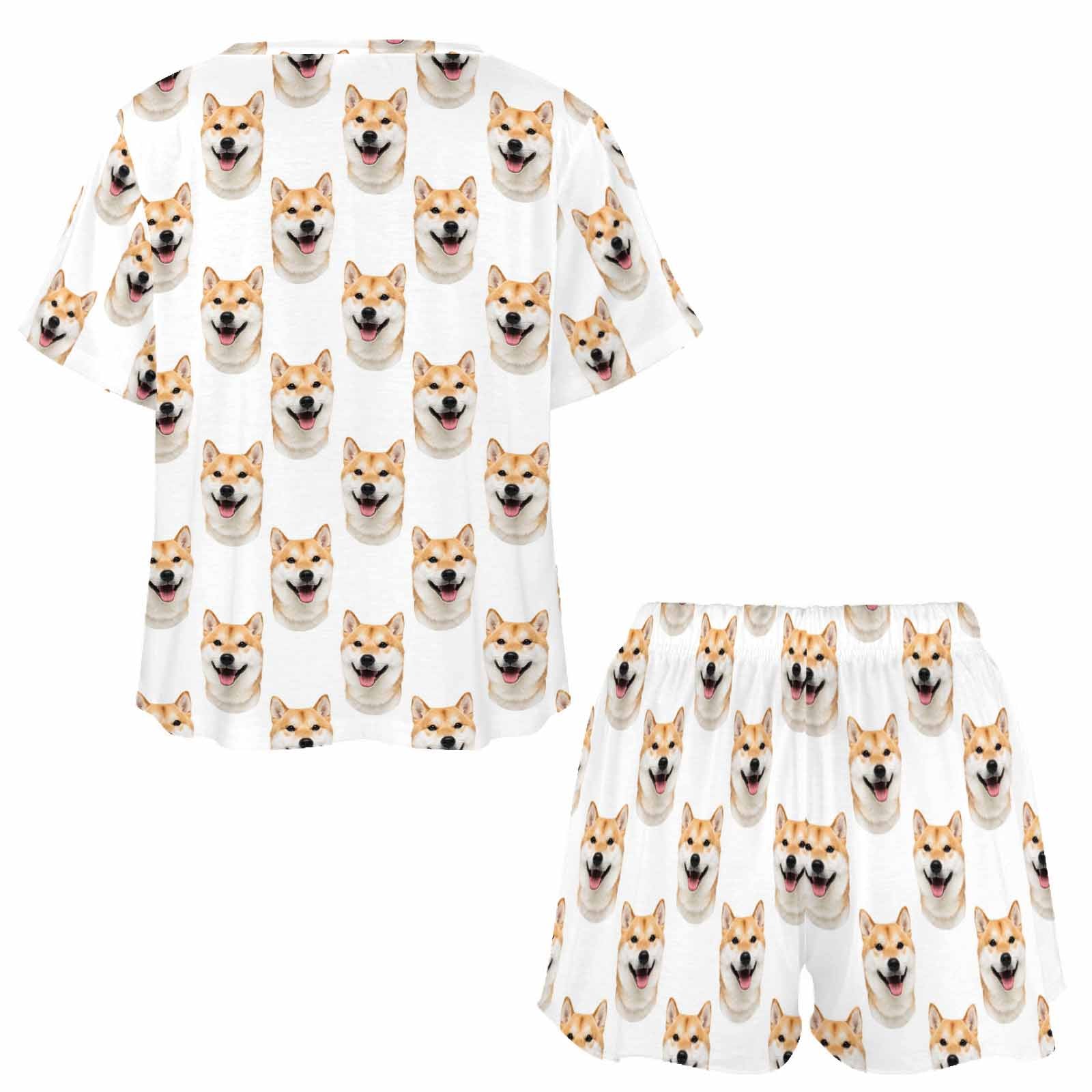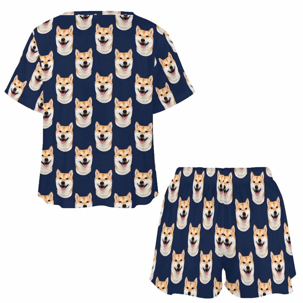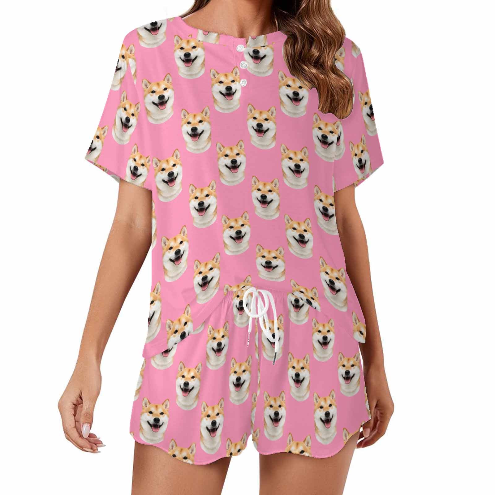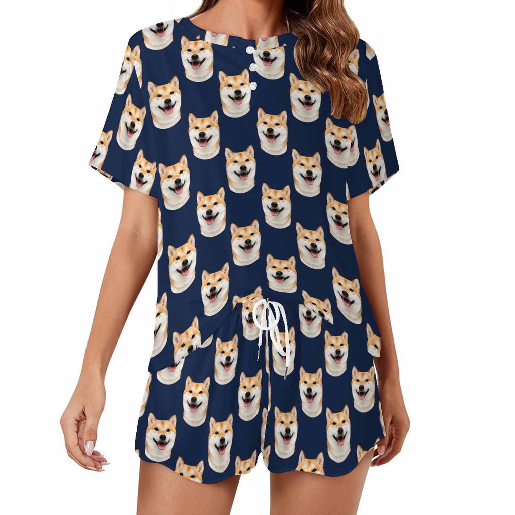 Custom Dog Faces Women Short Pajama Set Personalized Picture Short Nightwear for GF Wife Valentine Gift for Her