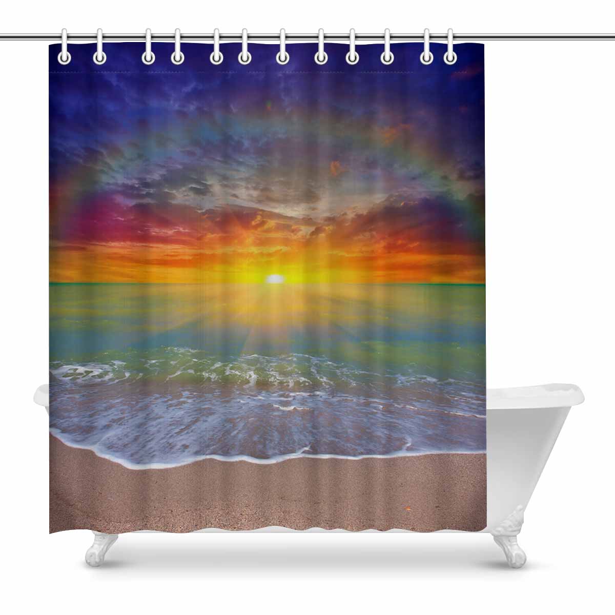 Beach and Ocean themed print on shower curtains for bathroom, create a brilliant atmosphere in your bathroom, include a selection of different stylish and custom-made designs for your bath decoration.