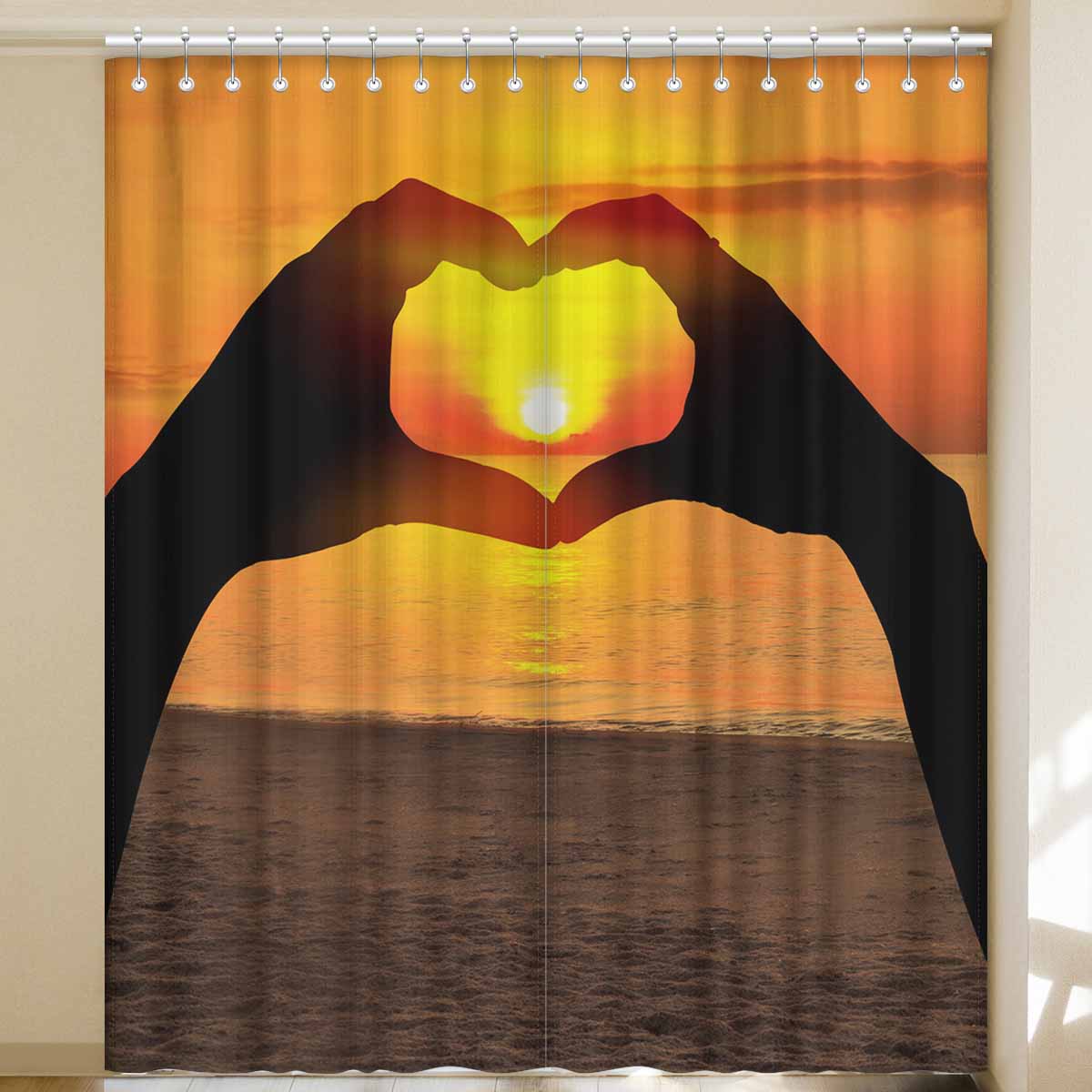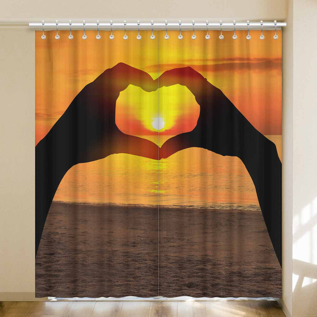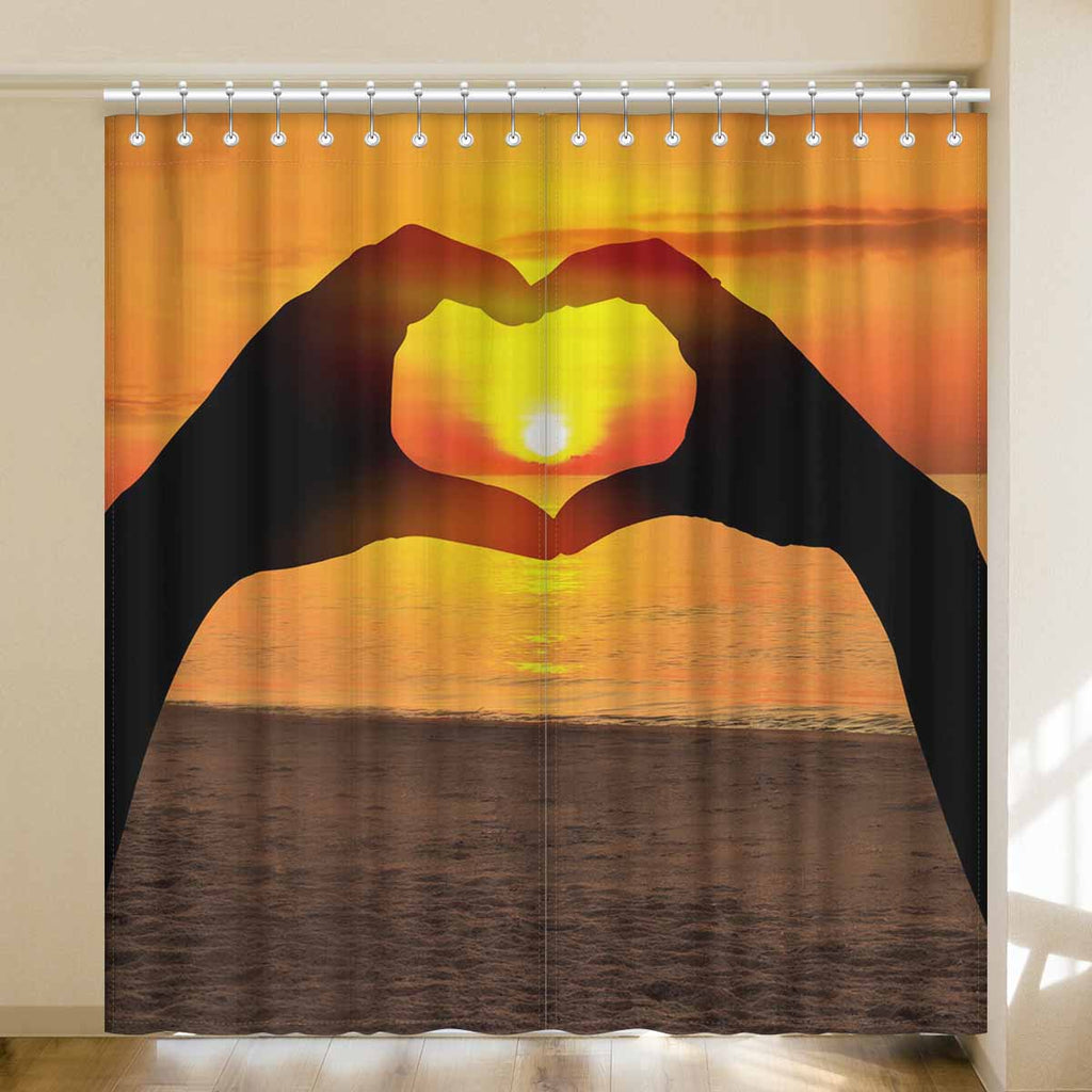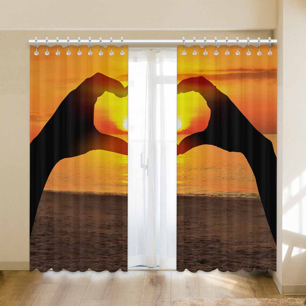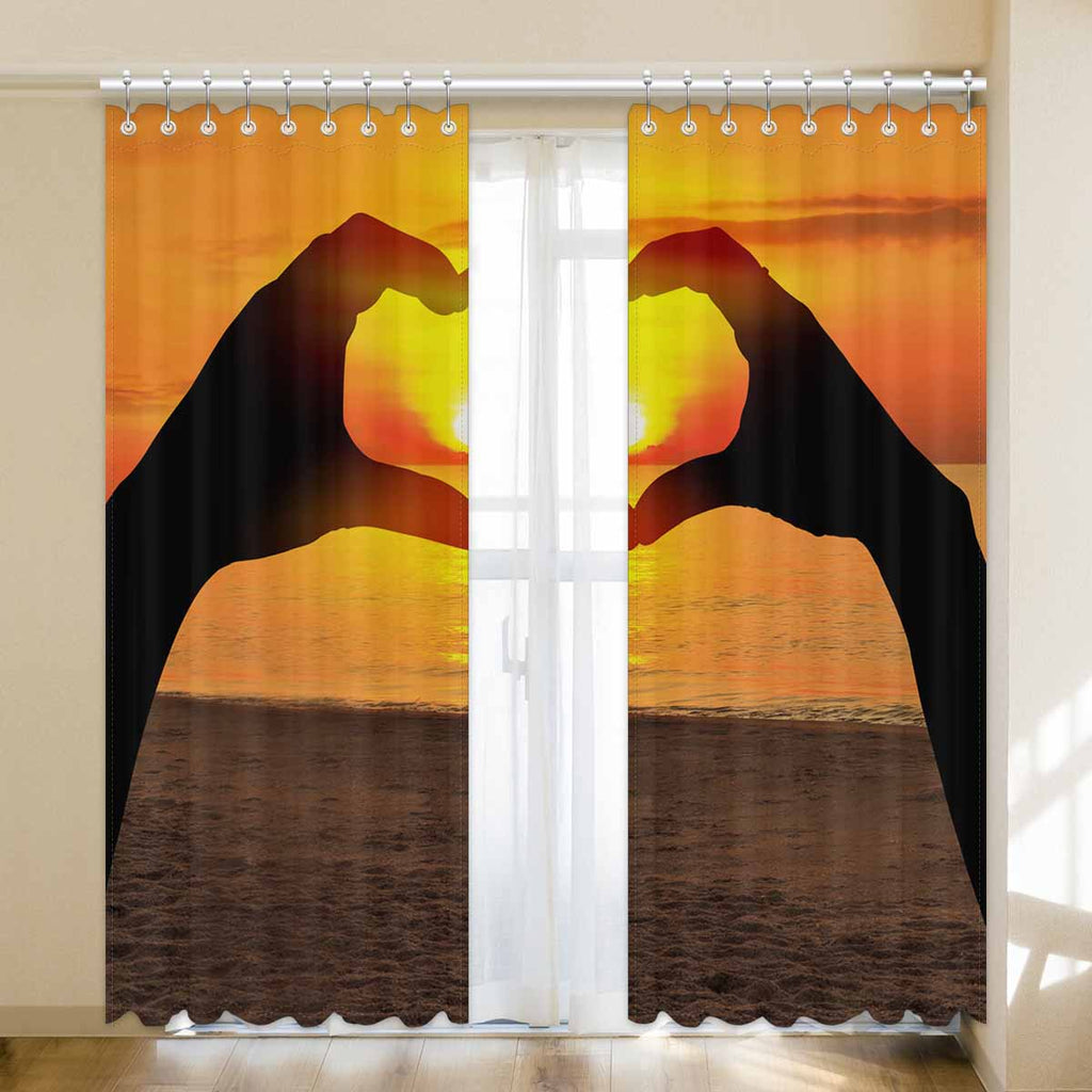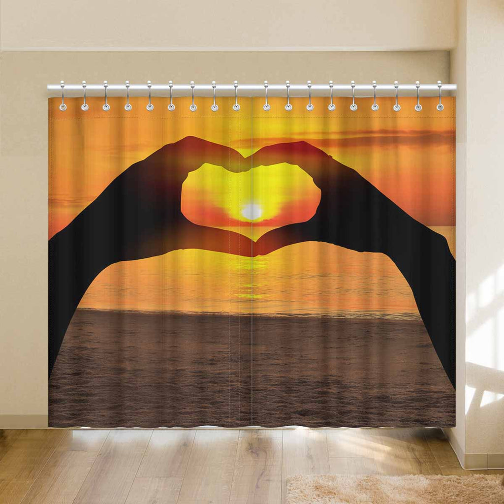 Window Curtains print sunset inTwo hands of lovers