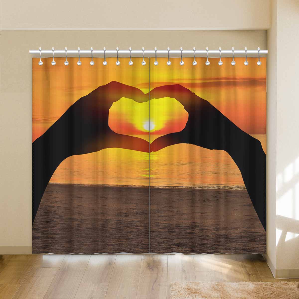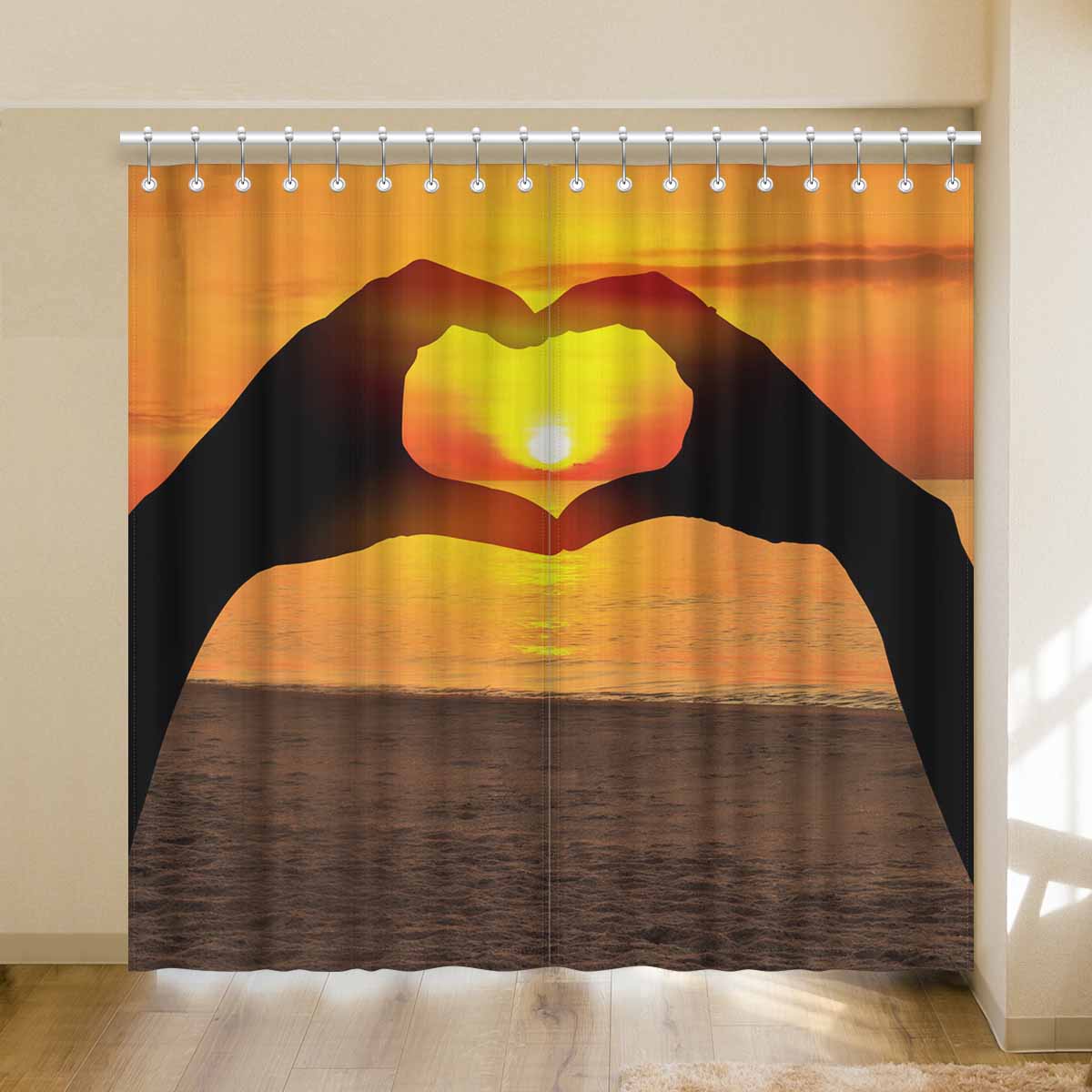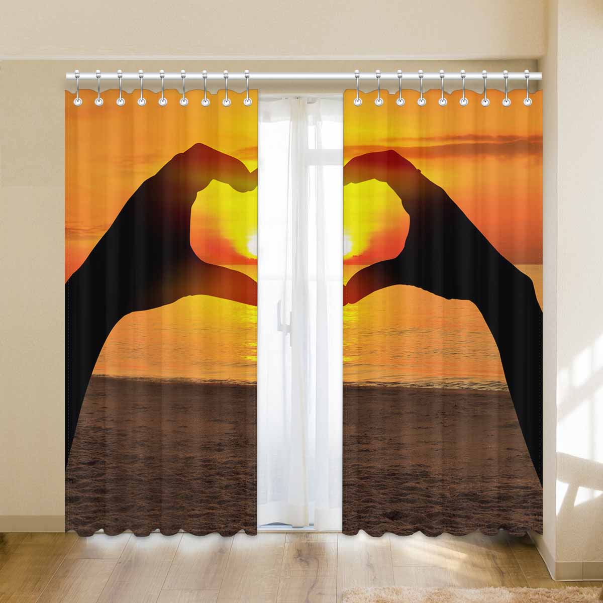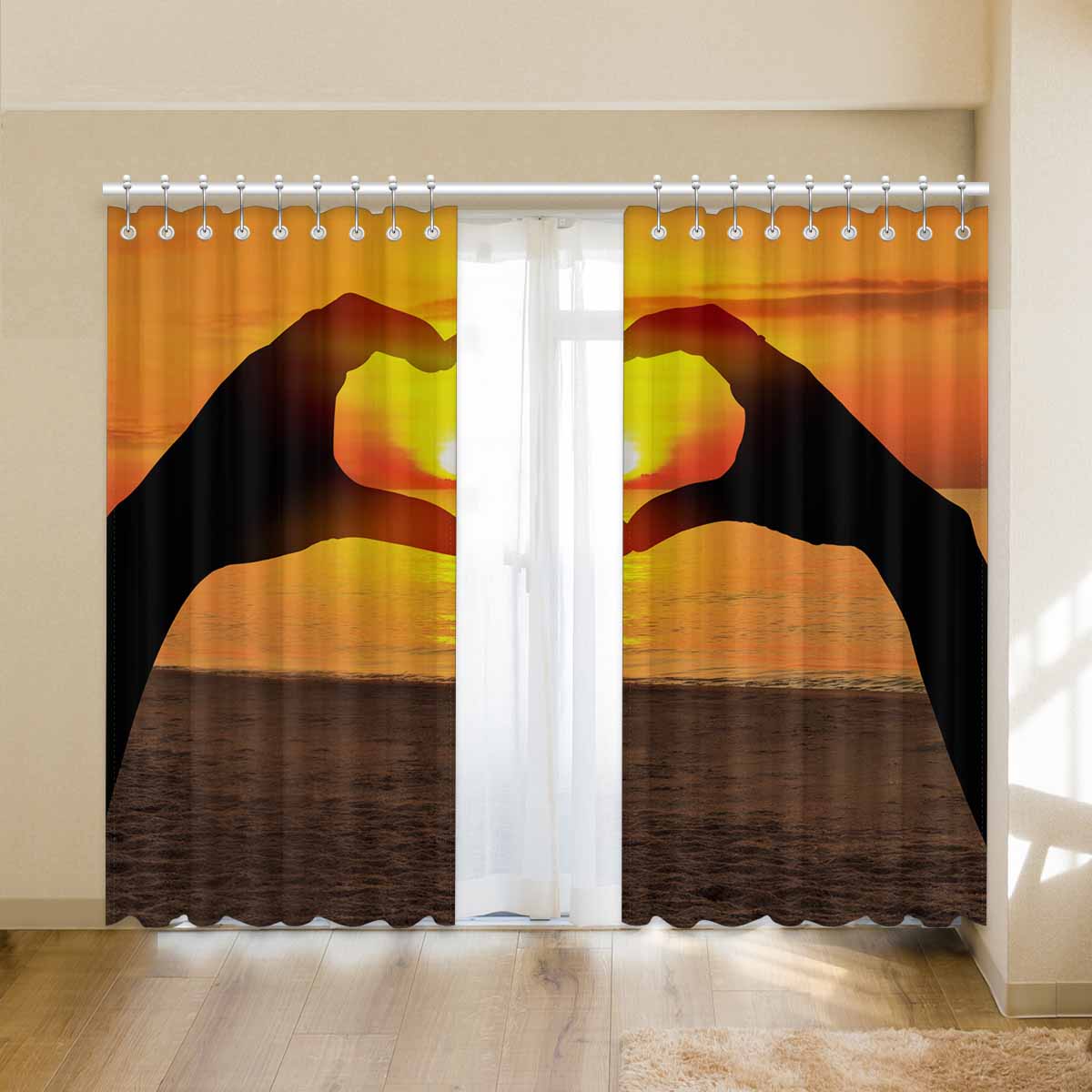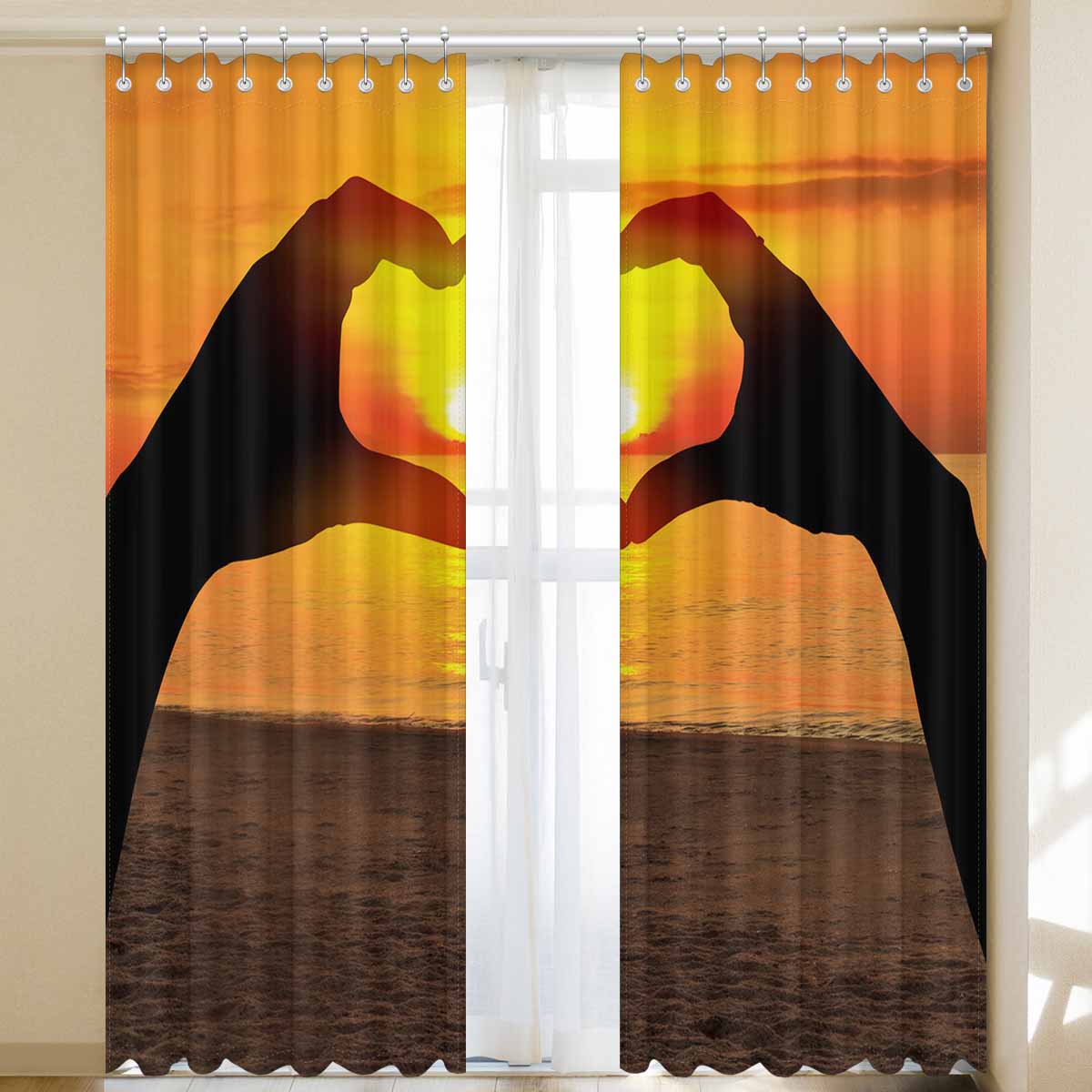 Window Curtains print sunset inTwo hands of lovers