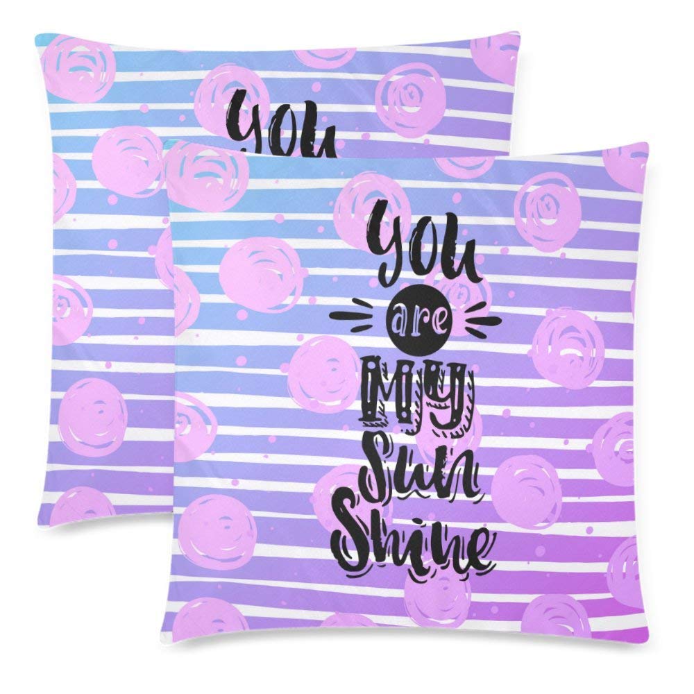 Custom 2 Pack Handwritten Motivation You Are My Sunshine Pillowcase 18x18 Twin Sides, Pink Purple Art with Sunshine Quote Cotton Zippered Throw Cushion Pillow Case Covers Set Decorative