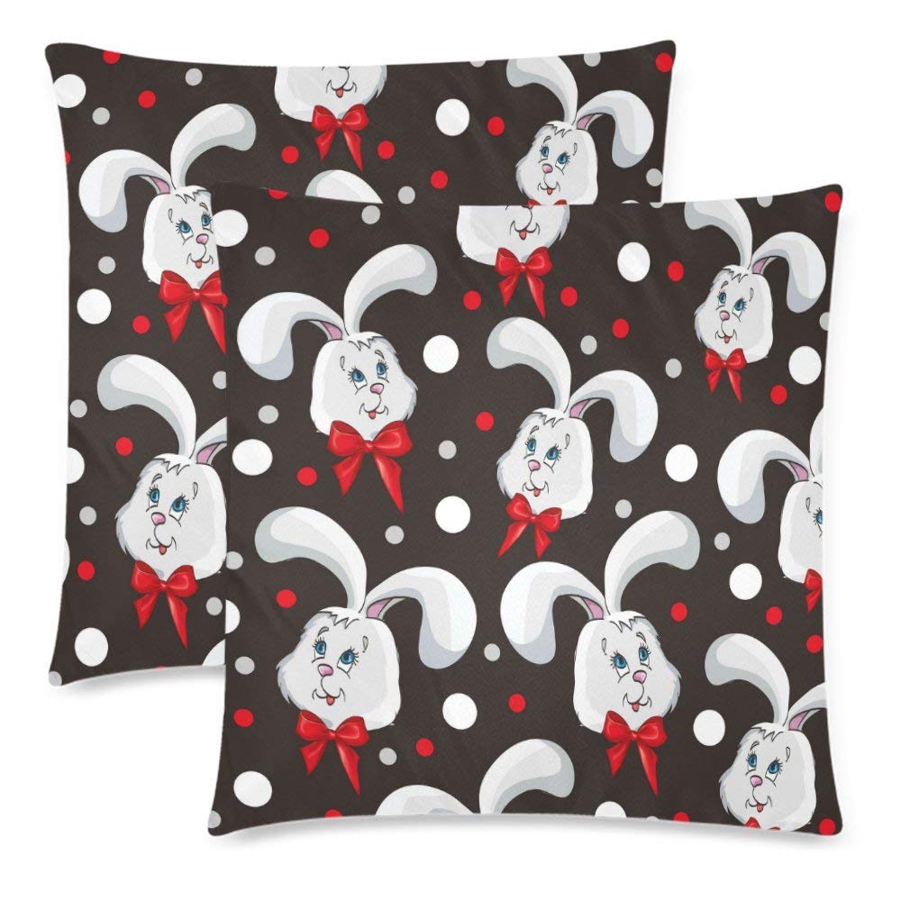 Custom Head of Rabbit and Bow 18x18 Pillow Cover Cushion Case, Polka Dot Cotton Zippered Throw Pillowcase Protector Decorative, Set of 2