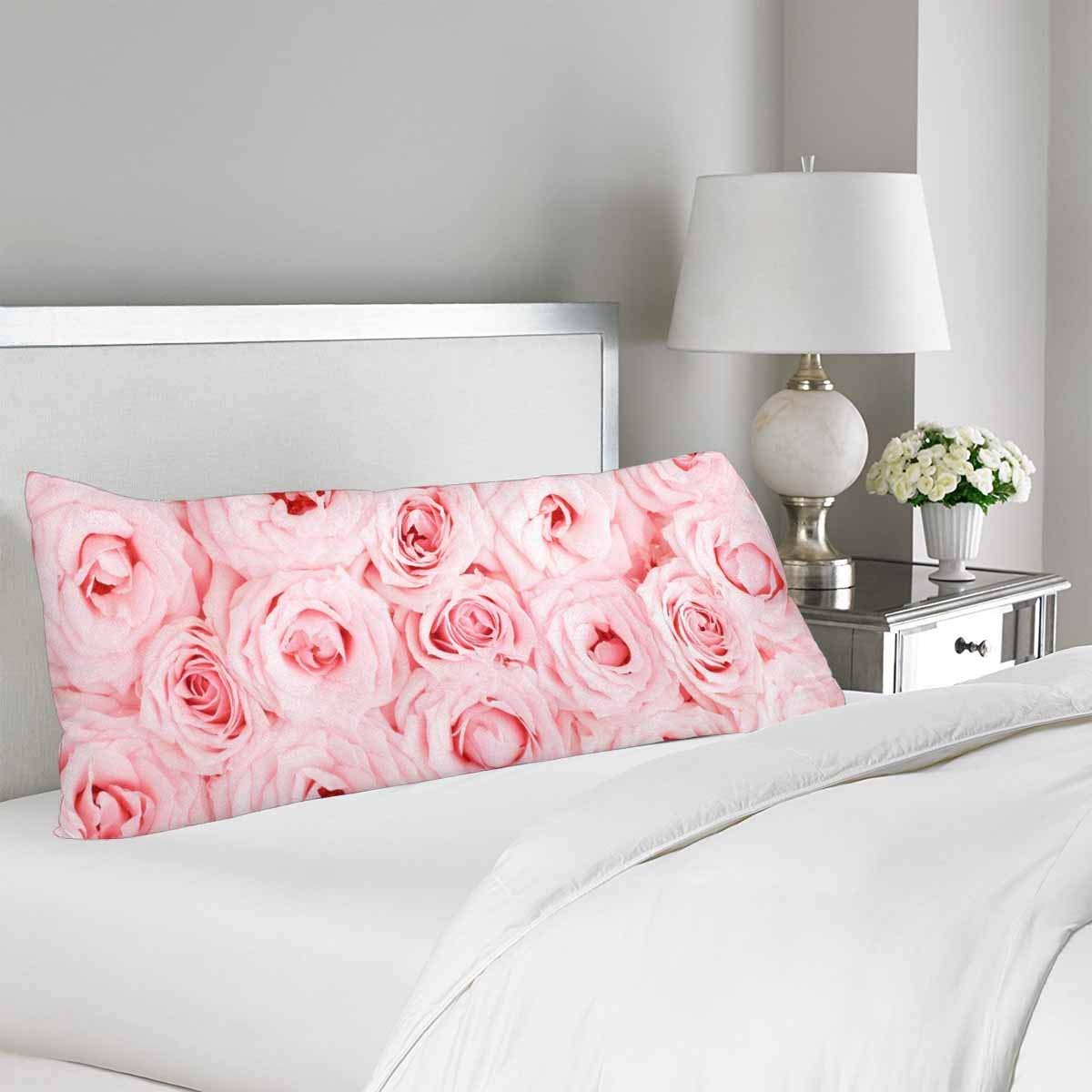 Pink Fresh Roses Body Pillow Covers Pillowcase with Zipper 21x60 Twin Sides, Love Flower Pattern Rectangle Body Pillow Case Protector for Home Couch Sofa Bedding Decorative