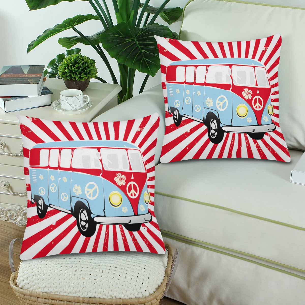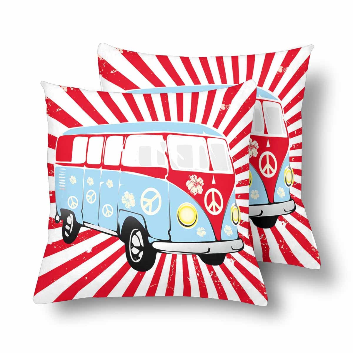 Retro themed Pillow Cases printed with Retro van in red and blue