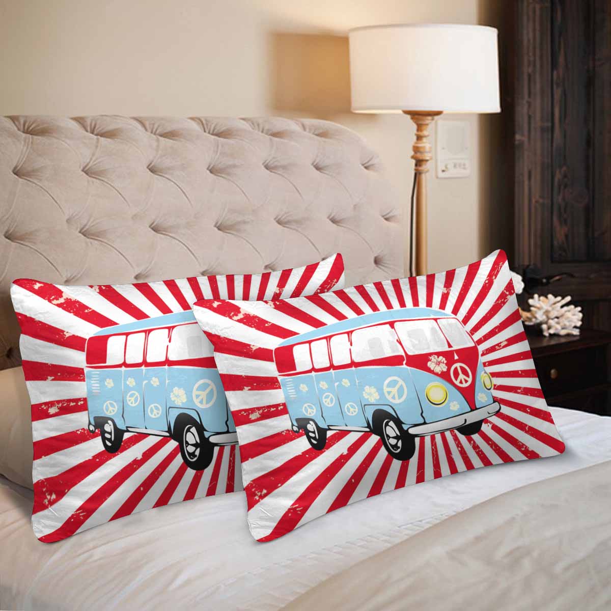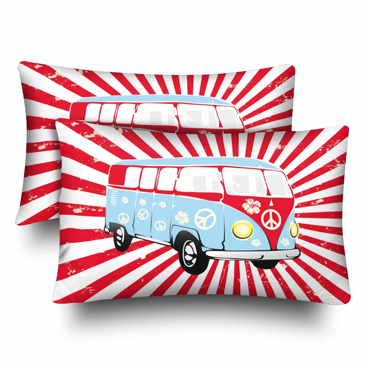 Retro themed Rectangle Pillow Cases printed Retro van in red and blue