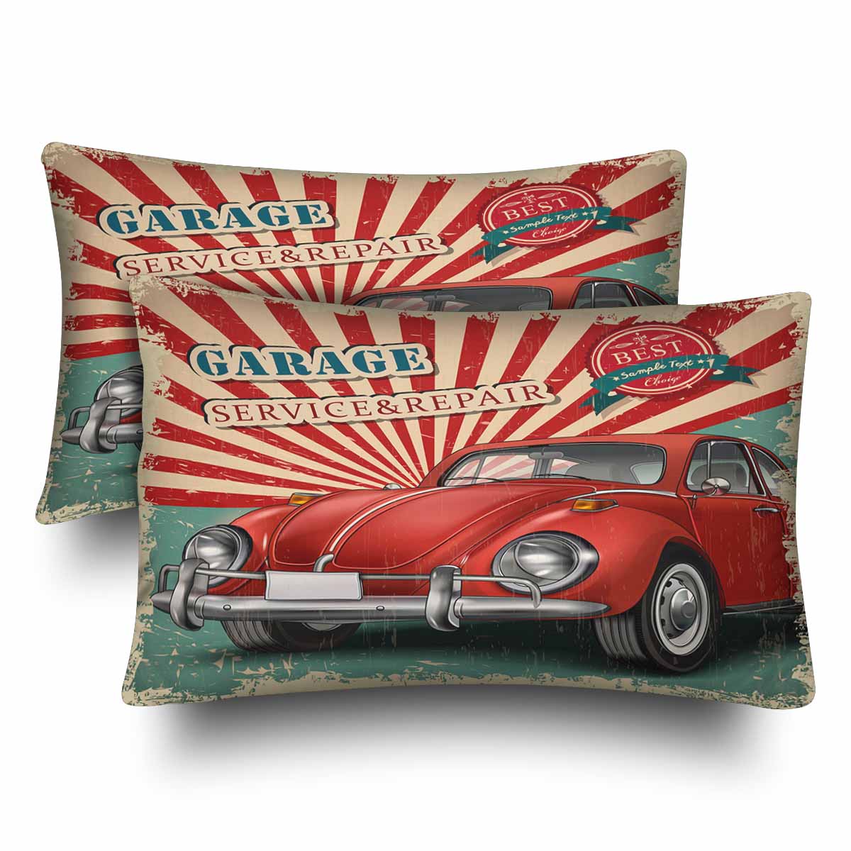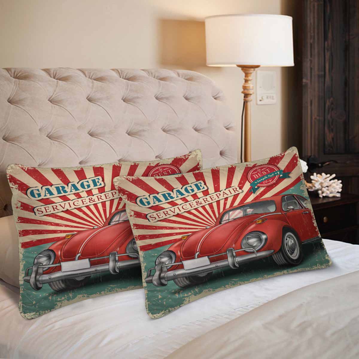 Retro themed Rectangle Pillow Cases printed Veteran classic small red car