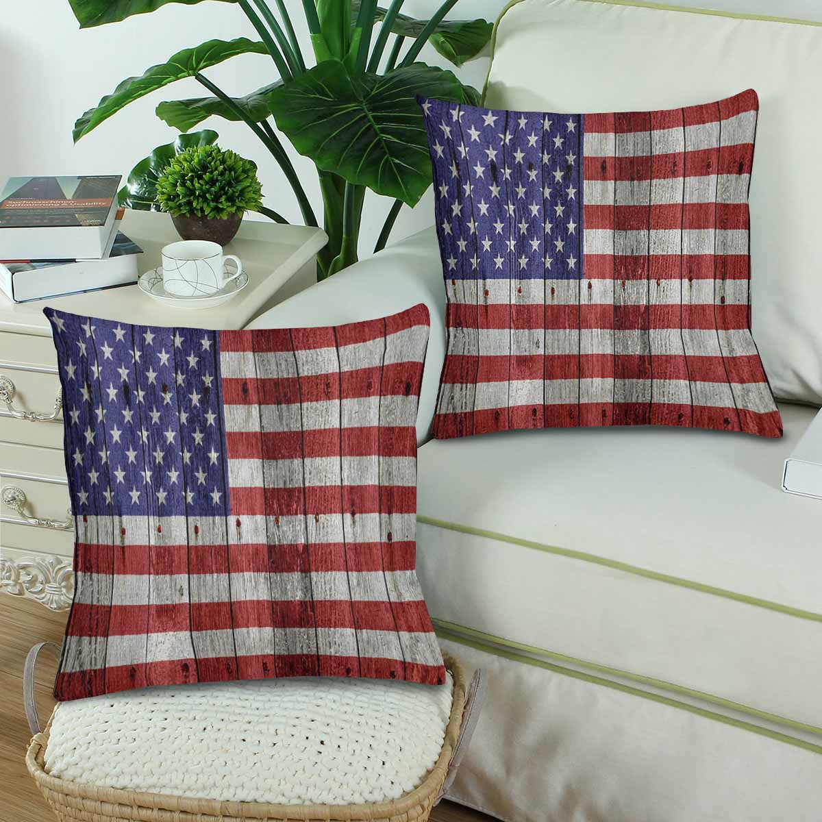 Rustic themed Pillow Cases printed with USA flag on wood backgroud