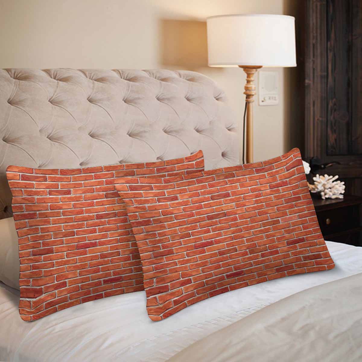 Rustic themed Rectangle Pillow Cases printed Red brick wall