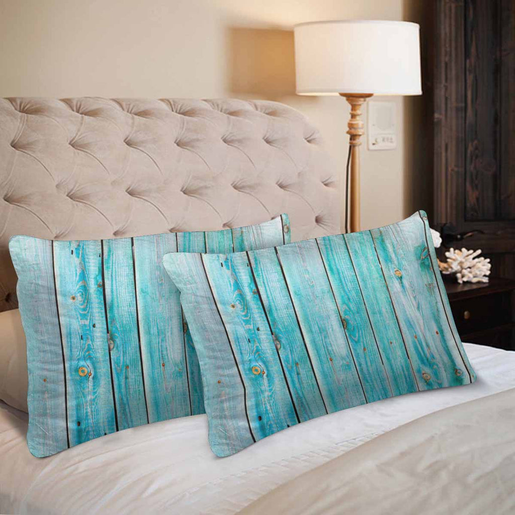 Rustic themed Rectangle Pillow Cases printed The blue colored wood