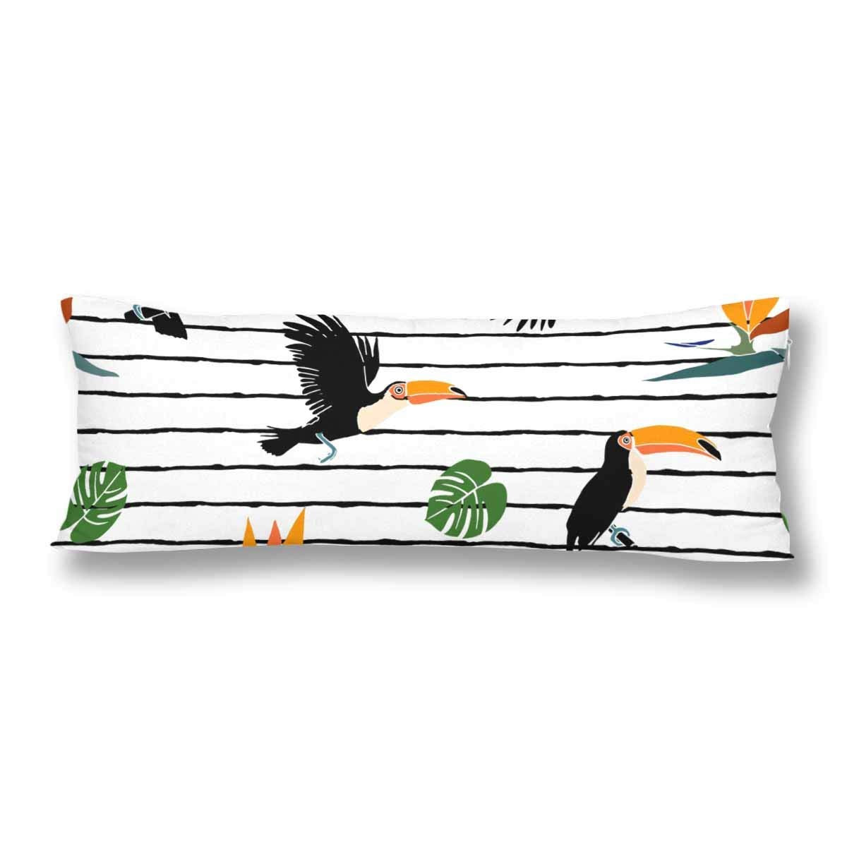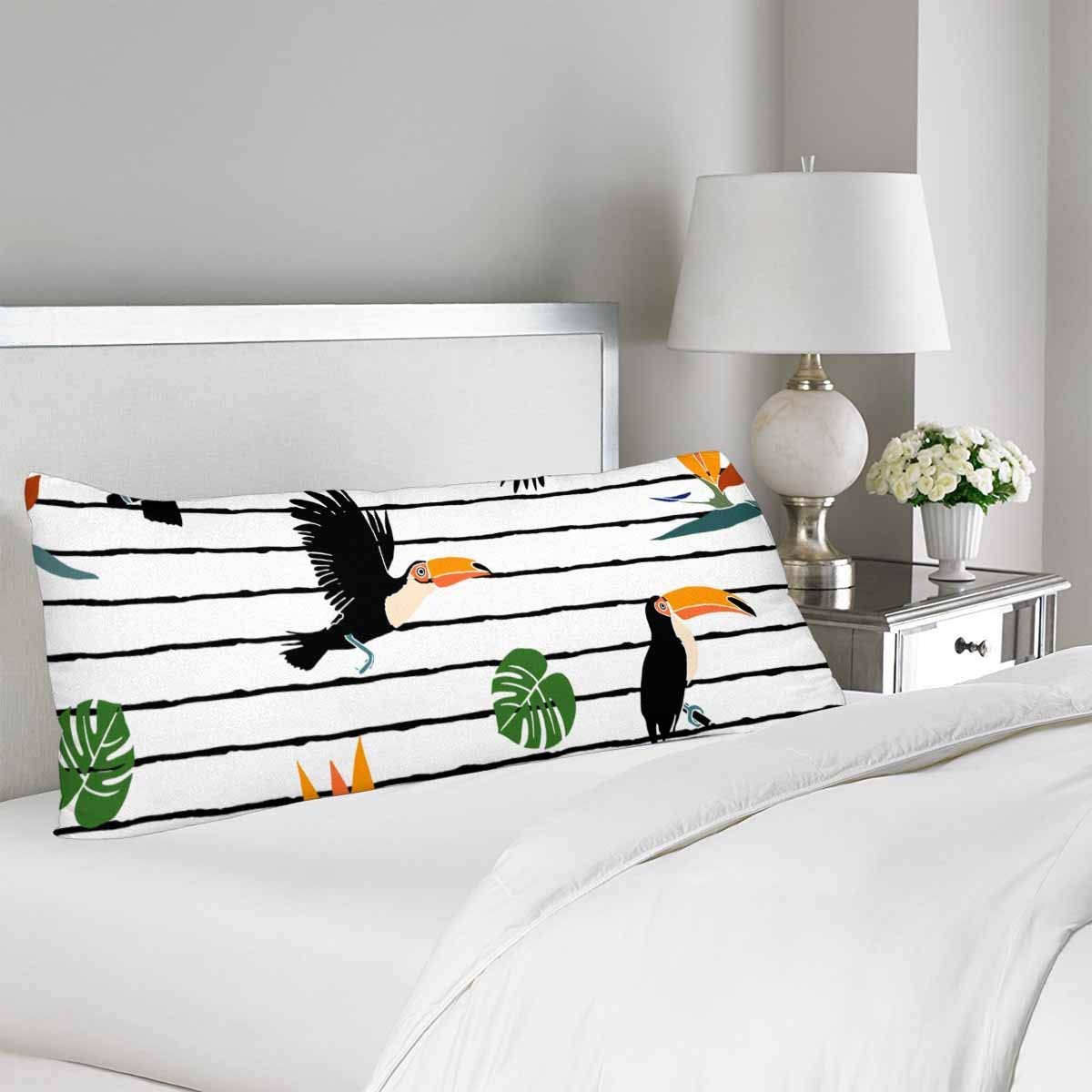 Summer Print Toucans Striped Body Pillow Covers Pillowcase with Zipper 21x60 Twin Sides, Black and White Rectangle Body Pillow Case Protector for Home Couch Sofa Bedding Decorative