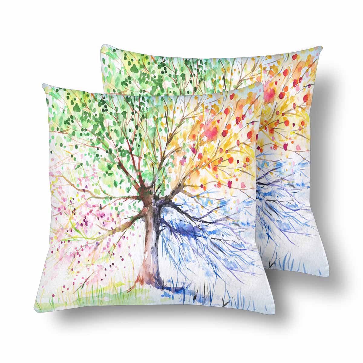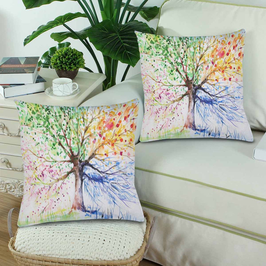 Tree and Mountains themed Pillow Case printed with hand painted illustration of four seasons trees