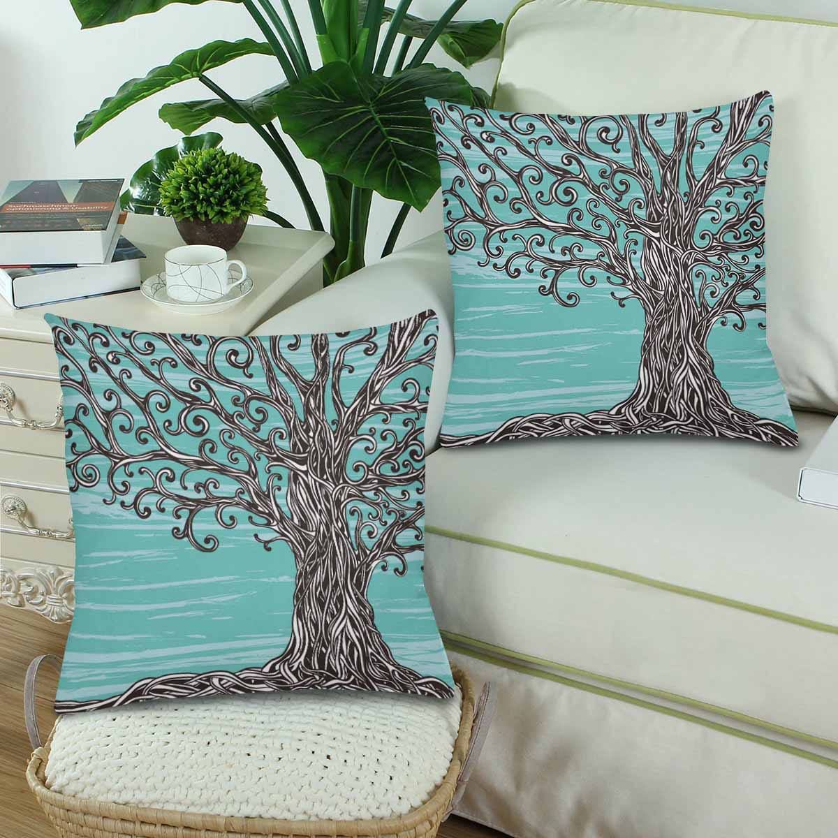 Pillow Case printed with Old graphic tree with twisted roots on a blue background