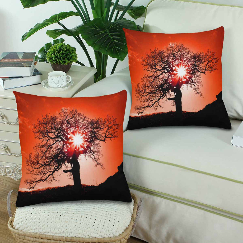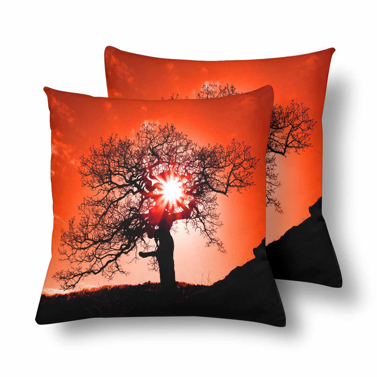 Tree and Mountains themed Pillow Case printed with Old oak in sunset with sun