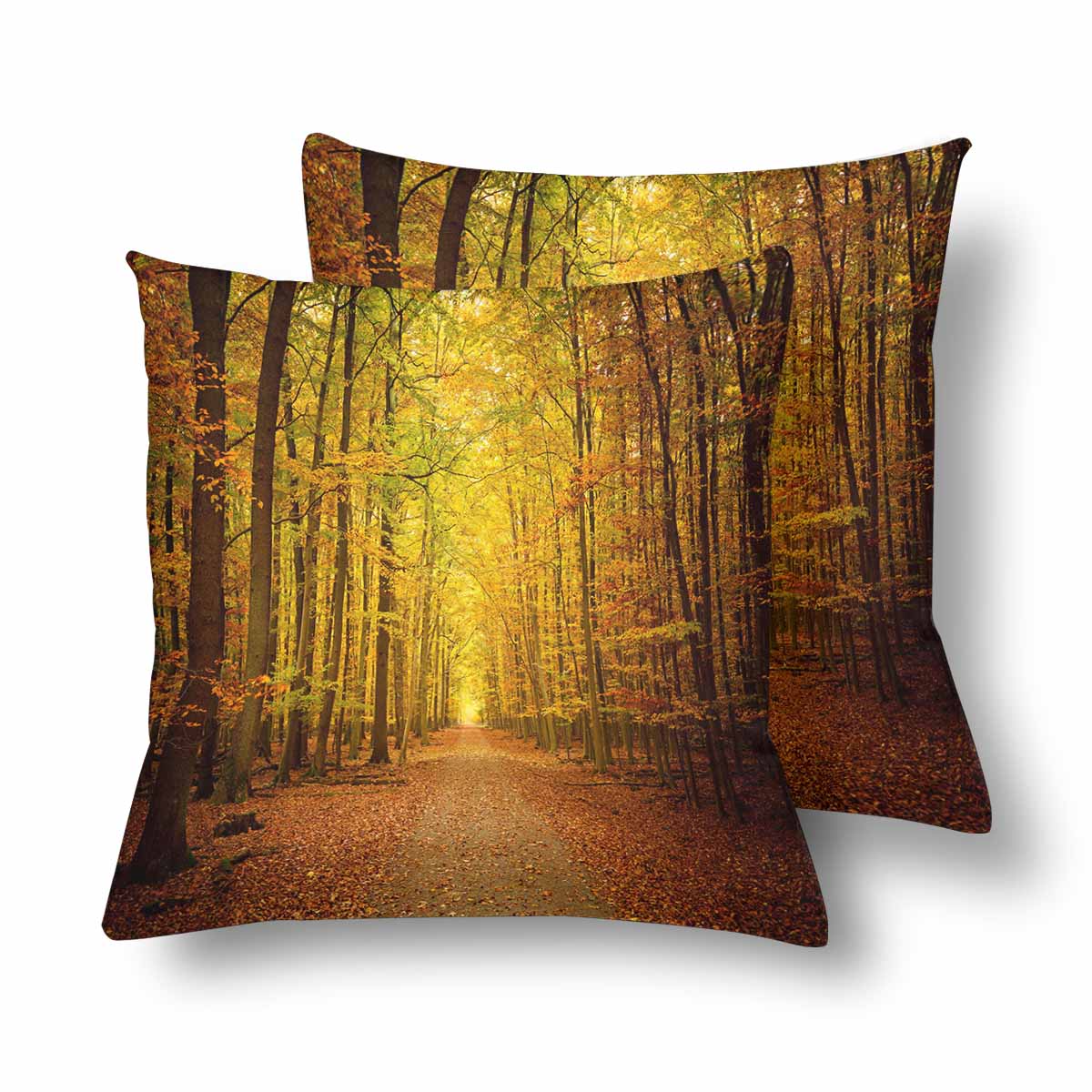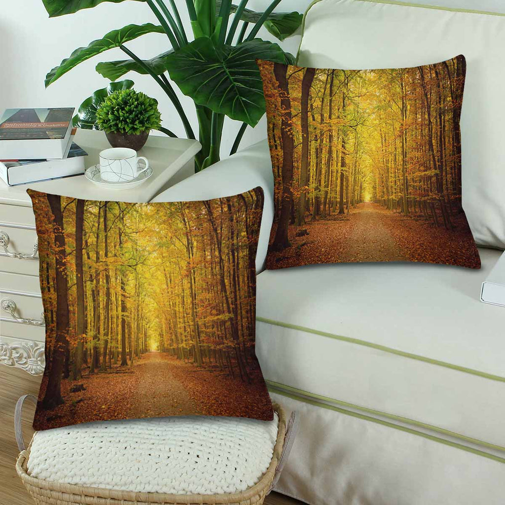 Tree and Mountains themed Pillow Case printed with Pathway in the autumn forest