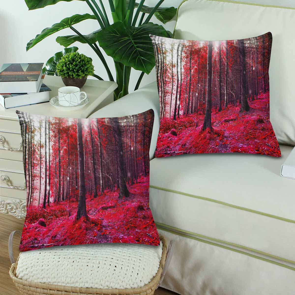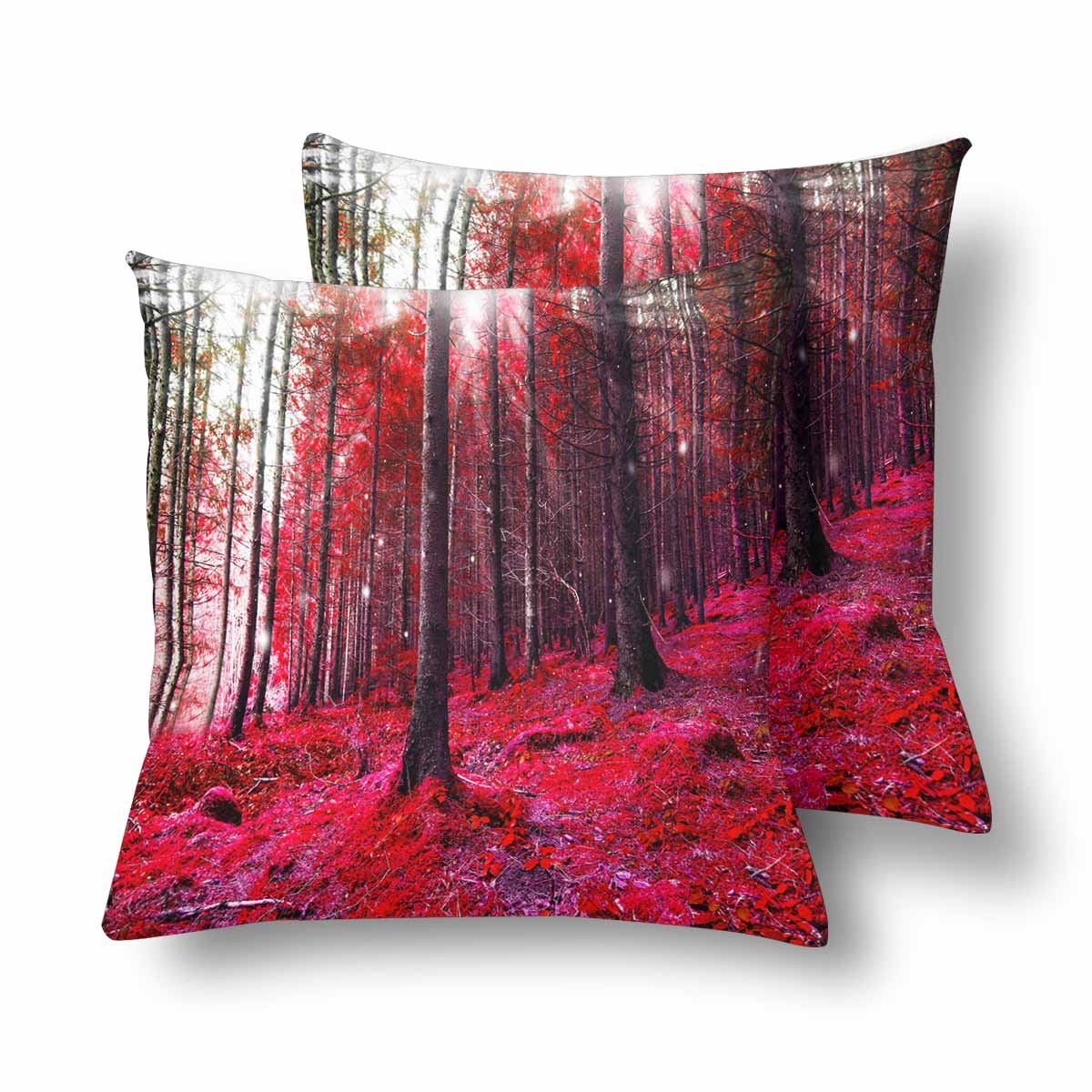Pillow Case printed with Red fantasy forest with magic lights and sunbeams