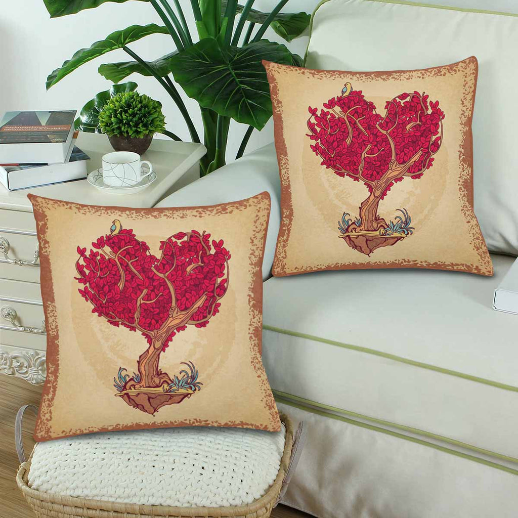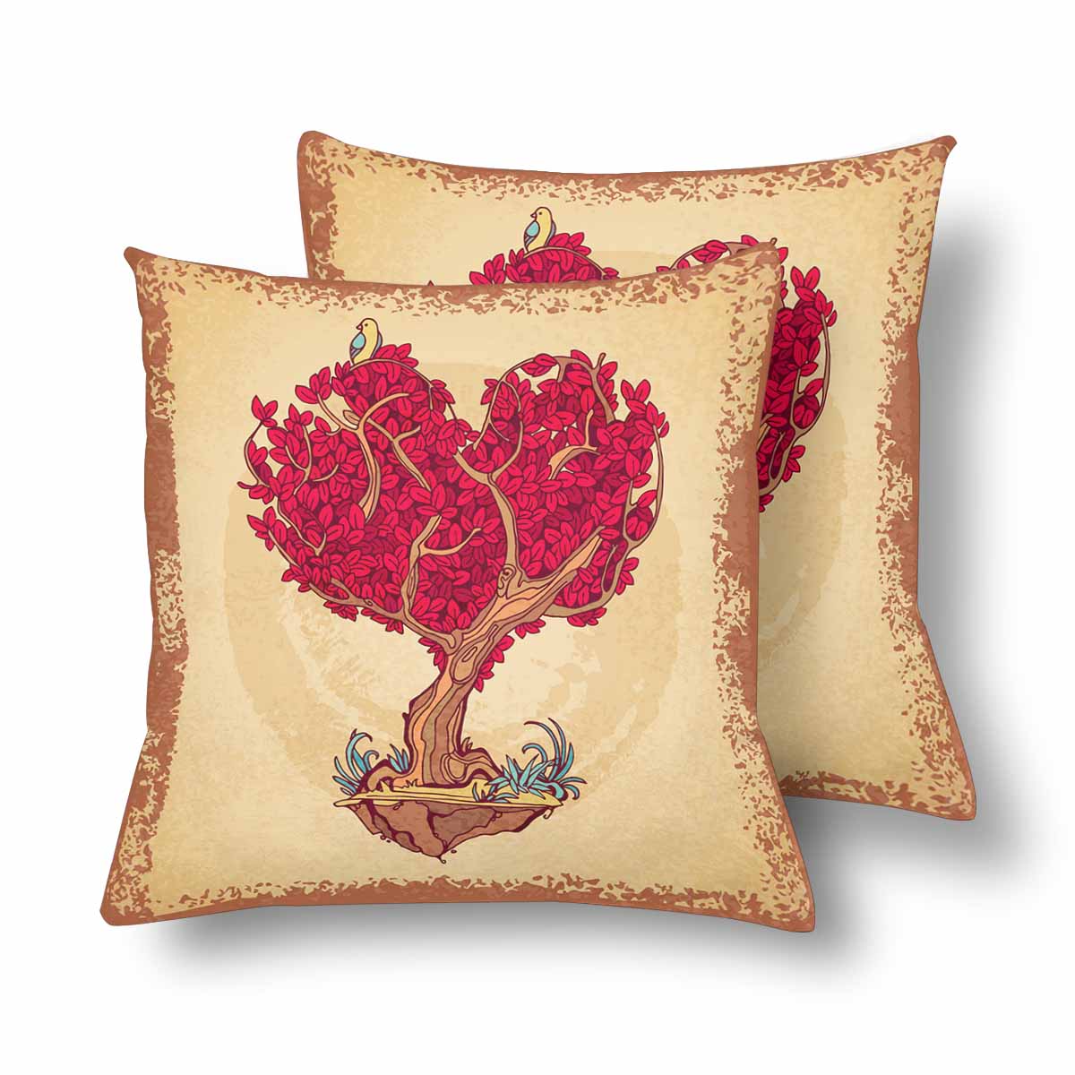 Pillow Case printed with Stylized tree retro tattoo crown in the shape of heart