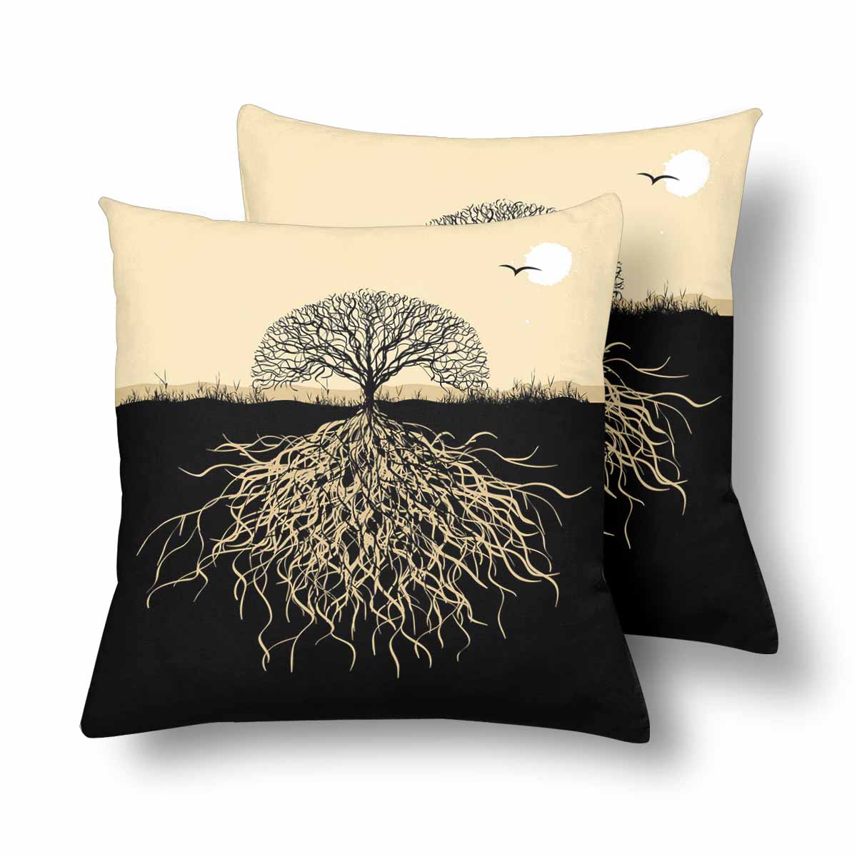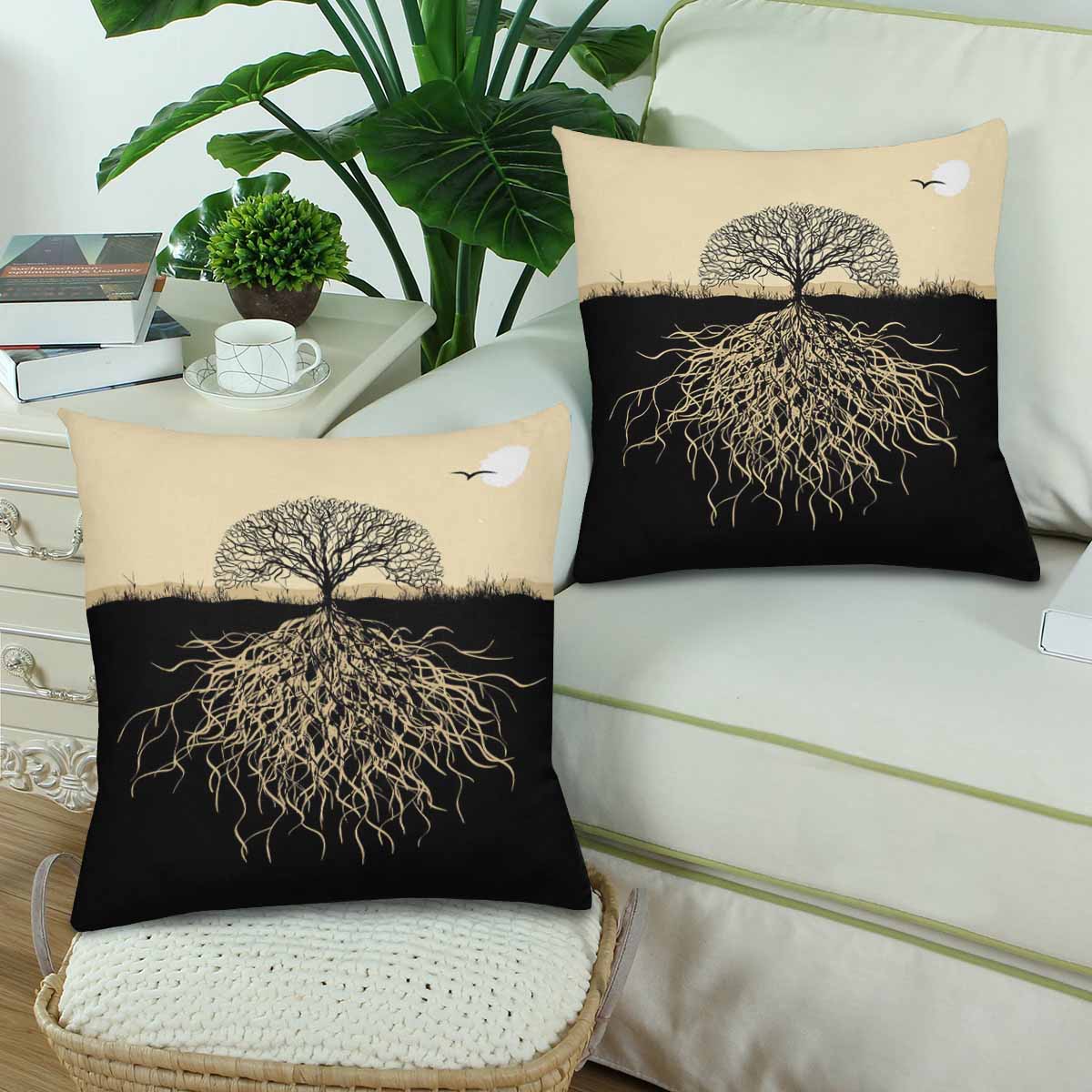 Tree and Mountains themed Pillow Case printed with Tree silhouette with roots
