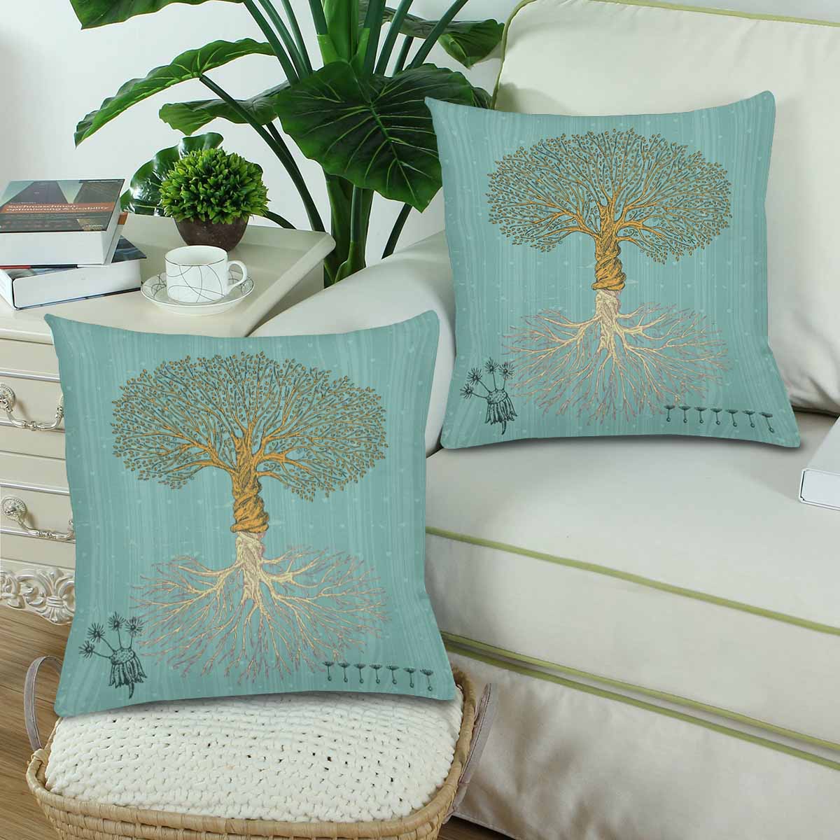 Tree and Mountains themed Pillow Case printed with Tree with roots on rough background