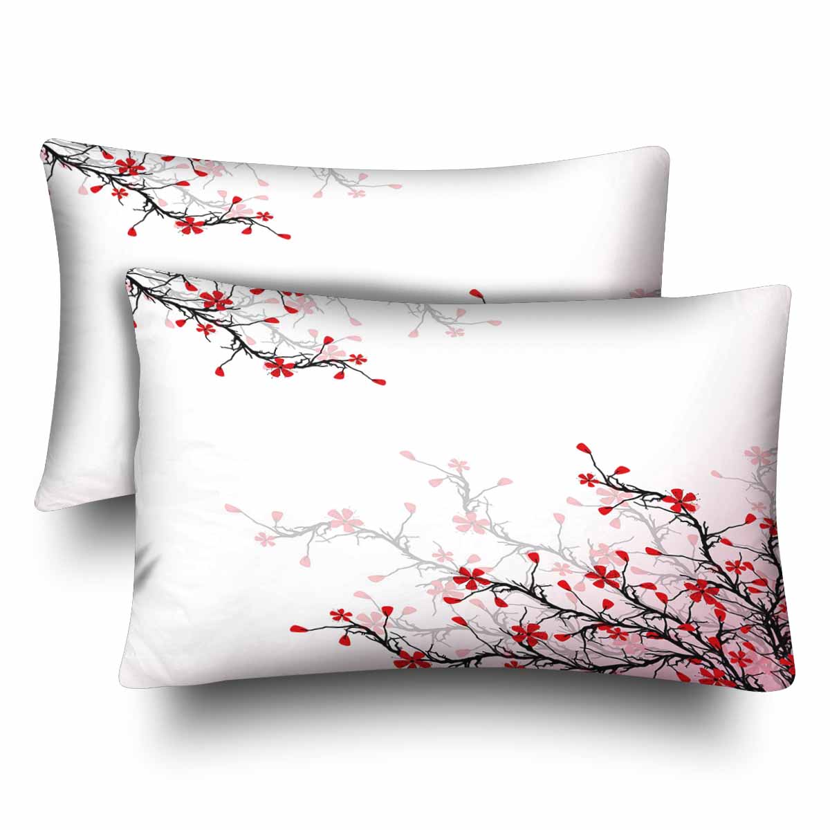 Tree and Mountains themed Rectangle Pillow Cases printed Beautiful blossom cherry