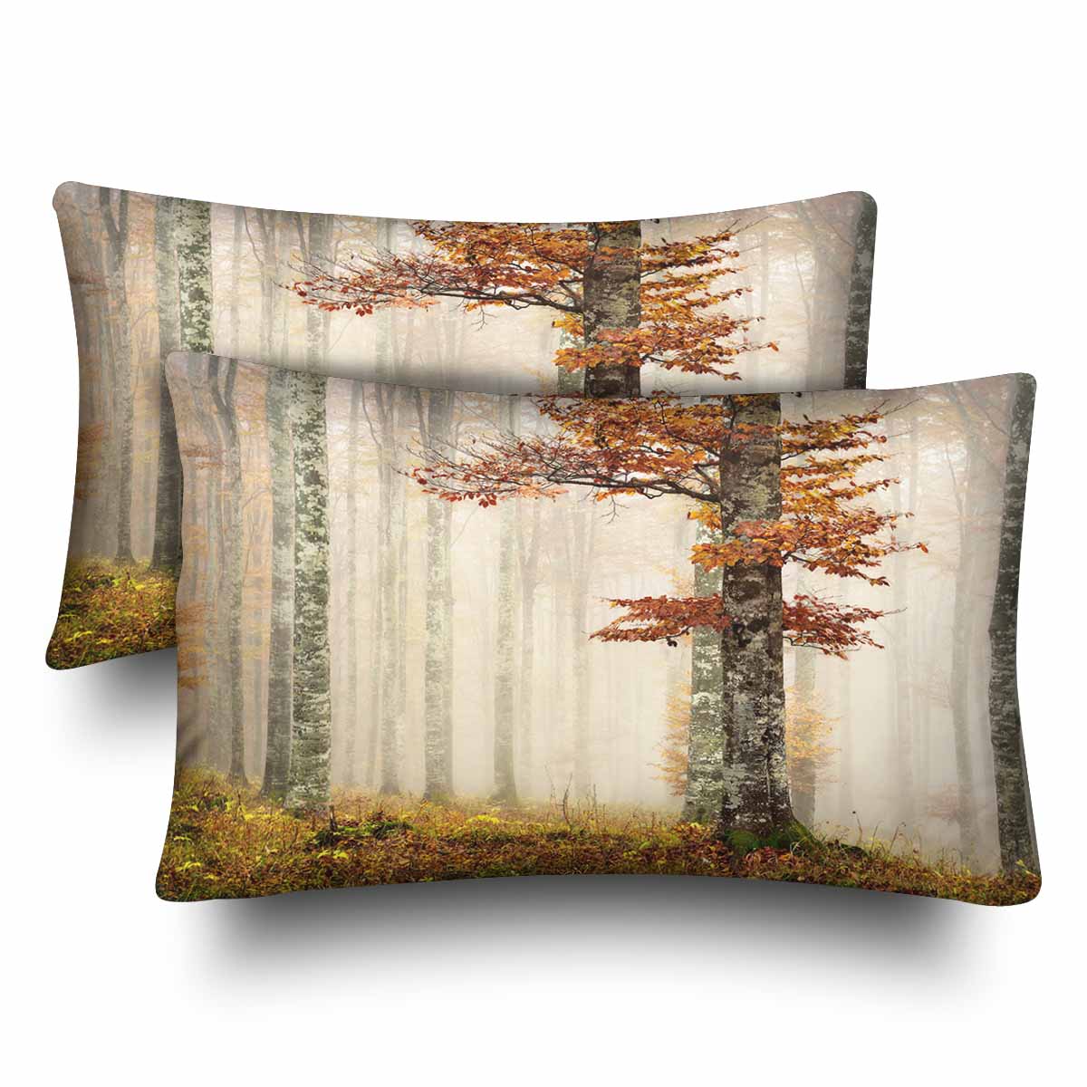 Tree and Mountains themed Rectangle Pillow Cases printed Birch trees in the fog