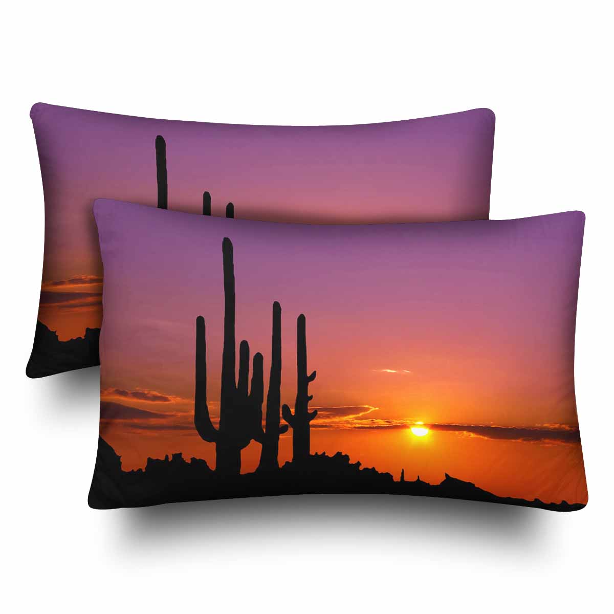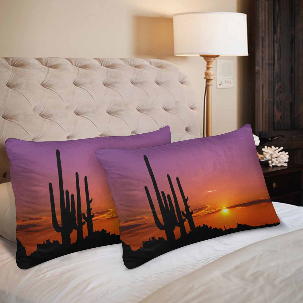 Tree and Mountains themed Rectangle Pillow Cases printed Cactus Sunset in mexican canyon