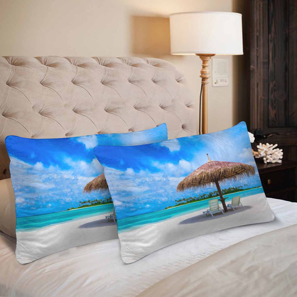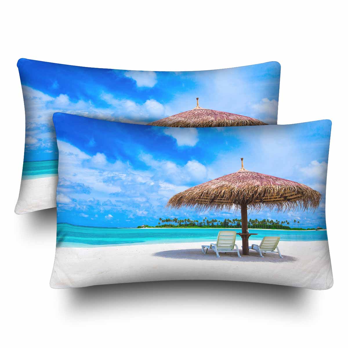 Tropical themed Rectangle Pillow Cases printed Beautiful beach at Maldives tropical landscape
