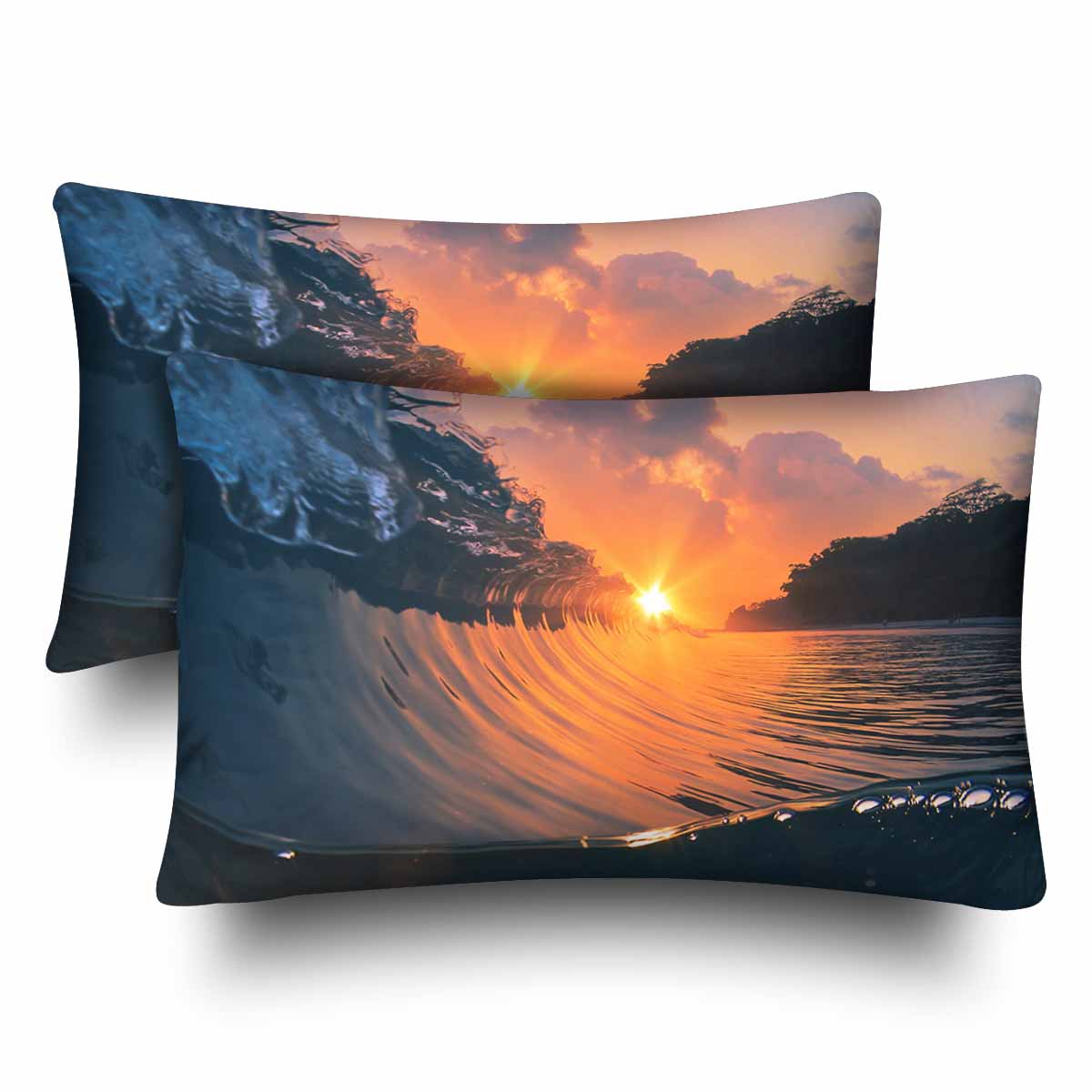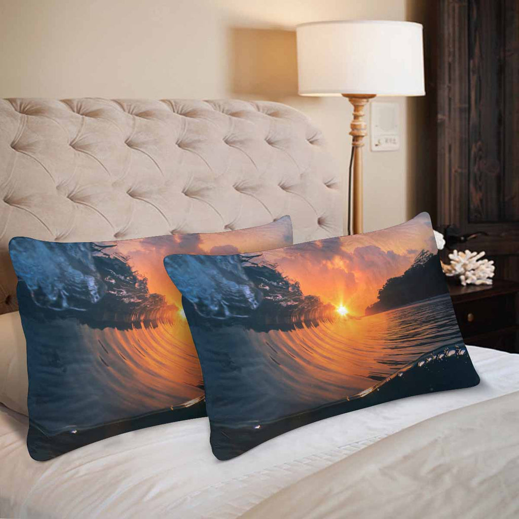 Tropical themed Rectangle Pillow Cases printed Beautiful ocean surfing wave at sunset beach
