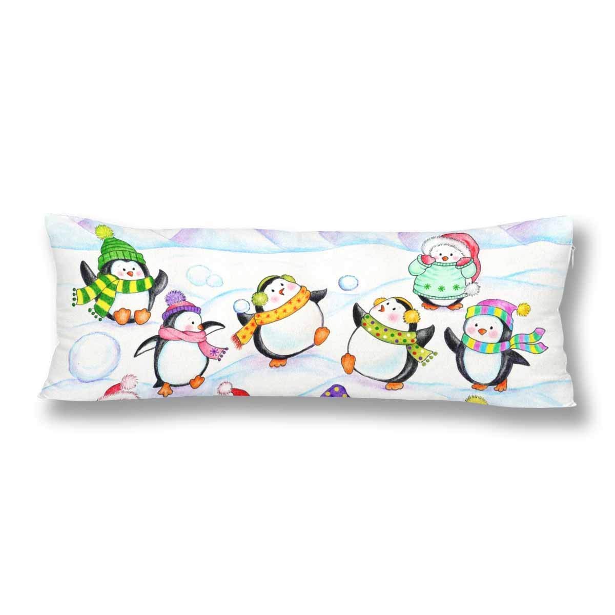 Winter Snow Penguin Body Pillow Covers Pillowcase with Zipper 21x60 Twin Sides, Santa Christmas Rectangle Body Pillow Case Protector for Home Couch Sofa Bedding Decorative