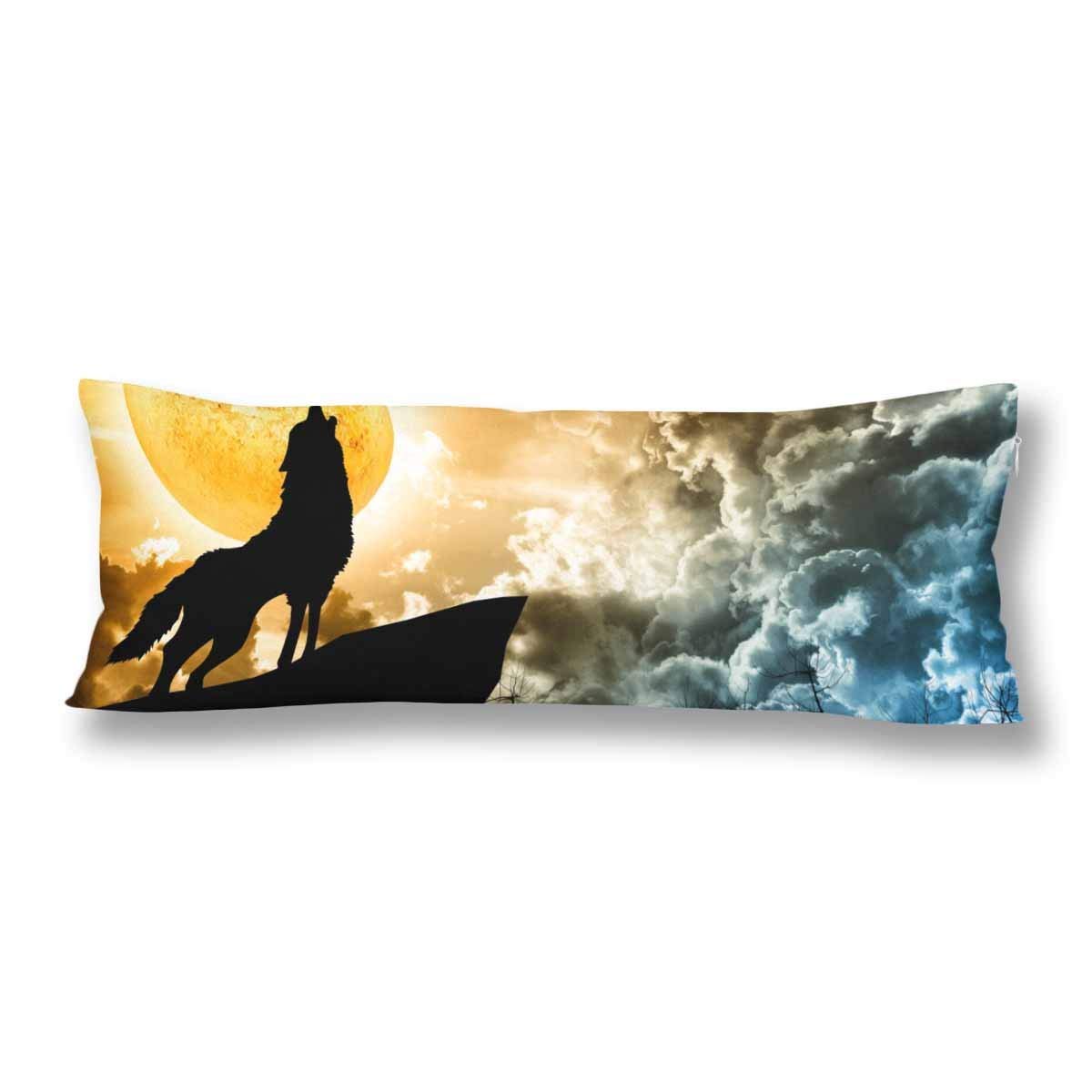 Wolf in Silhouette Howling Full Moon Body Pillow Covers Pillowcase with Zipper 21x60 Twin Sides, Wild Animal Rectangle Body Pillow Case Protector for Home Couch Sofa Bedding Decorative